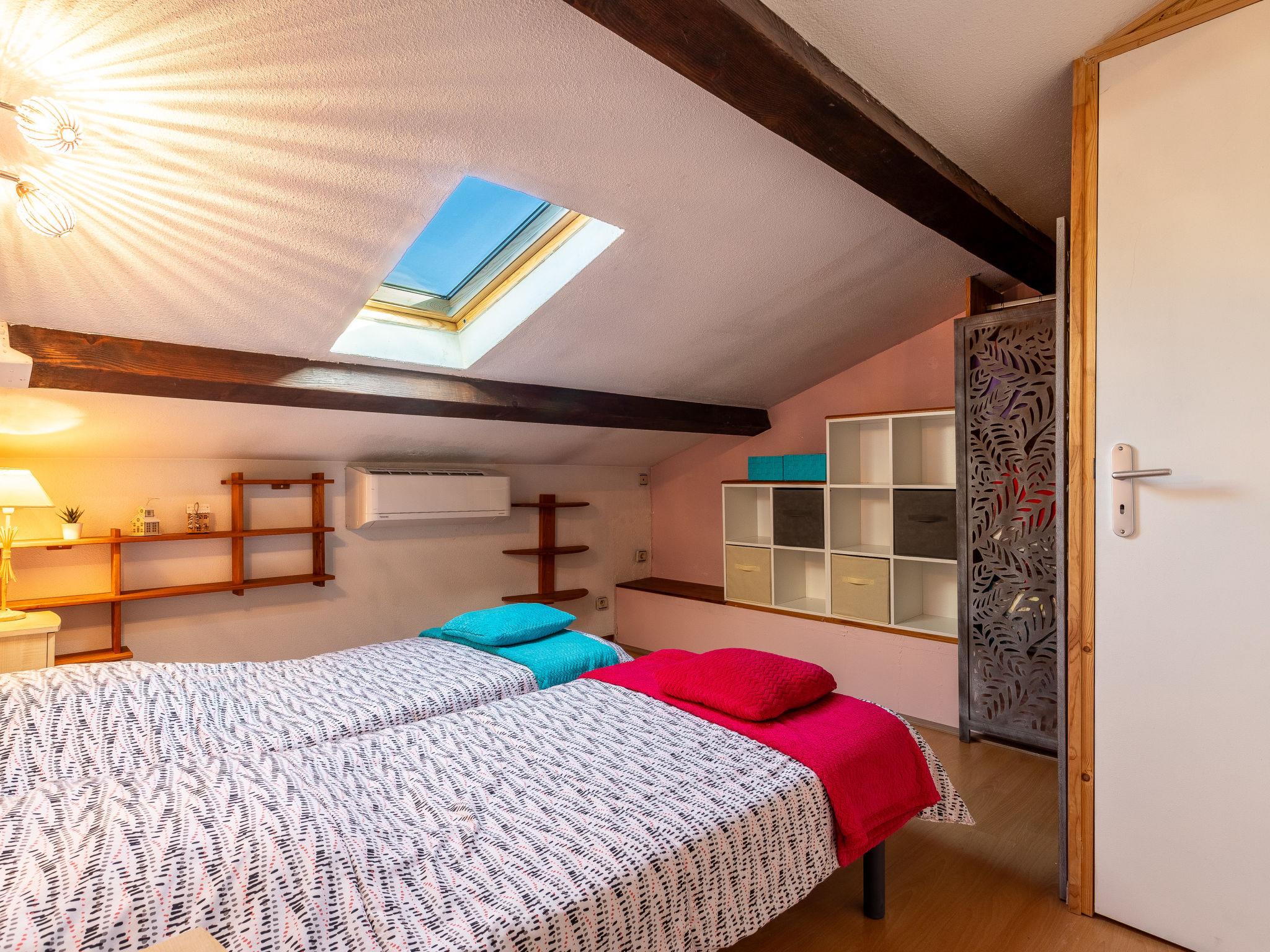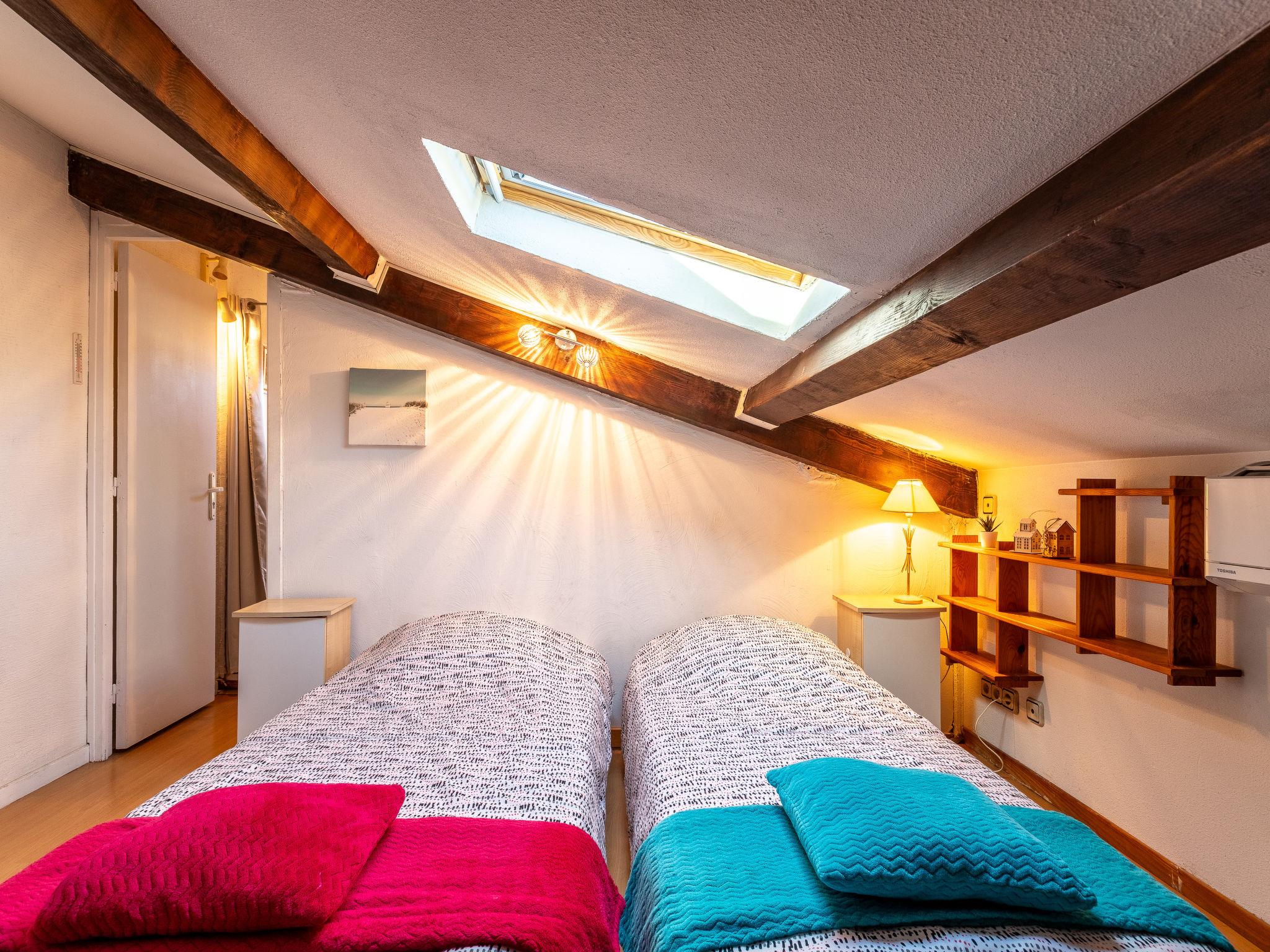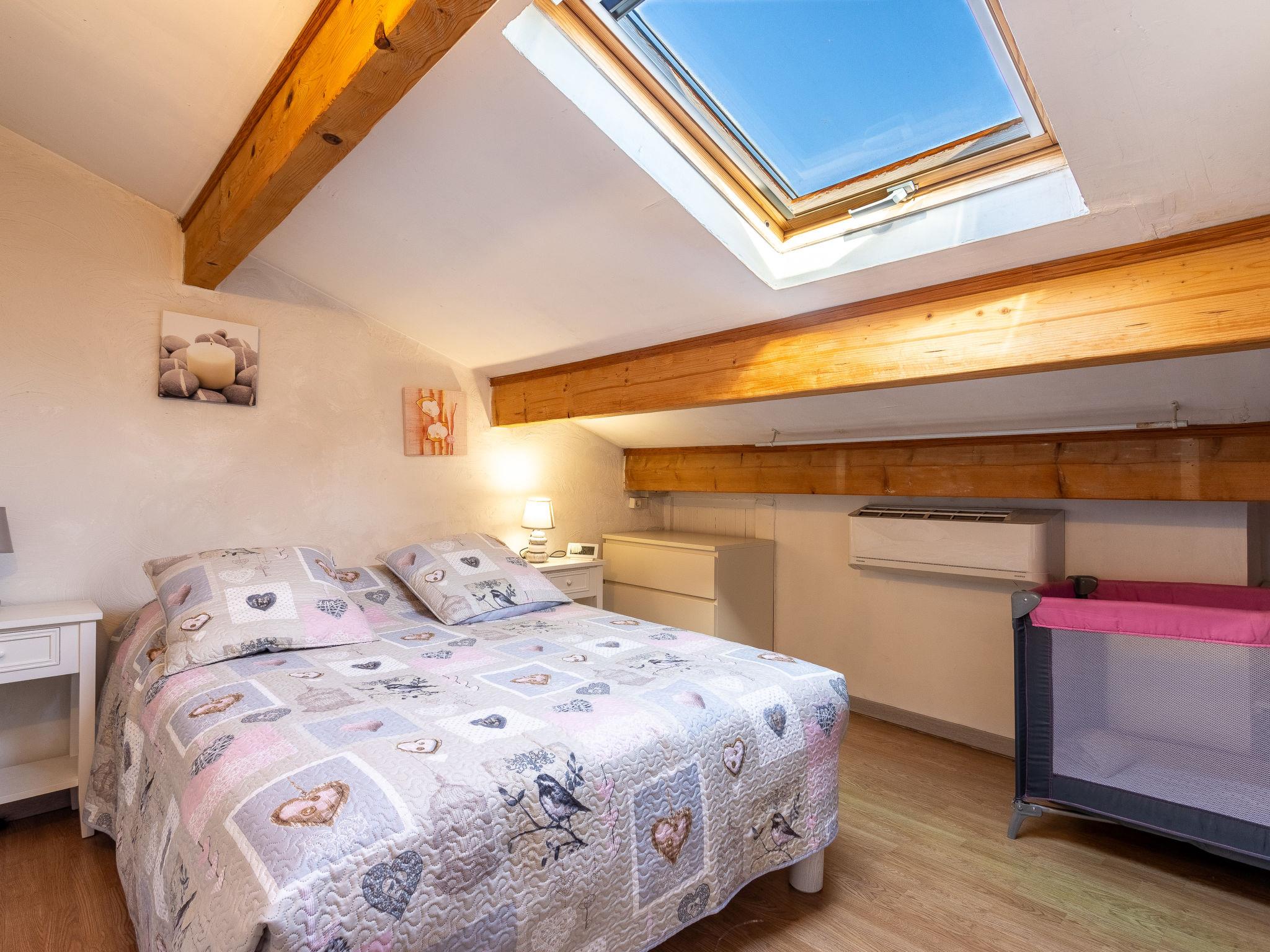 3-room apartment 55 m2 on 2 levels. Partly with sloping ceilings, comfortable and beautiful furnishings: living/dining room with TV (flat screen). Exit to the balcony. Open kitchen (oven, dishwasher, 3 induction hot plates, toaster, kettle, microwave, freezer, electric coffee machine). Shower, sep. WC. Electric heating, air-conditioning. Upper floor: 1 room 10 m2, with sloping ceilings, ceiling height 225 - 110 cm with 1 french bed (140 cm, length 190 cm). 1 room 9 m2, with sloping ceilings, ceiling height 225 - 110 cm with 2 beds (90 cm, length 190 cm). Balcony 7 m2. Balcony furniture. Partial view of the mountains. Facilities: washing machine, baby cot for up to 2 year olds. Internet (WiFi, free). Parking space n 13 (1 car). Please note: TV only FR. Smoke alarm. Offer by a private individual according to Art. 155, IV of CGI.
