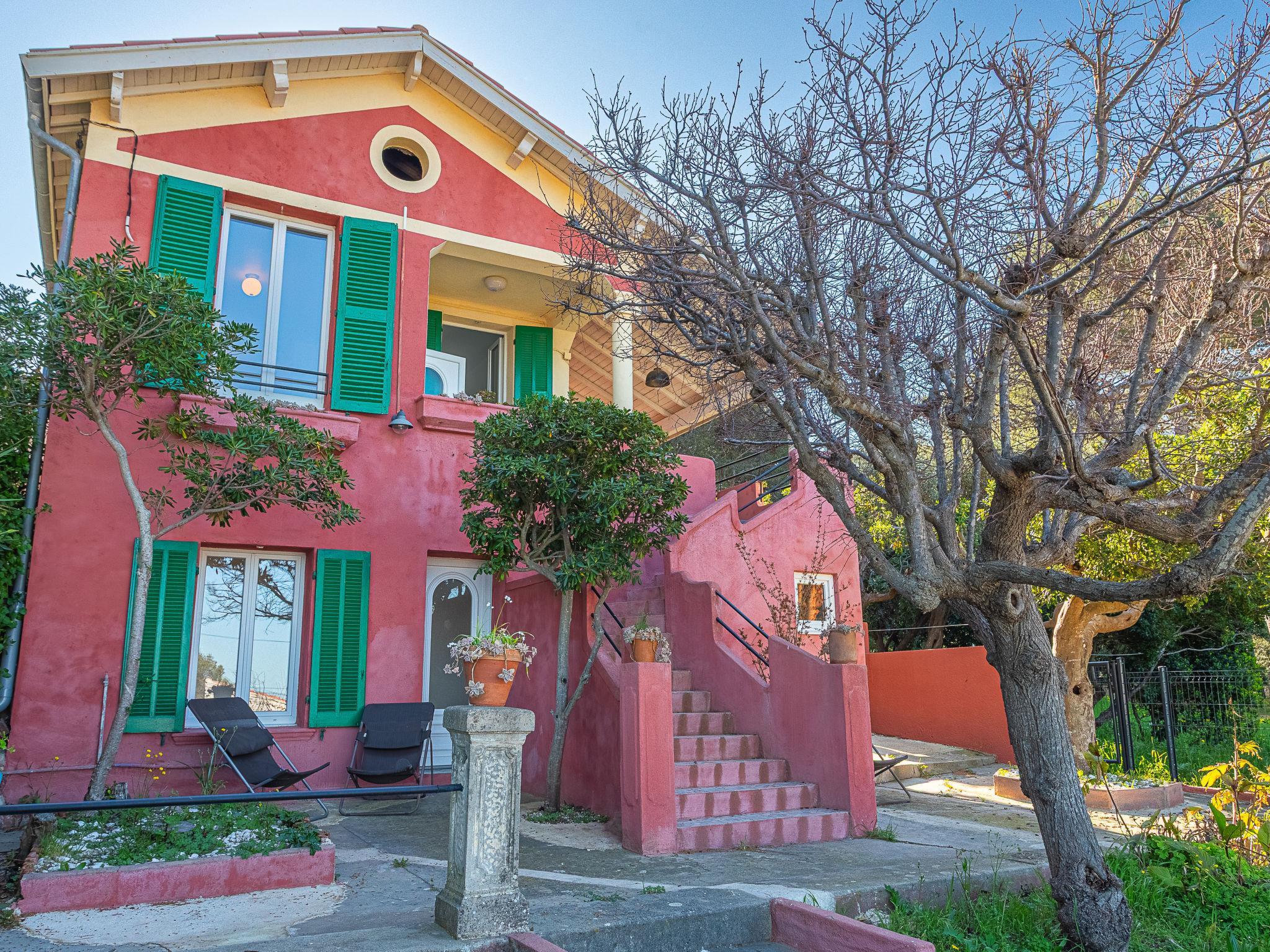 4-room villa 52 m2 on 2 levels. Spacious and bright, comfortable and beautiful furnishings: living/dining room with dining table, TV, flat screen and air conditioning. Exit to the terrace. 1 room with 1 french bed (160 cm, length 190 cm). 1 small room with 1 double bed (120 cm, length 190 cm). Kitchenette (oven, dishwasher, 3 induction hot plates, toaster, kettle, microwave, freezer, electric coffee machine). Shower, sep. WC. Electric heating. On the lower ground floor: (exterior staircase), 1 room with 1 french bed (140 cm, length 190 cm), shower/WC. Exit to the garden. Terrace 10 m2, terrace 7 m2. Terrace furniture. Very beautiful view of the sea and the garden. Facilities: washing machine, hair dryer. Internet (WiFi, free). Parking (2 cars). Please note: 1 small pet/ dog allowed. TV only FR. Smoke alarm. Offer by a private individual according to Art. 155, IV of CGI.