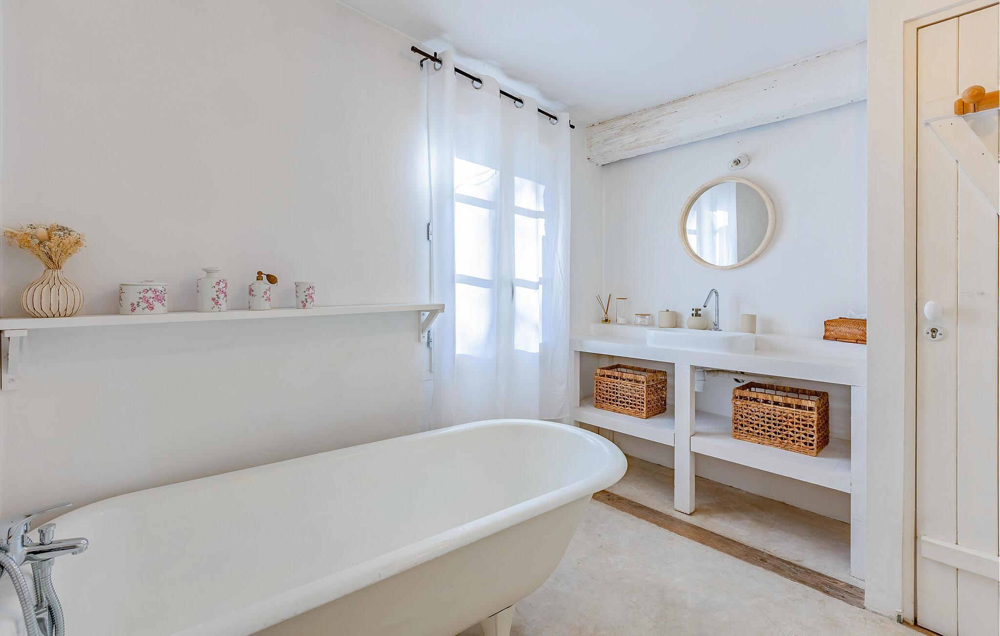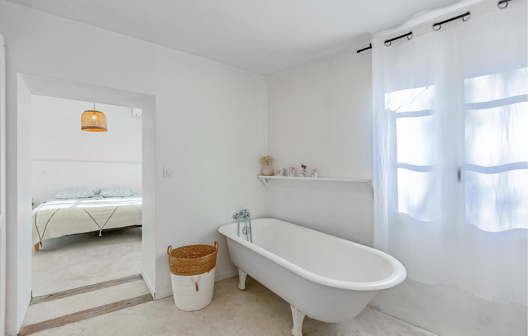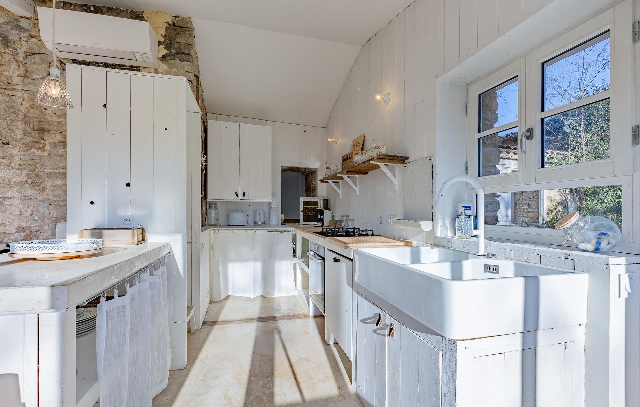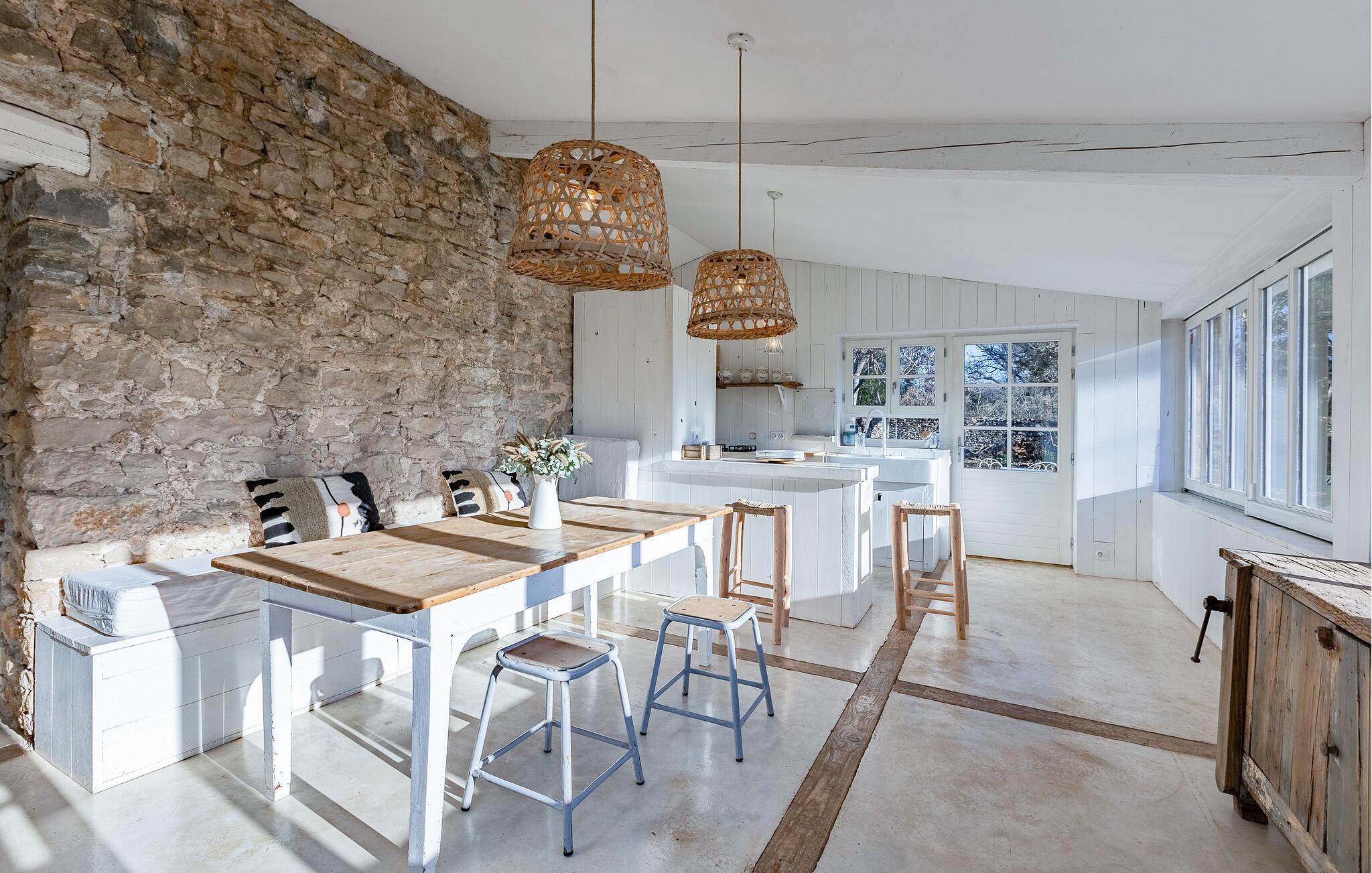 Dieses charmante Ferienhaus unweit der Mittelmeerküste bietet Ihnen die Möglichkeit, mit einer Gruppe oder befreundeten Familien eine entspannte Auszeit zu verbringen. Genießen Sie das besondere Ambiente heller, großzügiger Räume mit traditionellen Steinwänden und bereiten Sie gemeinsam in der geräumigen, voll ausgestatteten Küche köstliche Mahlzeiten zu. Finden Sie sich zu geselligen Spieleabenden im behaglichen Wohnzimmer zusammen oder wählen Sie Ihren individuellen Rückzugsort für eine spannende Lektüre.