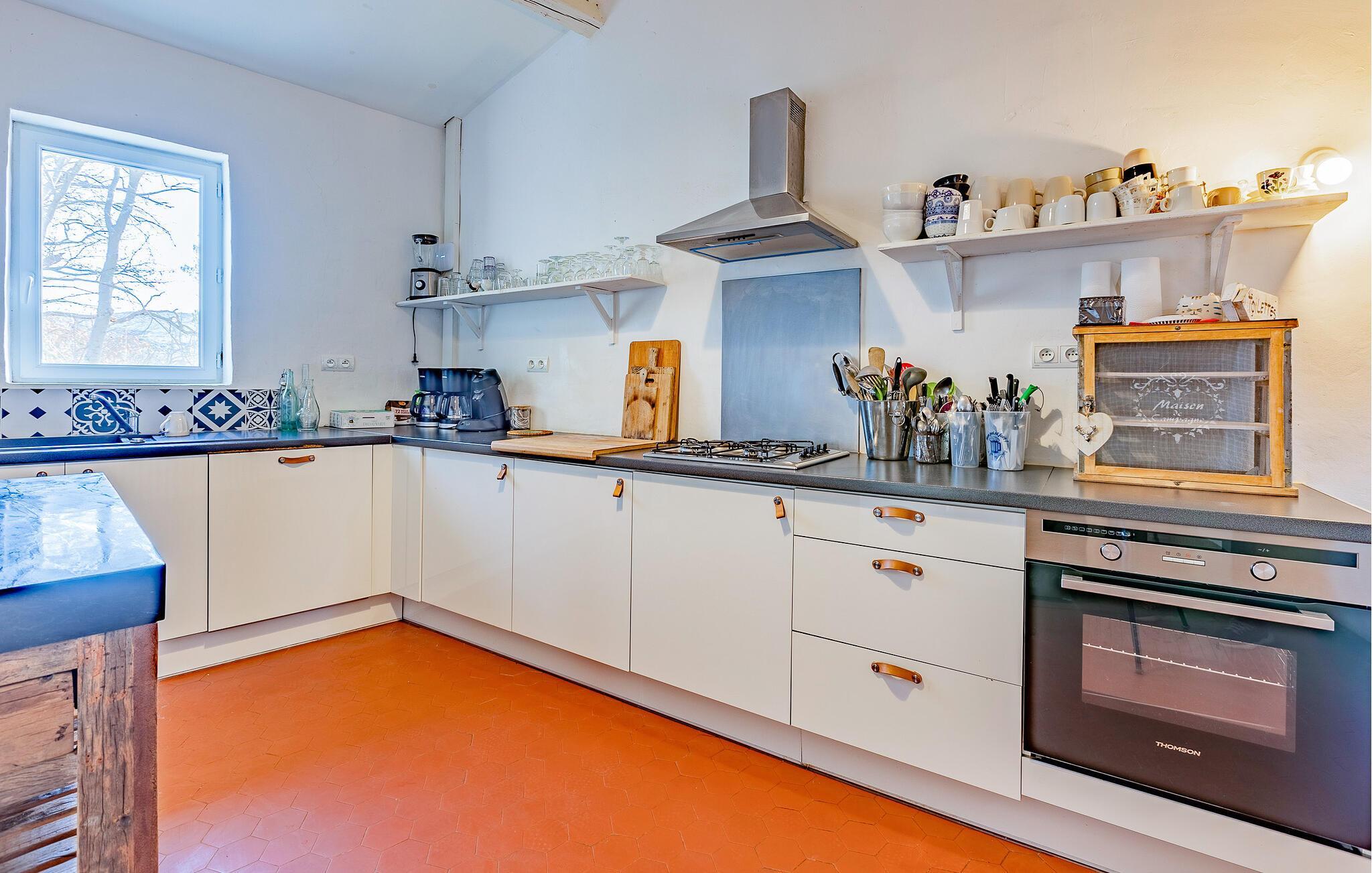 Dieses einzigartige Ferienhaus unweit der Mittelmeerküste bietet Ihnen die Möglichkeit, mit einer Gruppe oder befreundeten Familien einen entspannten Urlaub in idyllischer Lage zu verbringen. Genießen Sie das besondere Ambiente heller, großzügiger Räume mit traditionellen Steinwänden und bereiten Sie gemeinsam in der geräumigen, voll ausgestatteten Küche köstliche Mahlzeiten zu. Finden Sie sich zu geselligen Spieleabenden im behaglichen Wohnzimmer zusammen oder wählen Sie Ihren individuellen Rückzugsort für eine spannende Lektüre.