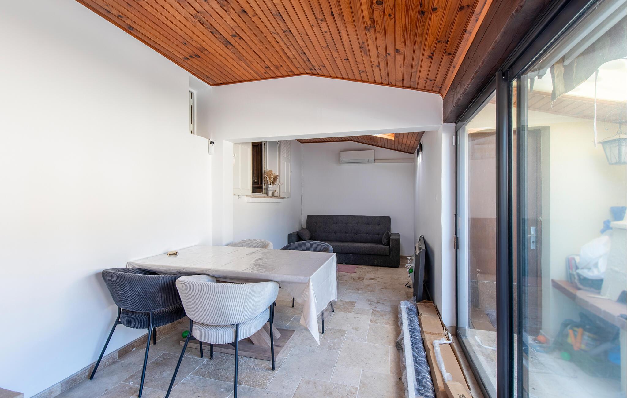 Verweilen Sie im überdachten Außenbereich und nutzen Sie den kleinen Garten zum Lesen, Spielen oder für ein ruhiges Frühstück im Freien. Öffnen Sie die großen Schiebetüren und verbinden Sie Innen- und Außenraum zu einer luftigen Einheit.