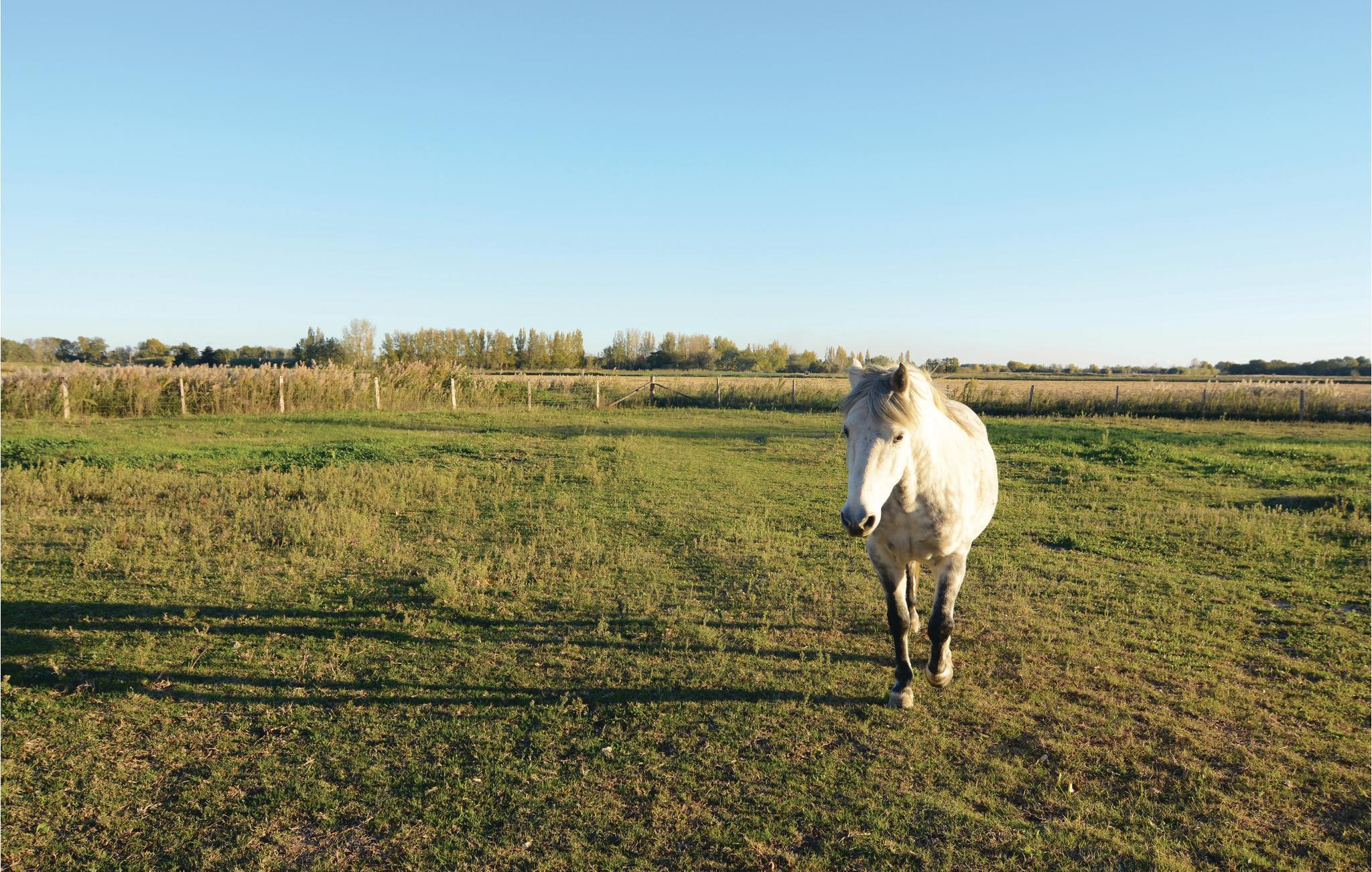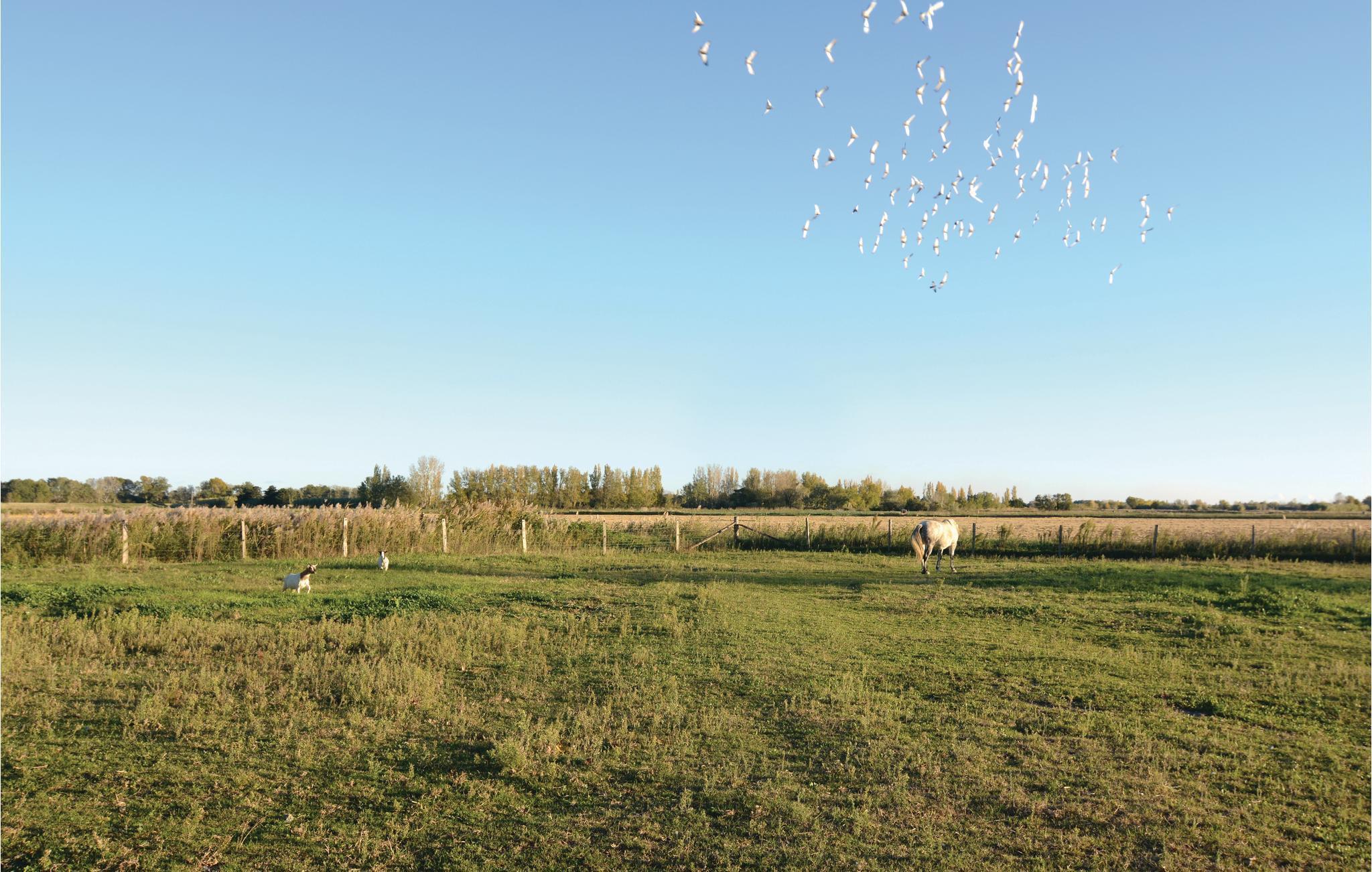 Dieses Ferienhaus unweit von der Saline de Giraud bzw. den größten Salzgärten der Carmargue verwöhnt seine Gäste mit einem Pool und einem wunderschönen Blick auf die umliegende Natur. Auf dem weitläufigen Anwesen gibt es weitere Ferienobjekte und einen schönen Gemeinschaftspool. Das Anwesen lockt mit viel Platz zum Entspannen. Am besten lässt es sich auf der überdachten Terrasse mit Sonnenliegen neben dem Pool entspannen. Für Zerstreuung auf dem Anwesen sorgen ebenso eine Tischtennisplatte, ein Bouleplatz und Spielsachen für Kinder. Le Sambuc hat einen kleinen Lebensmittelladen, ein Restaurant und eine Bar. 25 km trennen Sie vom Sandstrand Piémanson. Besuchen Sie Arles. Diese geschichtsträchtige Stadt lockt mit vielen Restaurants und samstagmorgens außerdem mit einem typisch provenzalischen Bauernmarkt. Auch Aigues-Mortes mit einem schönen Hafen, seiner komplett erhaltenen Stadtmauer und weiteren baulichen Sehenswürdigkeiten ist einen Abstecher wert. In Badeorten wie Saintes-Maries-de-la-Mer oder Le Grau-du-Roi können Sie einen herrlichen Tag am Strand verbringen. Etwas weiter entfernt können Sie durch Nîmes mit seinen alten römischen Arenen flanieren oder sich auf der wunderschönen Place de la Comédie in Montpellier ein Gläschen gönnen. Etwas zurückgezogen im Hinterland lockt die typisch provenzalische Stadt Salon-de-Provence mit dem Geburtshaus von Nostradamus, und weniger als 1 km entfernt können Angelfreunde ihrem Hobby an der Rhone nachgehen. Auf dem Anwesen ist auch ein Pferd zu Hause, und auf vorheriger Anfrage können Sie auch gern Ihr eigenes Pferd mitbringen. Größere Gruppen können mehrere Einheiten gleichzeitig buchen: FPB291, FPB292, FPB293 und FPB294. Dieses sehr angenehme Ferienobjekt verspricht Ihnen einen gelungenen Urlaub im Departement Bouches du Rhône.