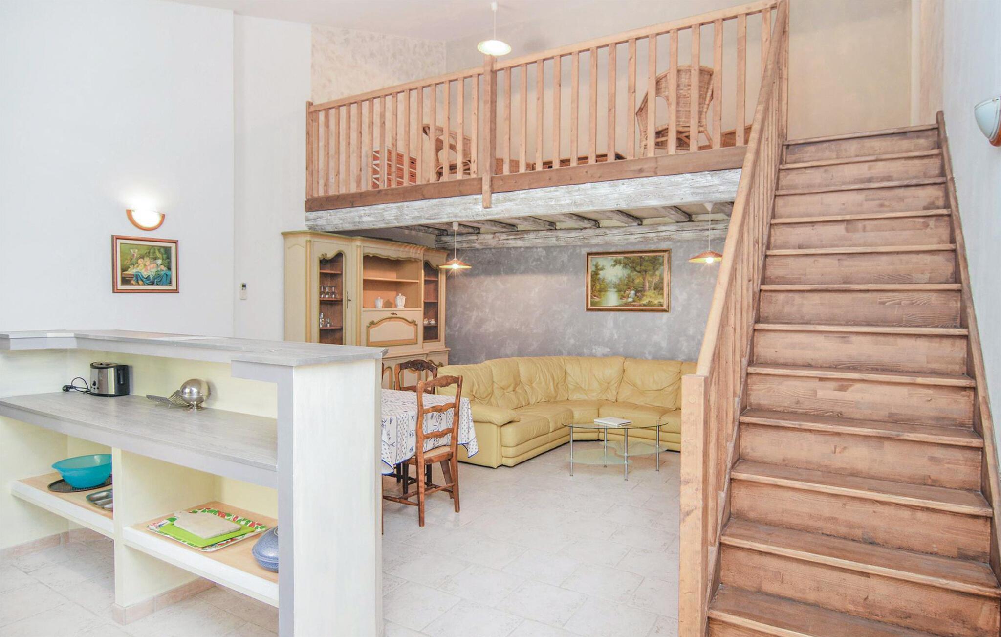 Genießen Sie als Familie die Sonne Südfrankreichs in dieser schönen Ferienunterkunft. Die geschmackvoll eingerichteten Innenräume bieten klassischen Komfort und eine einladende Atmosphäre. Das gut ausgestattete Wohnraum lässt Sie auswählen, ob Sie auf dem Sofa relaxen, in der Küche leckere Rezepte kochen oder mit Ihren Kindern am Esstisch spielen. Kommen Sie auf den zwei Ebenen der Wohnung zur Ruhe und fühlen sich wohl.