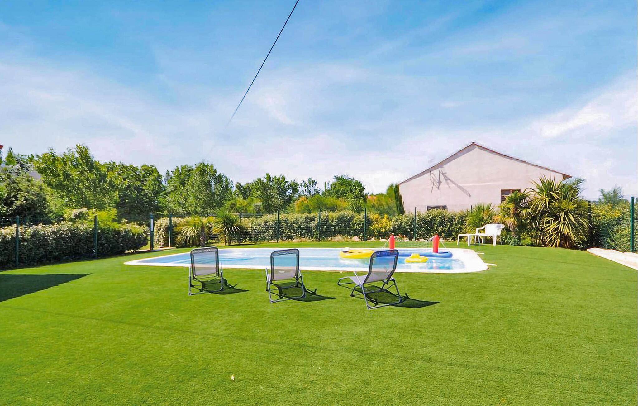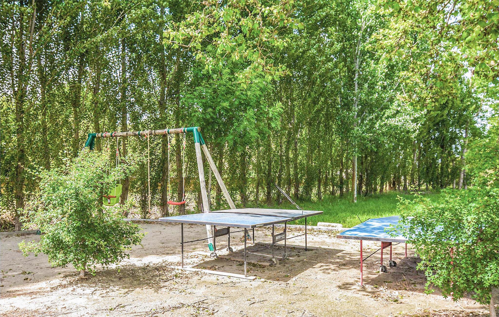 Ihre offene Terrasse bietet Ihnen schönen Rückzugsort im Schatten der Bäume und lässt Sie Ihre Mahlzeiten im Freien genießen. Der Zugang zum Gemeinschaftspool ermöglicht erfrischende Schwimmrunden, während der Spielbereich mit Tischtennis und Schaukel viel Spaß für die ganze Familie bietet.