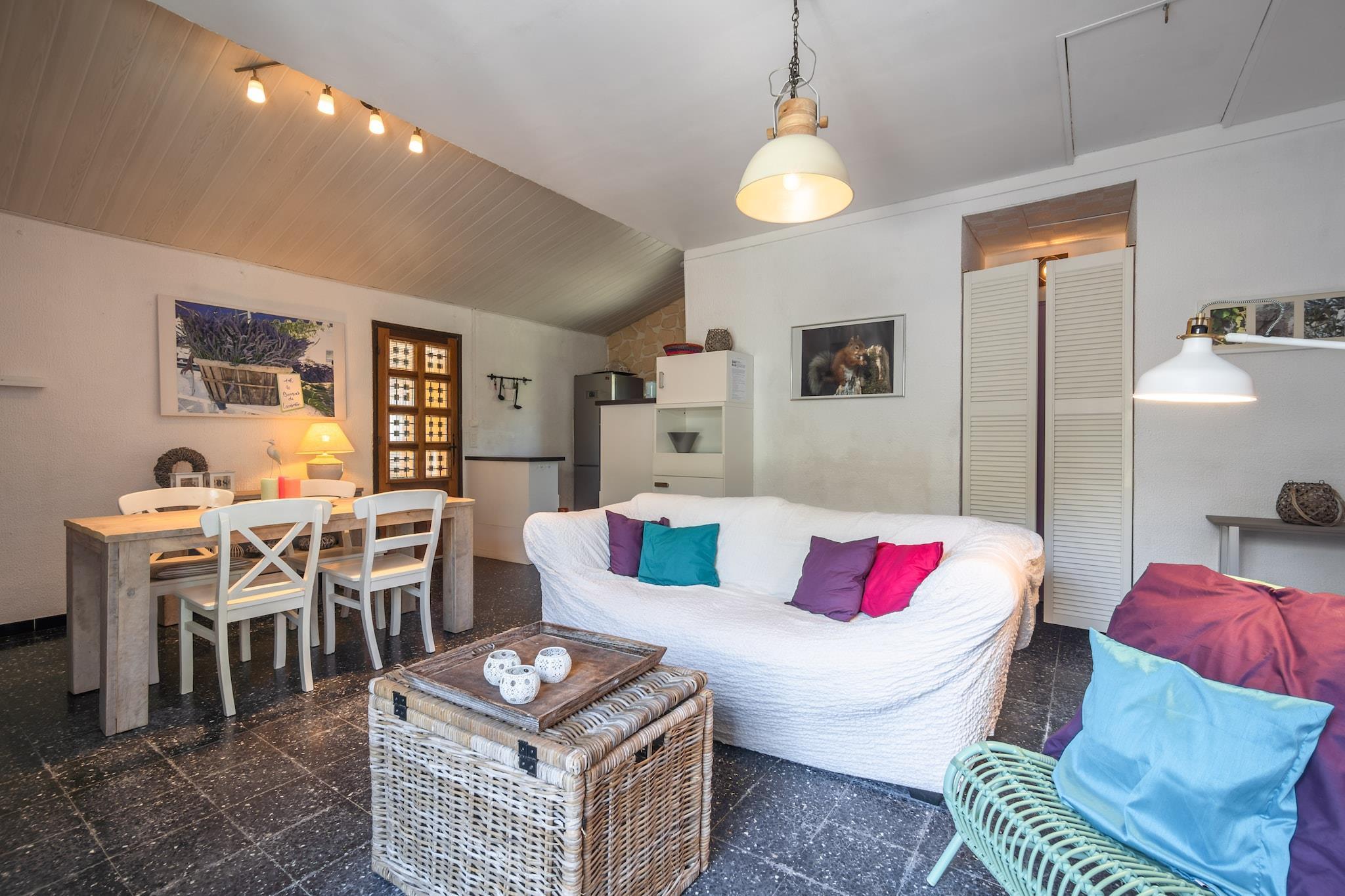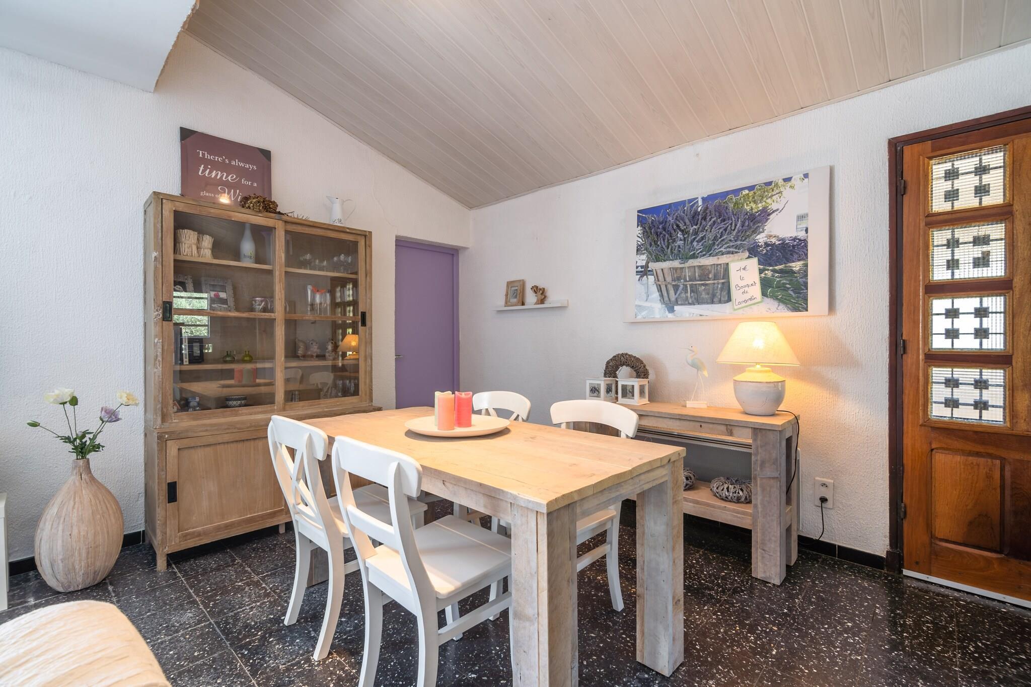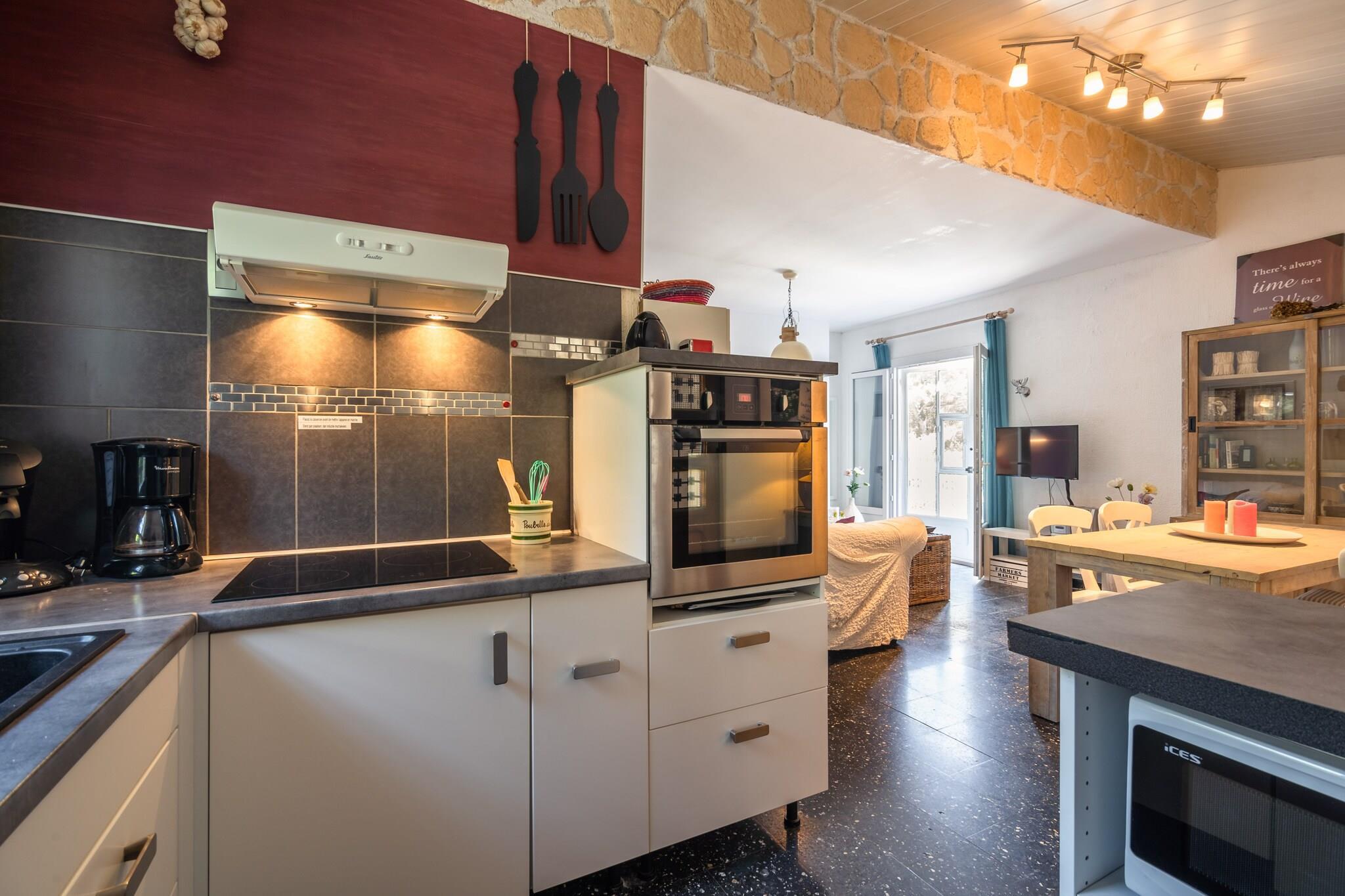 This 3-bedroom villa in Pouzols-Minervois comes with a private swimming pool to take a cool dip on a hot summer day. Resting next to a forest, the villa is ideal for a family with children or a group of 5 friends. This is an area with many cycling and hiking trails. The villa is 2 km from the town center of Pouzols, where you can enjoy the streetscape and local culture. Olonzac, the lively town with its town center is 6 km away if you wish to go for a stroll. The beautiful Jouarres Lake is 8 km away, where you can go swimming and sunbathing. At 15 km, you'll find the town of Minerve, one of France's most beautiful villages. There is a coffee machine in the kitchen to grab a quick cup in the evenings. The television has, because of the satellite, access to almost every European channels. Also there is a Google chrome cast attached to it, so you can watch everything you also can watch from home. In the large garden, you have a private swimming pool, surrounded by a large terrace. You can enjoy the sun on the sun loungers before going for a swim. The roofed terrace is a very quiet and lovely place to have meals or to read in the shade.