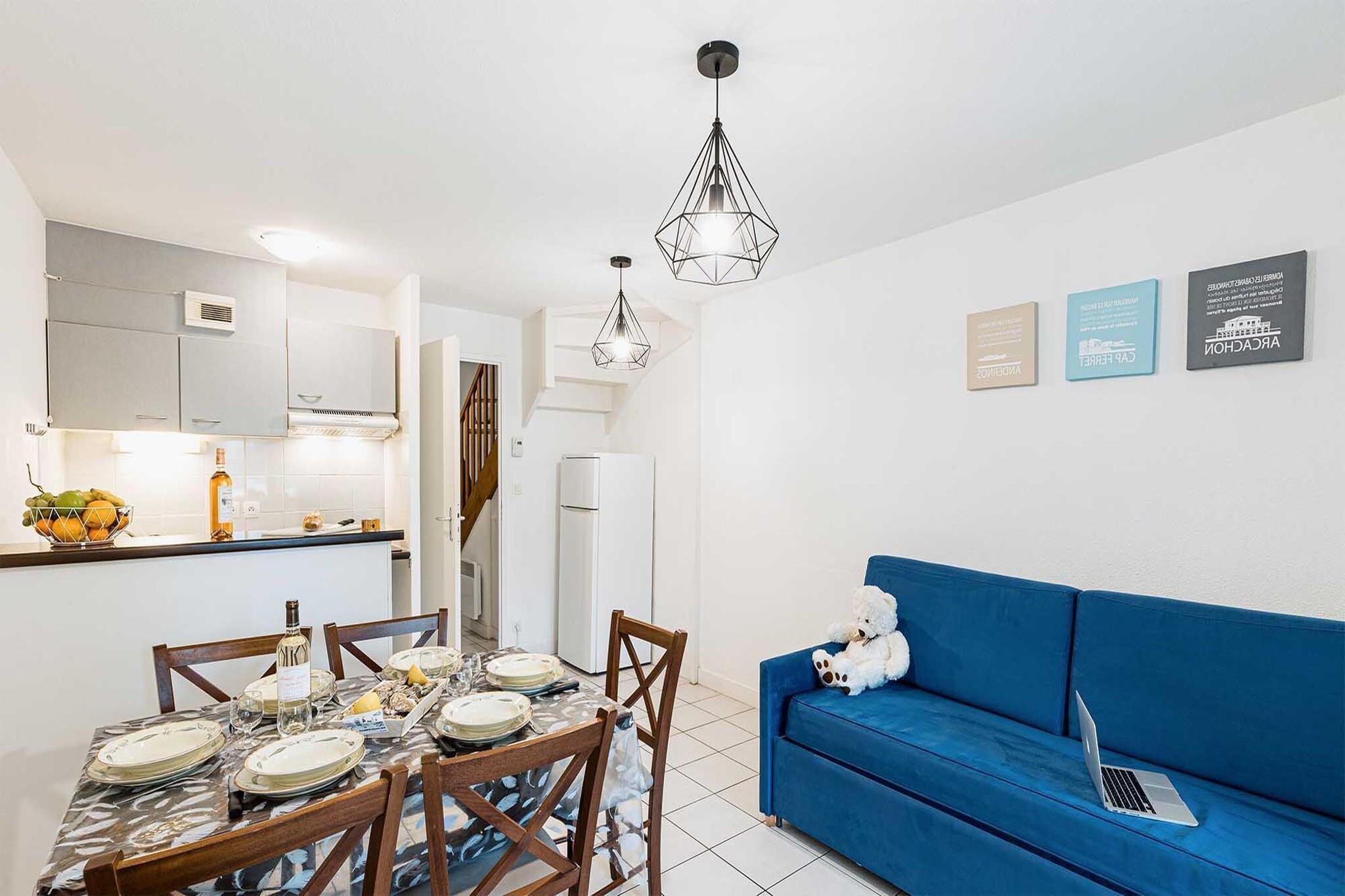 Charming Coastal Retreat in Arcachon Bay Style Step into this warm and inviting home designed in the iconic tchanquée style—traditional cabins-on-stilts that capture the spirit of Arcachon Bay. With 47 m² of stylish living space, the home offers a bright living room with a comfortable sofa bed, an open kitchen with modern amenities, and two serene bedrooms—one with a double bed and another with two singles. Two bathrooms and a private terrace provide comfort and convenience for families or couples seeking a relaxed seaside break. Nature, Beaches & Pet Adventures Await Located in peaceful Le Teich on the Atlantic Coast, you’re just minutes from the nature-rich Teich Bird Reserve and stunning sandy beaches. Bring your furry friends along! The nearby Parc Ornithologique allows leashed dogs, and the scenic Bay trails are perfect for strolls with your pup. For more tail-wagging fun, check out the local dog-friendly beaches around La Teste-de-Buch or enjoy a sunset walk along the Port de Biganos. Local Dining & Seaside Delights After a day of exploring or lounging by the heated shared pool, unwind at local seafood bistros along the Bassin d’Arcachon. From fresh oysters to sunset aperitifs, Le Teich and its surroundings serve up memorable flavors. Whether you're dining al fresco on your terrace or discovering quaint harbor cafés, this pet-friendly getaway makes every moment feel like a holiday.