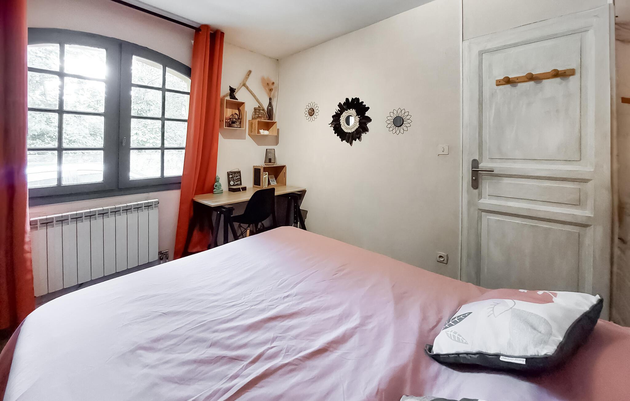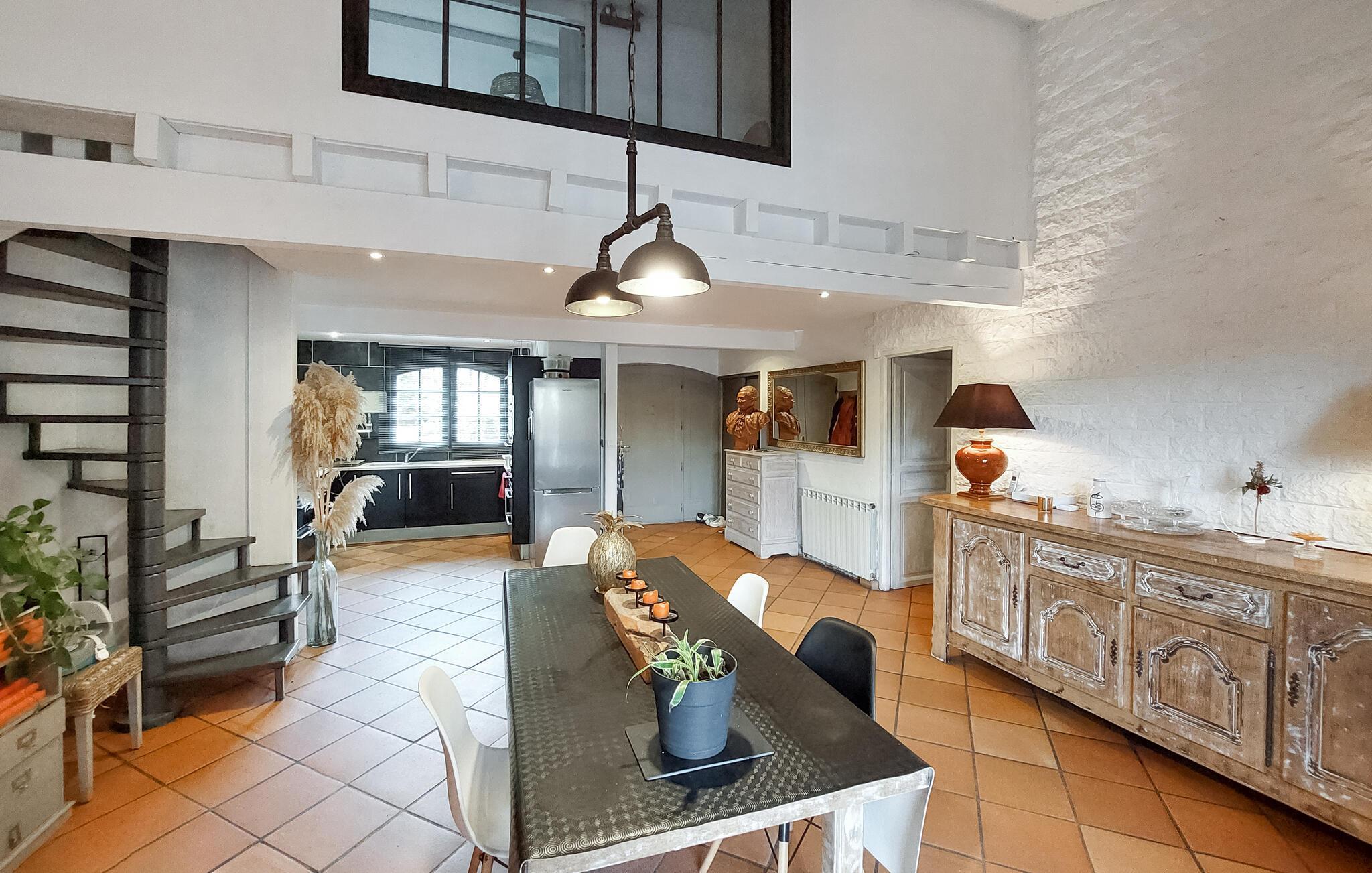 Erleben Sie einen unvergesslichen Urlaub in diesem stilvollen Ferienhaus in Le Temple. Die hochwertige und dekorative Einrichtung verleiht jedem Zimmer seinen eigenen Charakter und sorgt für eine gemütliche Atmosphäre. Auf zwei Etagen bietet Ihnen das gemütliche Schlafzimmer, in die Sie sich zurückziehen und Ihre Nachtruhe genießen können. Kommen Sie im großen, offenen Wohnbereich mit moderner Küche zu geselligen Stunden zusammen.