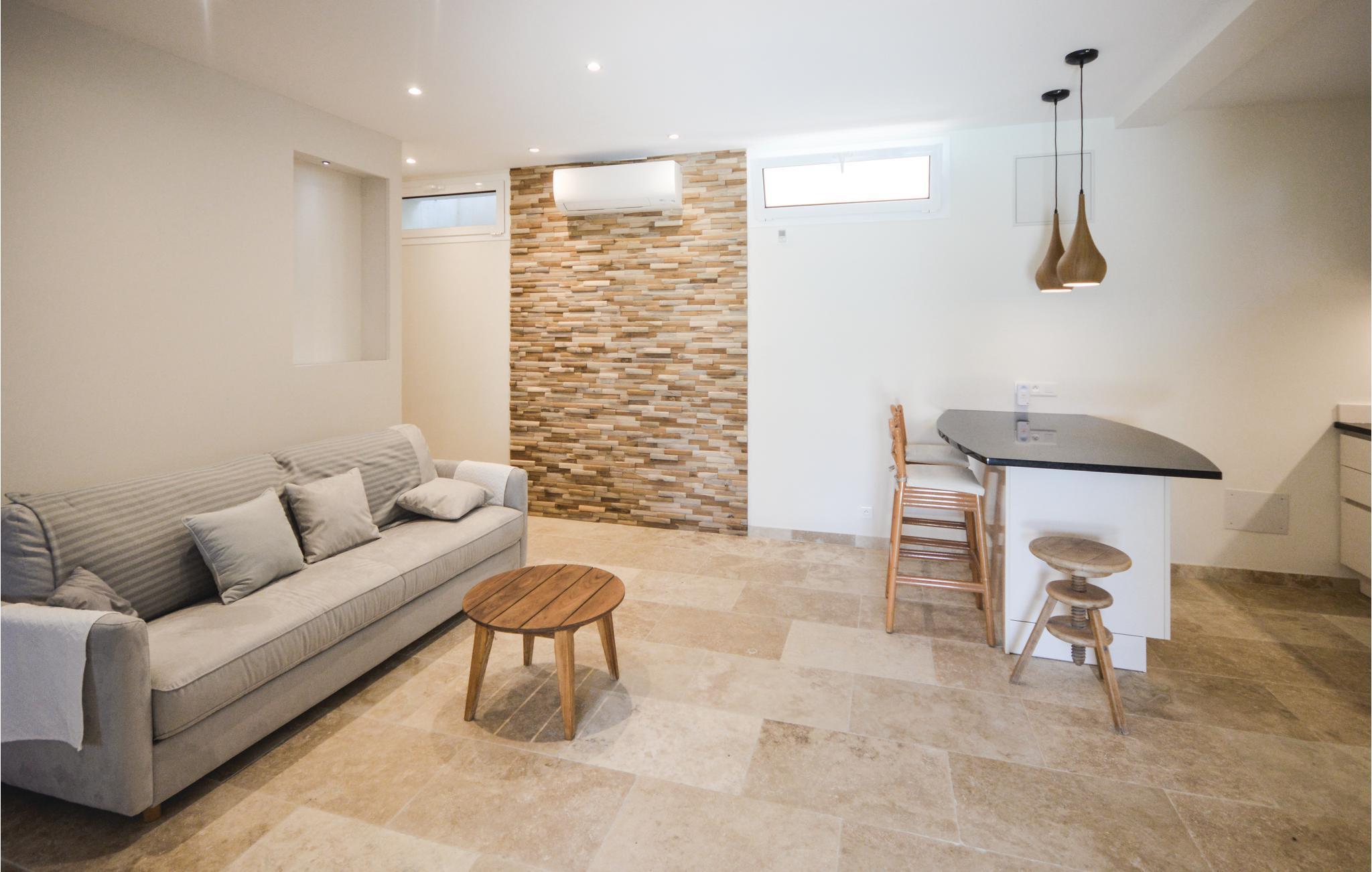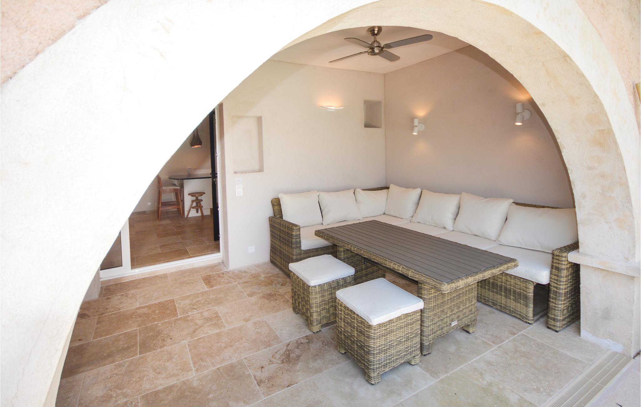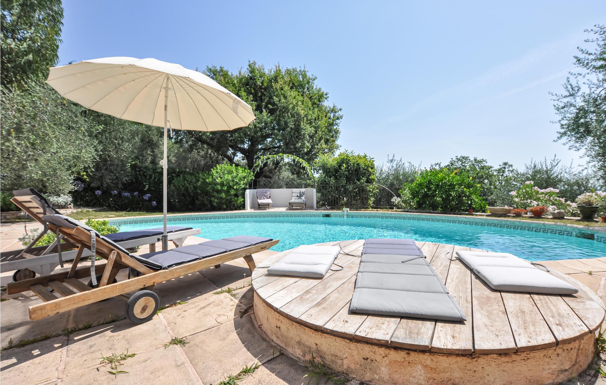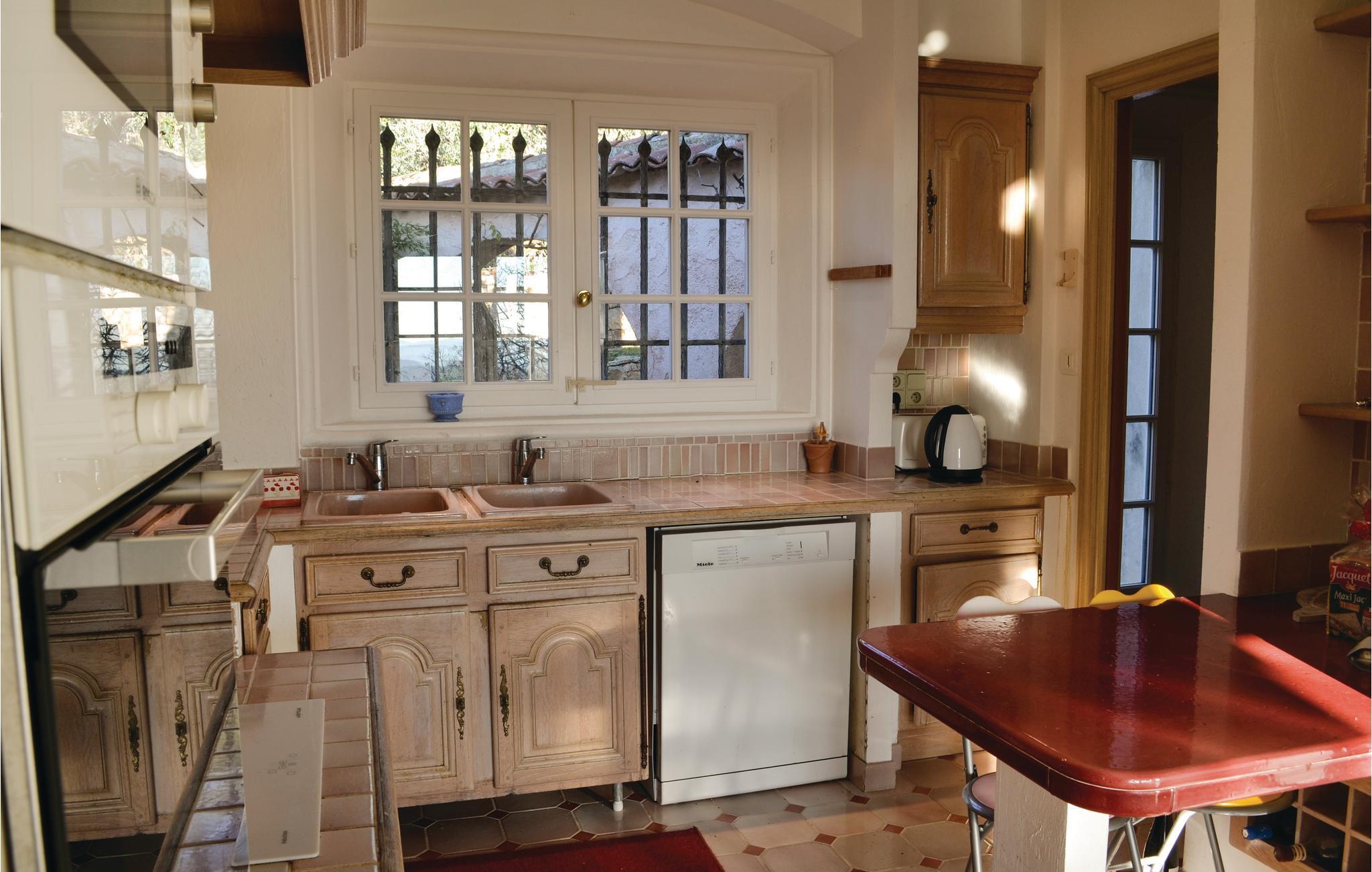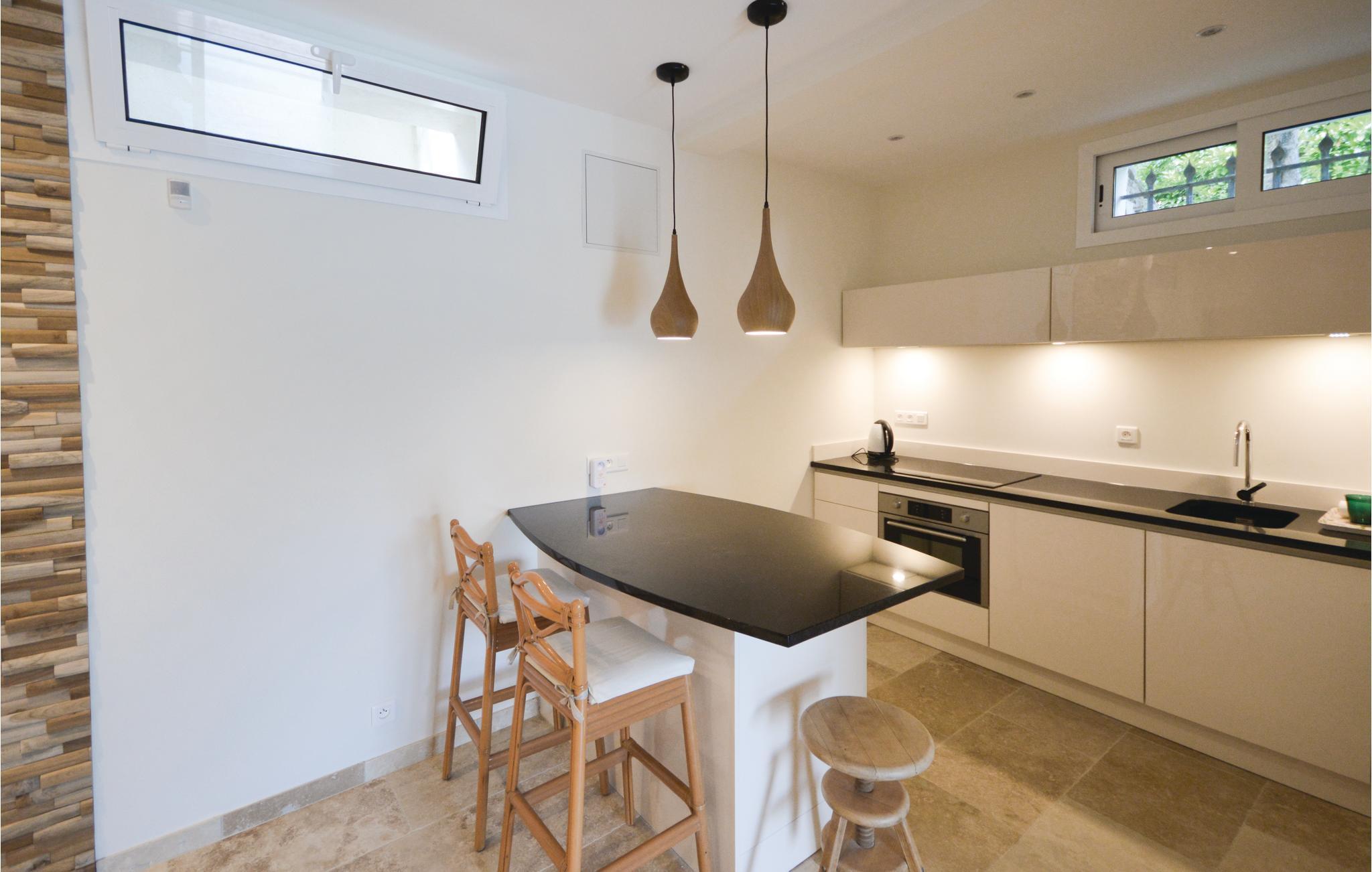 Im Erdgeschoss des Hauses erwartet Sie eine zweite Küche mit einer Bar und einem Wohnbereich. Die Loggia und die Gartenmöbel ermöglichen einen Aperitif im Schatten des Pools. Das Erdgeschoss und die dazugehörige Terrasse können für Kleinkinder unter Aufsicht gesichert werden