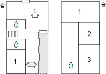 Badezimmer 5m2 (nr. 1) - WC. Warmes und kaltes Wasser. Dusche