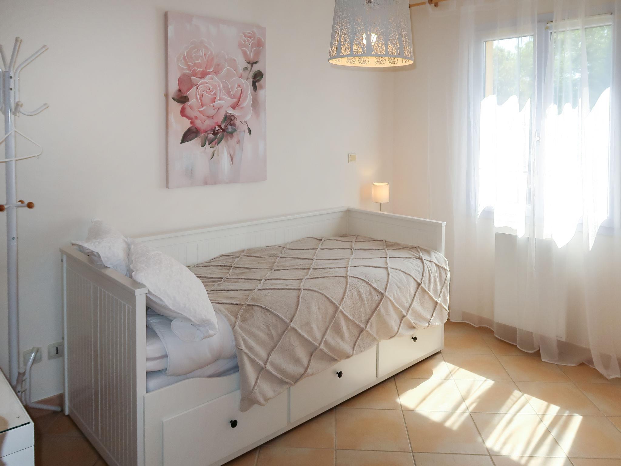 "Allegra", 4-room house 100 m2. Comfortable and beautiful furnishings: living/dining room with open-hearth fireplace (only for decoration), dining table, TV, flat screen and hi-fi system. Exit to the terrace. 2 rooms, each room with 1 french bed (160 cm, length 200 cm). 1 room with 1 pull-out bed (2 x 80 cm, length 200 cm). Open kitchen (oven, dishwasher, 3 induction hot plates, toaster, kettle, microwave, electric coffee machine). Shower, sep. WC, double hand-basin. Electric heating. Terrace 20 m2, roofed terrace 15 m2. Terrace furniture, barbecue. Facilities: washing machine, children's high chair, baby cot. Internet (WiFi, free). Please note: non-smoking house. Smoke alarm. 83143000009D2