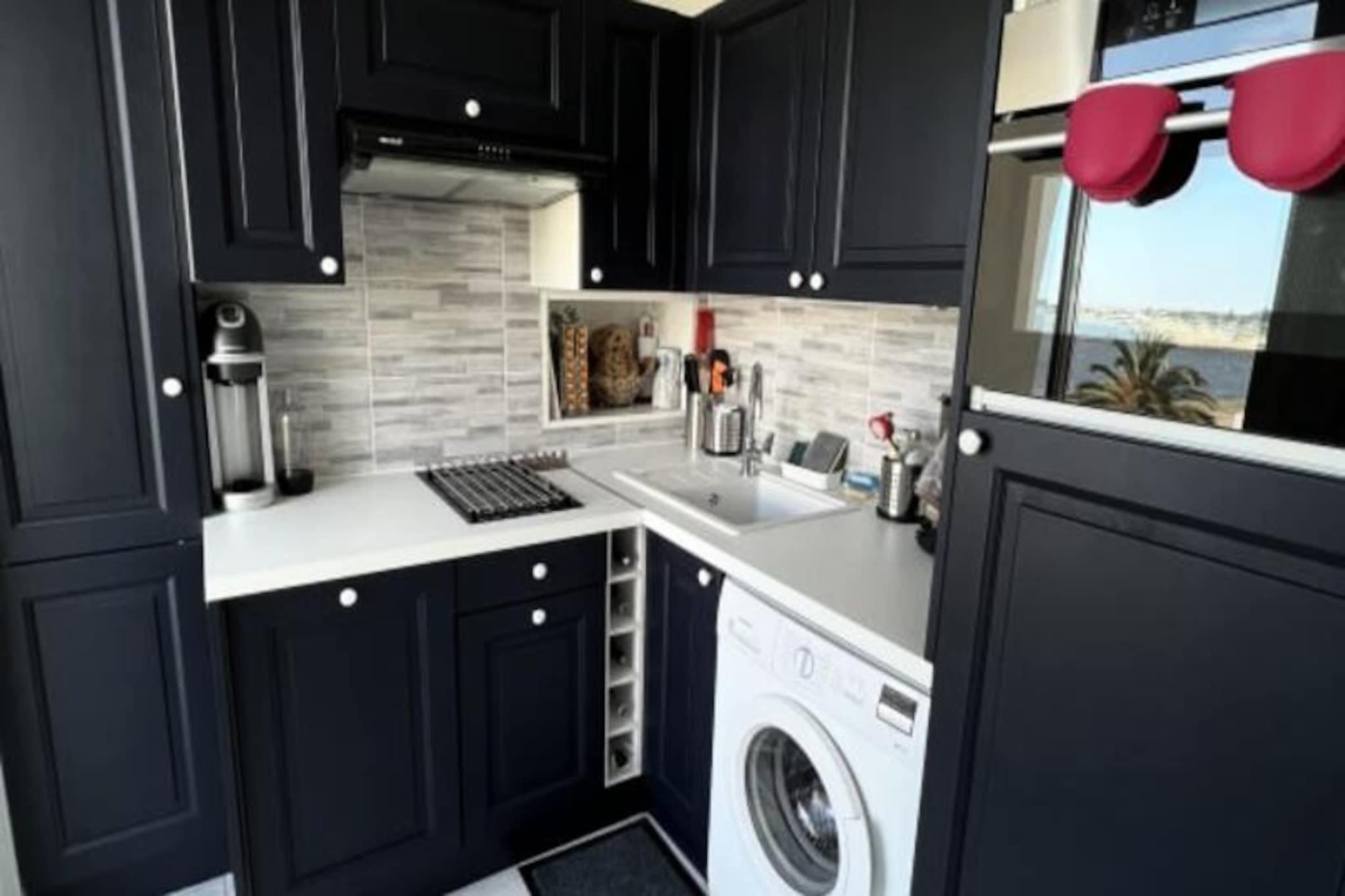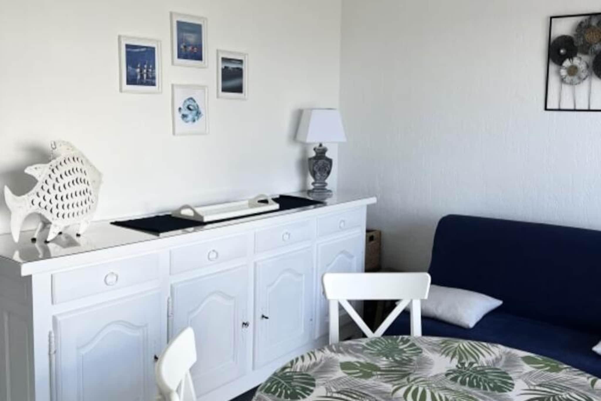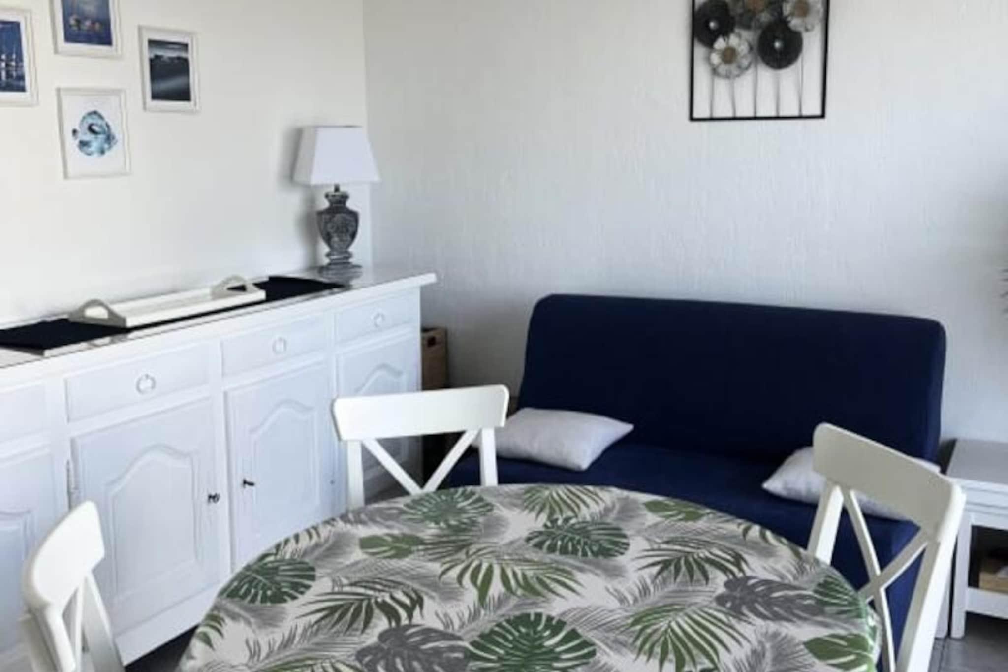 Awaken your senses to the soothing rhythm of the sea at this beautifully renovated one-bedroom apartment in Le Grau du Roi. Perched on the third floor of a secure residence, this seaside retreat offers a front-row seat to the Mediterranean's ever-changing hues. From your private balcony, watch trawlers glide across the horizon and fishermen bring in their daily catch, immersing yourself in the authentic charm of this iconic fishing port. Just a two-minute stroll from the beach and local amenities, this is the perfect escape for couples or families seeking a blend of comfort and coastal adventure. Inside, the apartment is a harmonious blend of functionality and style. The bedroom features a plush queen-size bed, while a cozy sleeping alcove with bunk beds provides additional space for children or friends. The bright living room, complete with a sofa bed and television, opens onto the balcony, where you can savor your morning coffee with a view of the sparkling sea. The fully equipped kitchenette includes everything you need for home-cooked meals, from a dishwasher to a coffee maker. A modern bathroom with a shower and a separate toilet add to the convenience, ensuring a stress-free stay. Step outside, and you’re just moments from the vibrant heart of Le Grau du Roi. Explore the bustling market, indulge in fresh seafood at local restaurants, or simply unwind on the sandy shores. The nearby Camargue landscapes offer endless opportunities for exploration, from birdwatching in the wetlands to cycling along scenic trails. With the train station just 1 km away and excellent transport links to Montpellier, this apartment is as accessible as it is idyllic. Whether you're here to relax by the sea or discover the natural beauty of the Camargue, \