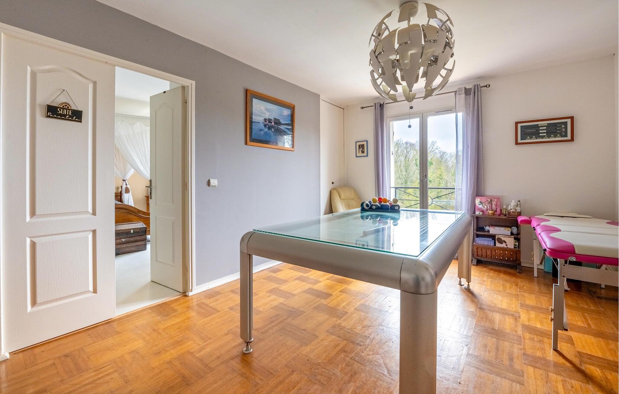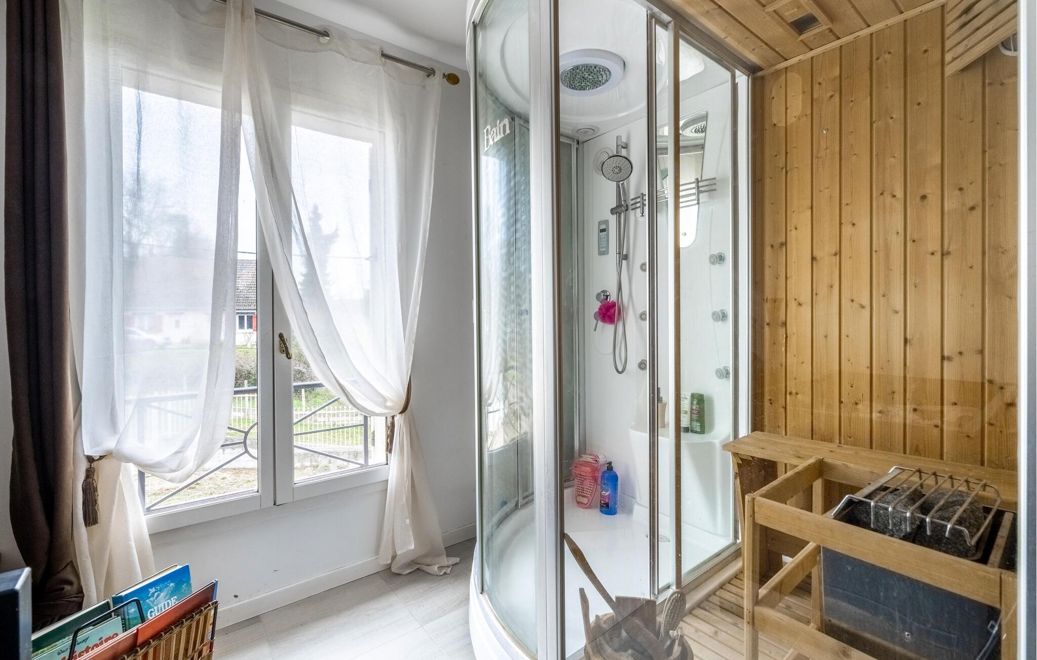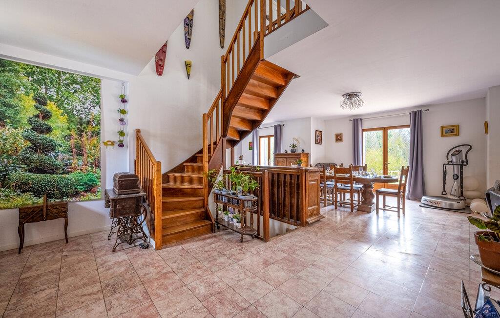 Reisen Sie mit einer Gruppe von Freunden oder Ihrer Großfamilie in das charmante Dorf La Vaumain und freuen sich auf eine Auszeit von Ihrem hektischen Alltag. Auf drei Etagen können Sie das familiäre Haus entdecken und Ihre Lieblingsräume finden, denn für jede Person ist etwas dabei. Spielen Sie in geselliger Runde am Esstisch oder kommen zu einem Filmabend auf dem Sofa zusammen. Wellnessbegeisterte können sich über eine Whirlpool-Badewanne und Sauna freuen und können den Badespaß auf der Terrasse mit Pool und Fitnessgeräten fortführen. Entdecken Sie auch das riesige Grundstück, auf dem auch zwei Pferde wohnen, die nicht geritten werden können. Mehr Unterhaltungsmöglichkeiten finden Sie auf dem Boulespielplatz. Ebenso versprechen Ihnen das französischer Billardtisch, die Tischtennisplatte, der Basketballkorb, das Fußballnetz und Badminton viele Stunden Spiel und Spaß.