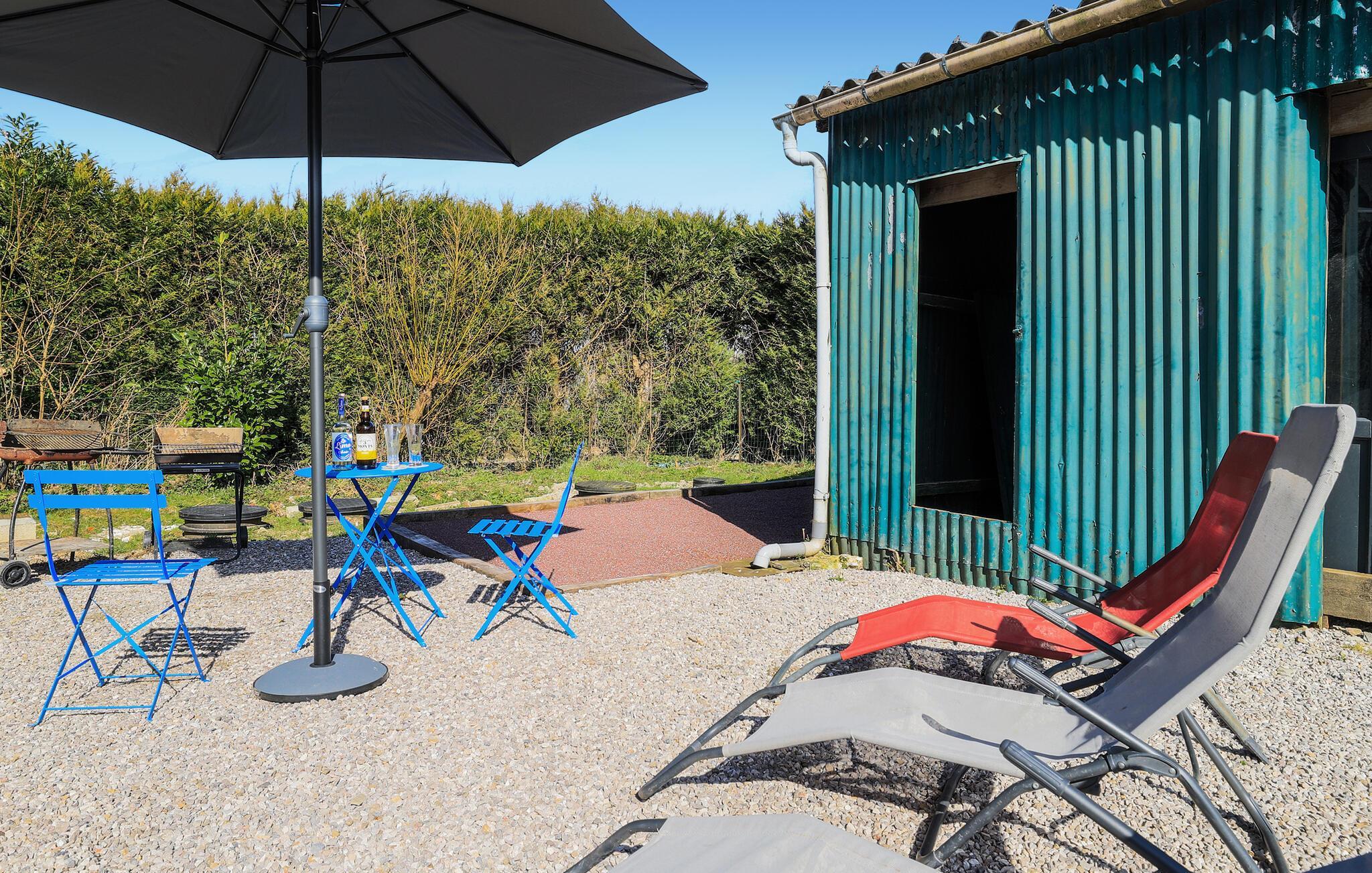 Entspannen Sie sich im sonnigen Außenbereich, der mit Liegestühlen und zahlreichen Sitzgelegenheiten sowie einem Sonnenschirm ausgestattet ist. Verbringen Sie laue Sommerabende beim Grillen und genießen Sie die ruhige Atmosphäre des gepflegten Gartens. Fordern Sie Ihre Familie oder Freunde zu einer Partie Boule auf der eigenen Boulebahn heraus oder spielen Sie gemeinsam Tischtennis im Freien.