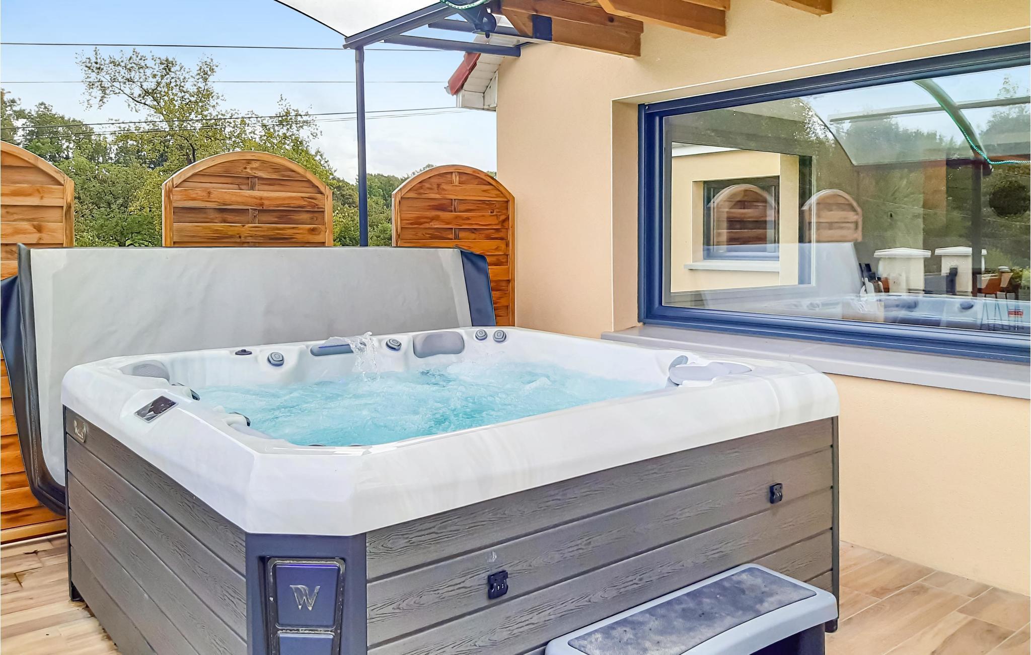 Die Terrasse mit herrlichem Blick auf die umliegende Natur ist mit einem Whirlpool ausgestattet, der Ihnen unvergessliche Momente der Entspannung verspricht.