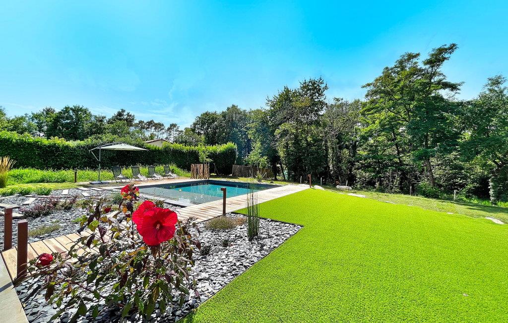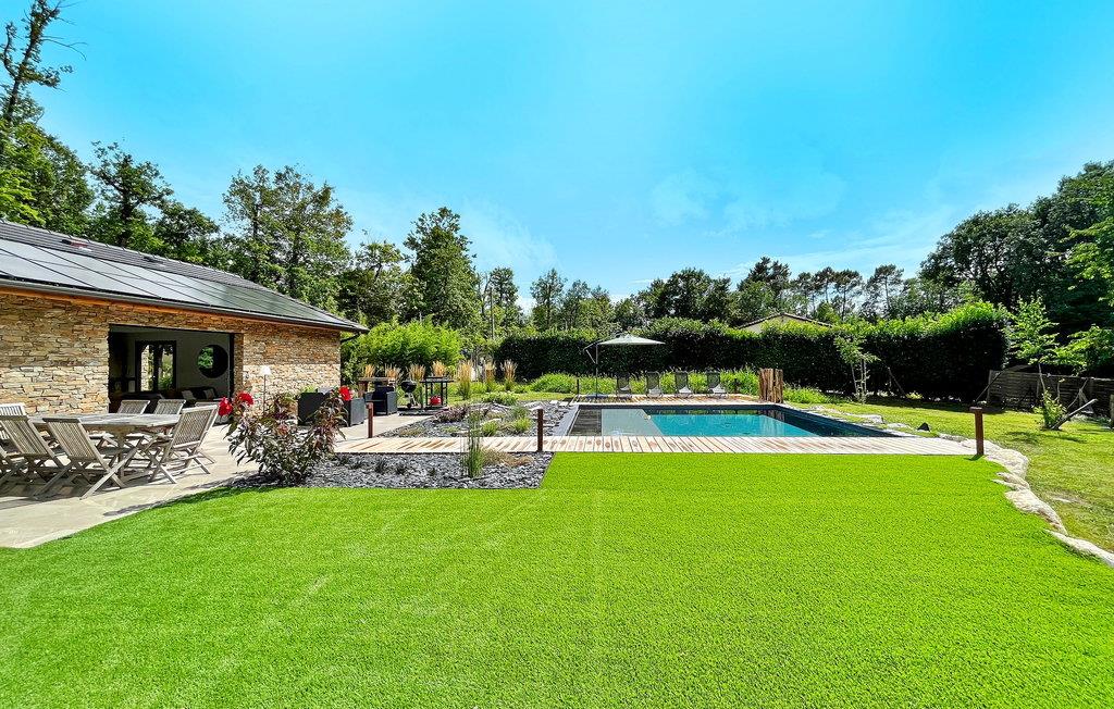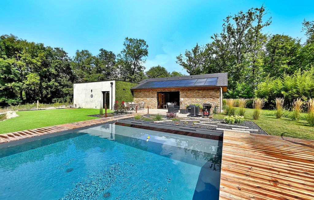 Entdecken Sie den Charme der Dordogne in diesem kürzlich erbauten Ferienhaus aus Stein mit privatem Pool im Dorf Leguillac de L'Auche. Dieser Rückzugsort bietet eine nahtlose Mischung aus Komfort und Luxus. Im Inneren ist das Anwesen wunderschön gestaltet und mit modernen Möbeln und modernem Komfort ausgestattet. Draußen erwarten Sie ein angelegter Garten, Parkplätze, ein Petanque-Platz und eine Terrasse mit Sitzplätzen für neun Personen. Der Grillplatz lädt zum Essen im Freien ein, während der private Pool mit seiner erfrischenden Ausstrahlung und seinem kinderfreundlichen Design lockt. Umgeben von einer ruhigen Landschaft, aber nicht völlig isoliert, finden Sie die nächsten Geschäfte und Annehmlichkeiten knapp einen Kilometer entfernt. Tauchen Sie ein in die Ruhe und Eleganz dieses Ferienhauses in der Dordogne, in dem jedes Detail darauf ausgelegt ist, Ihr Urlaubserlebnis zu verbessern.
