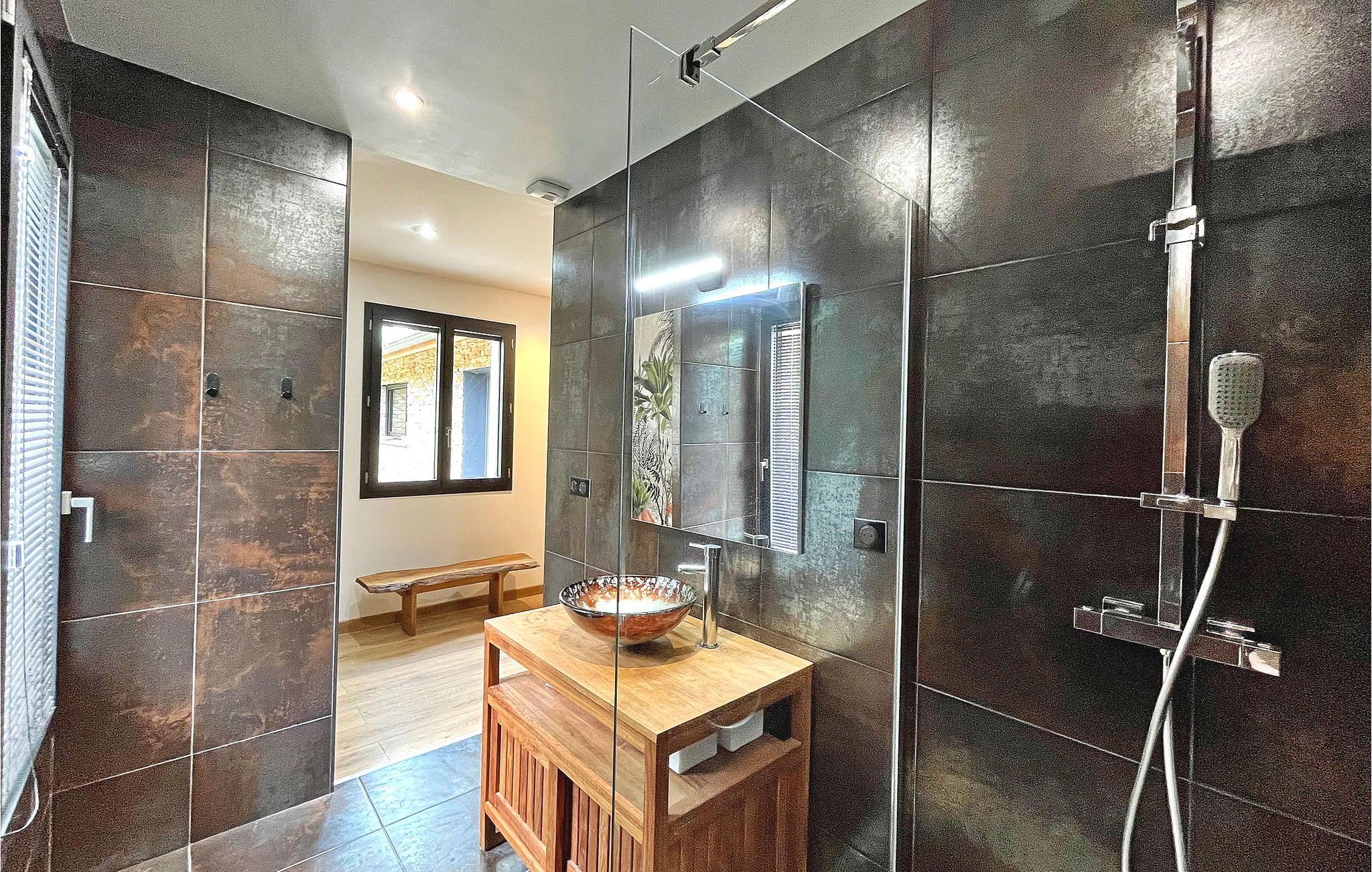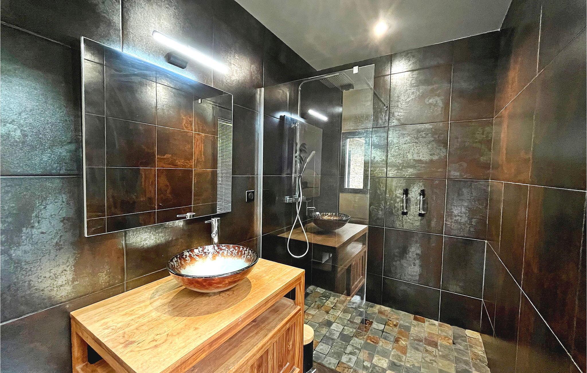- WC mit warmem und kaltem Wasser, Dusche und Badewanne