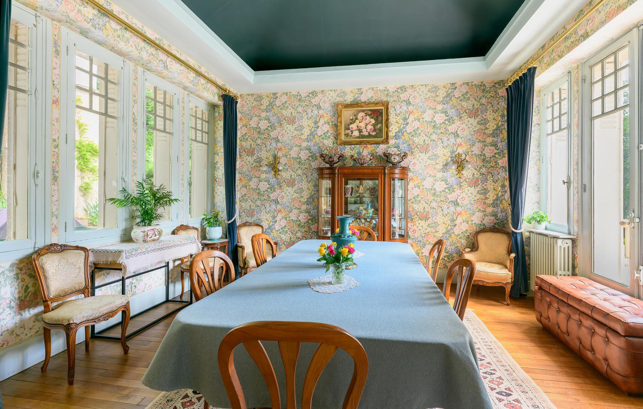 Erleben Sie einen unvergesslichen Urlaub in einem prächtigen Schloss in Lencloitre, inmitten der idyllischen Landschaft von Vienne und Haut-Poitou. Das majestätische Anwesen besticht durch seine ruhige Lage und den authentischen Charme des 19. Jahrhunderts. Die großzügigen Innenräume sind liebevoll mit antiken Möbeln und Dekorationen ausgestattet, die eine warme und einladende Atmosphäre schaffen. Genießen Sie die modernen Annehmlichkeiten, die harmonisch mit dem historischen Ambiente verschmelzen.