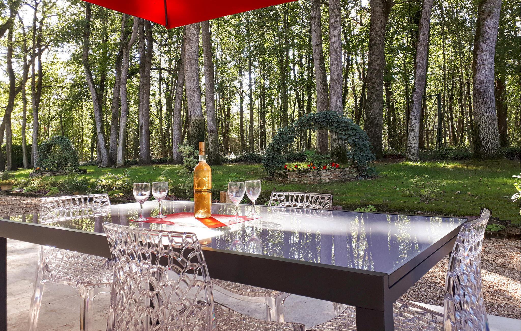 Auf der gemütlichen Terrasse können Sie entspannen und die frische Landluft einatmen. Der weitläufige Park des Anwesens bietet eine Vielzahl von Baum- und Straucharten und beheimatet viele Tiere und Vögel, die diesen Ort verzaubern. Der große Swimmingpool lädt an heißen Tagen zu einer erfrischenden Abkühlung ein. Für Naturliebhaber gibt es zahlreiche Wanderwege, wo Sie morgens Rehe und viele andere Tiere beobachten können. In Lencloitre selbst finden Sie charmante Cafés und Geschäfte. Die Region ist reich an Geschichte und Kultur, ideal für Erkundungstouren und entspannte Spaziergänge.