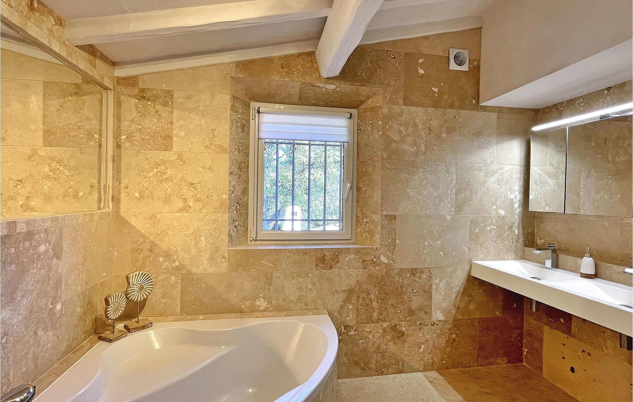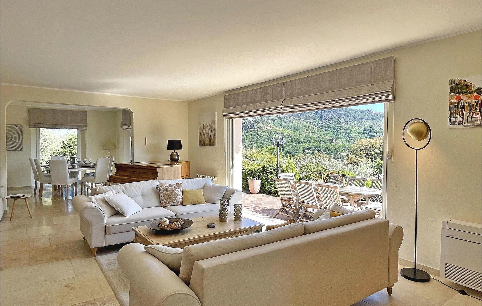 Diese in Adrets-de-l'Estérel gelegene Ferienvilla ist ein idyllischer Rückzugsort mit einem privaten beheizten Pool, einer Sauna und einem Whirlpool. Diese großzügige und luxuriöse Villa bietet Unterkunft auf zwei halben Ebenen. Ein Eingang im Erdgeschoss führt zu einer halben Etage höher mit zwei Schlafzimmern, beide mit Balkon mit Blick auf Estérel und Klimaanlage. Wenn Sie eine halbe Ebene hinabsteigen, gelangen Sie in einen geräumigen Wohnbereich mit Büroräumen, Lounge, TV-Bereich und Essbereich. Die geschlossene Küche mit Zugang zu einer schattigen Terrasse ist gut ausgestattet. Zwei weitere Schlafzimmer, ein Duschbad, eine Waschküche und ein zusätzliches WC vervollständigen diese Ebene. Im Außenbereich verfügt die Villa über ein geschlossenes Terrassengrundstück, mehrere Terrassen und einen Bouleplatz. Eine Gartenterrasse verfügt über ein Spa, eine verglaste Sauna und Ruhezonen. Der Poolbereich verfügt über einen beheizten 12 x 5 m großen Pool, Liegestühle, eine Pooldusche und eine schattige Bar mit Waschbecken und Kühlschrank. Das Haus liegt ideal im Herzen des Estérel, auf halbem Weg zwischen dem Saint-Cassien-See und 12 km von den Stränden von Mandelieu im Var. Das Dorfzentrum von Estérel mit allen örtlichen Geschäften liegt etwa 2,5 km vom Haus entfernt. Genießen Sie Spazier-, Wander- und Mountainbikewege im Herzen des Massivs mit zahlreichen Wegen durch Eichen und Kiefern, mit herrlichen Aussichtspunkten und Pausen in der Nähe der Seen von Avellan oder Saint-Cassien. Diese beiden Seen eignen sich gut zum Angeln und der See von Saint-Cassien bietet schöne Strände zum Schwimmen sowie Erfrischungsbars und einen Tretbootverleih. Golfliebhaber werden den Golfplatz Terres Blanches in etwa 20 km Entfernung in Fayence zu schätzen wissen. Begeben Sie sich auf einen Urlaub, in dem Luxus auf Natur trifft, und schaffen Sie einen unvergesslichen Kurzurlaub im Herzen von Estérel.
