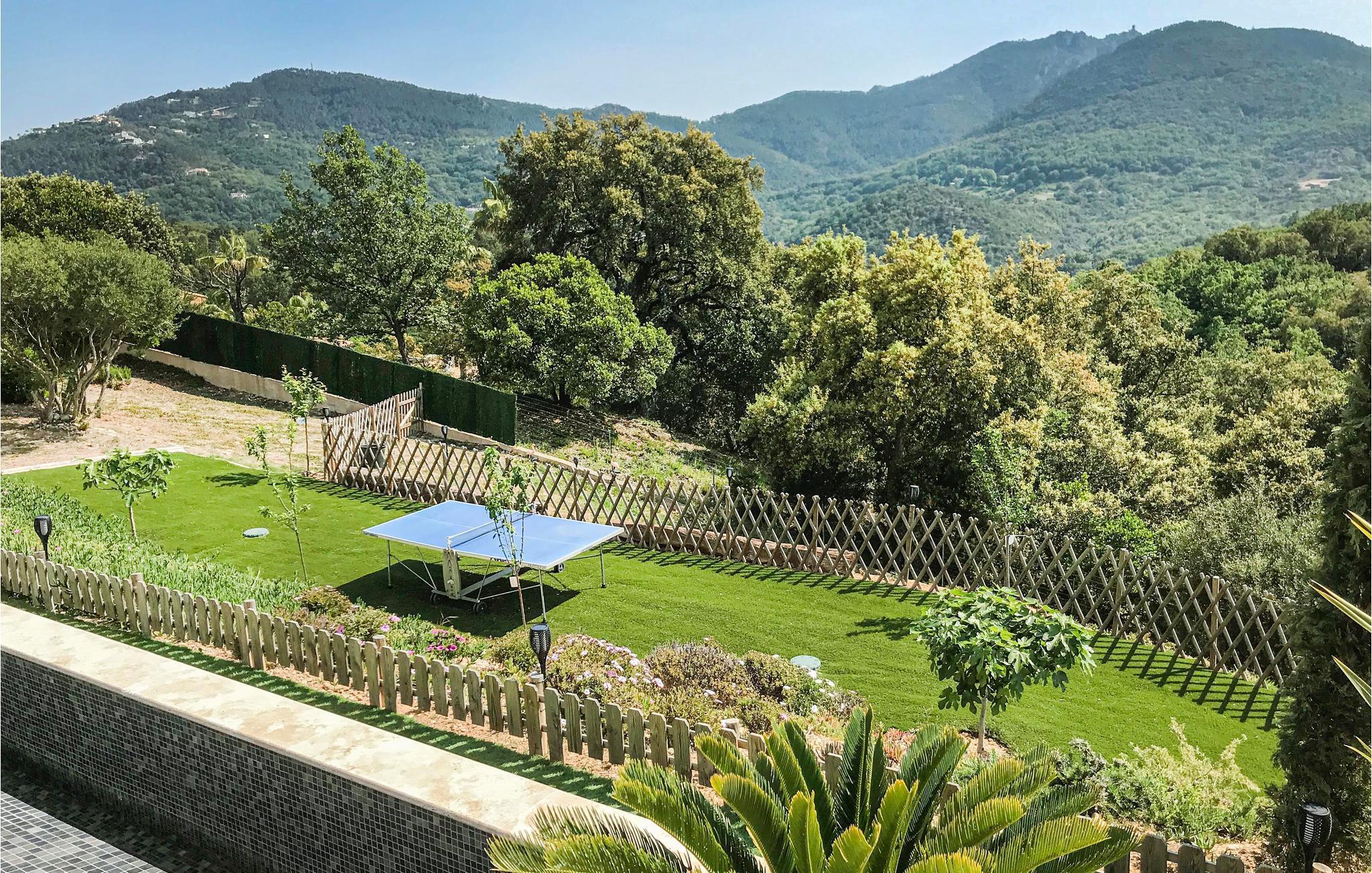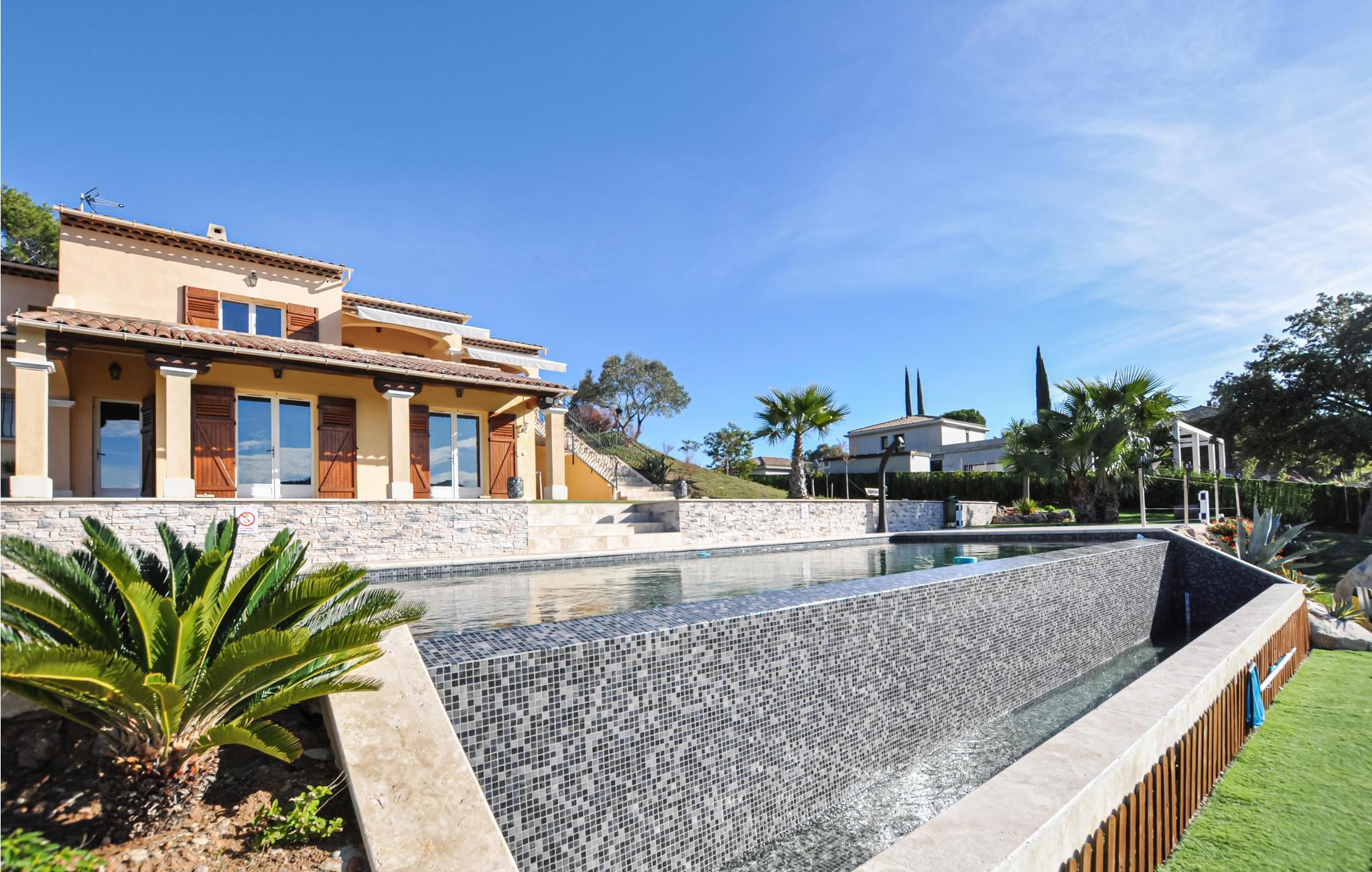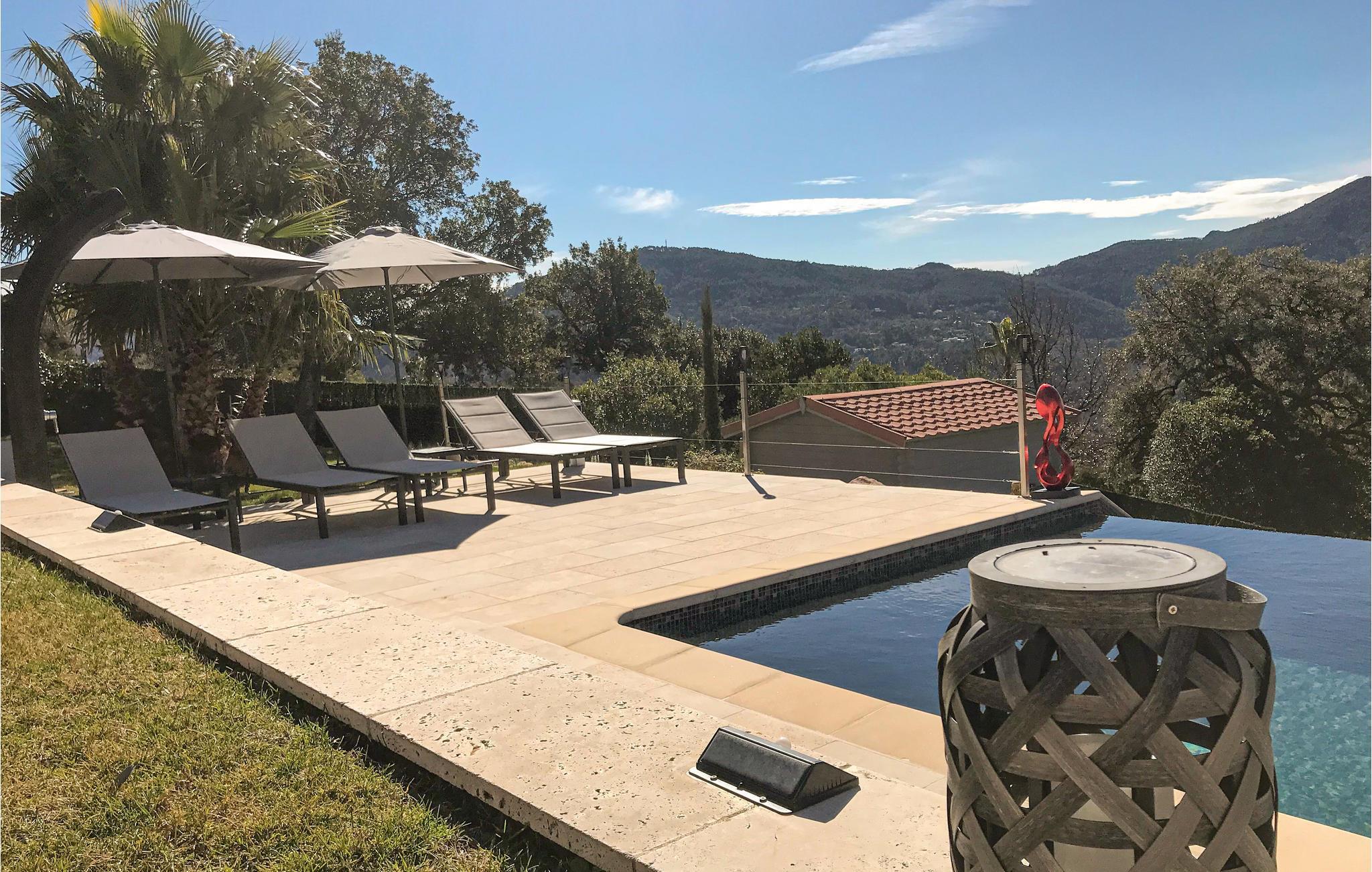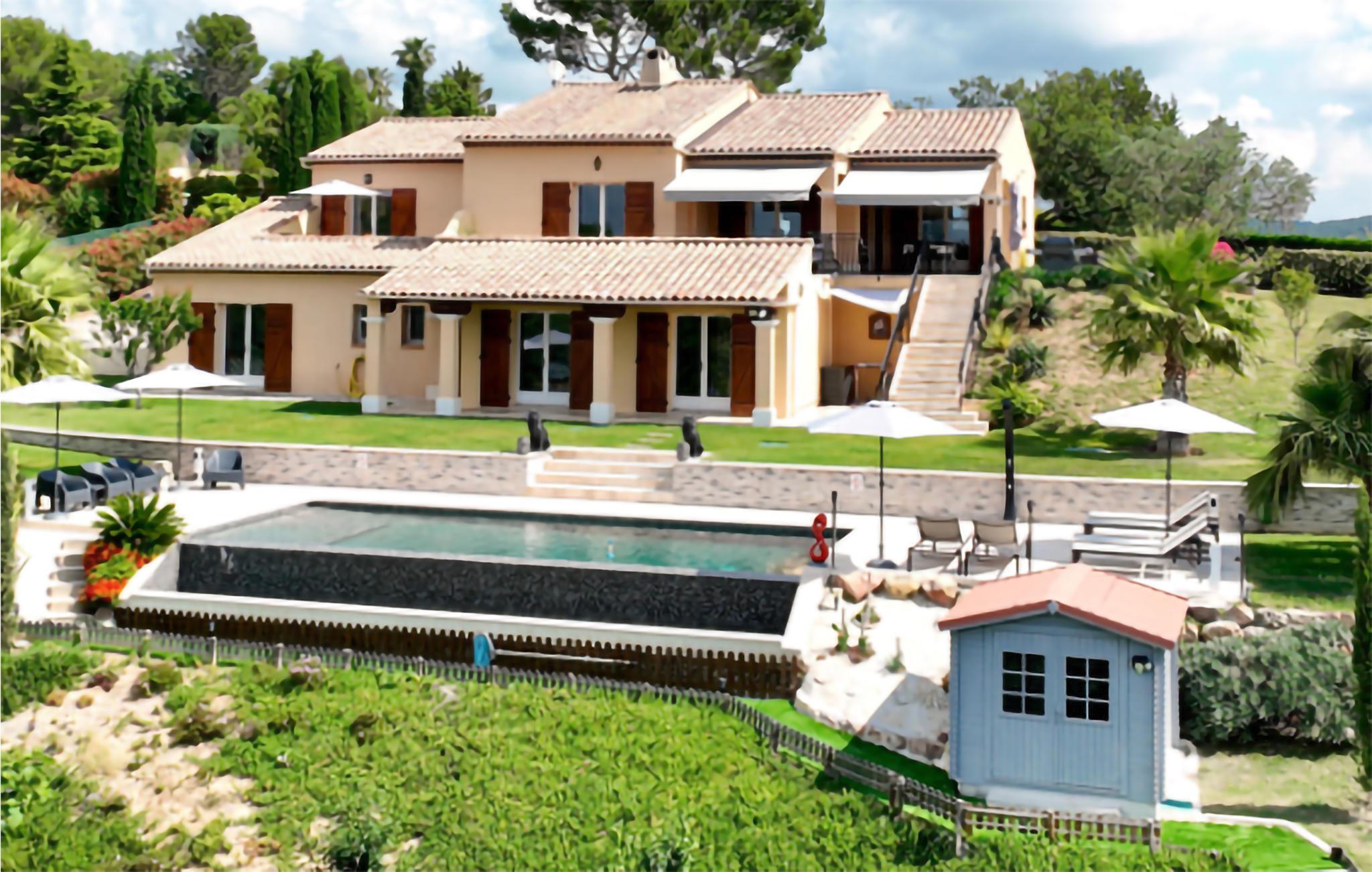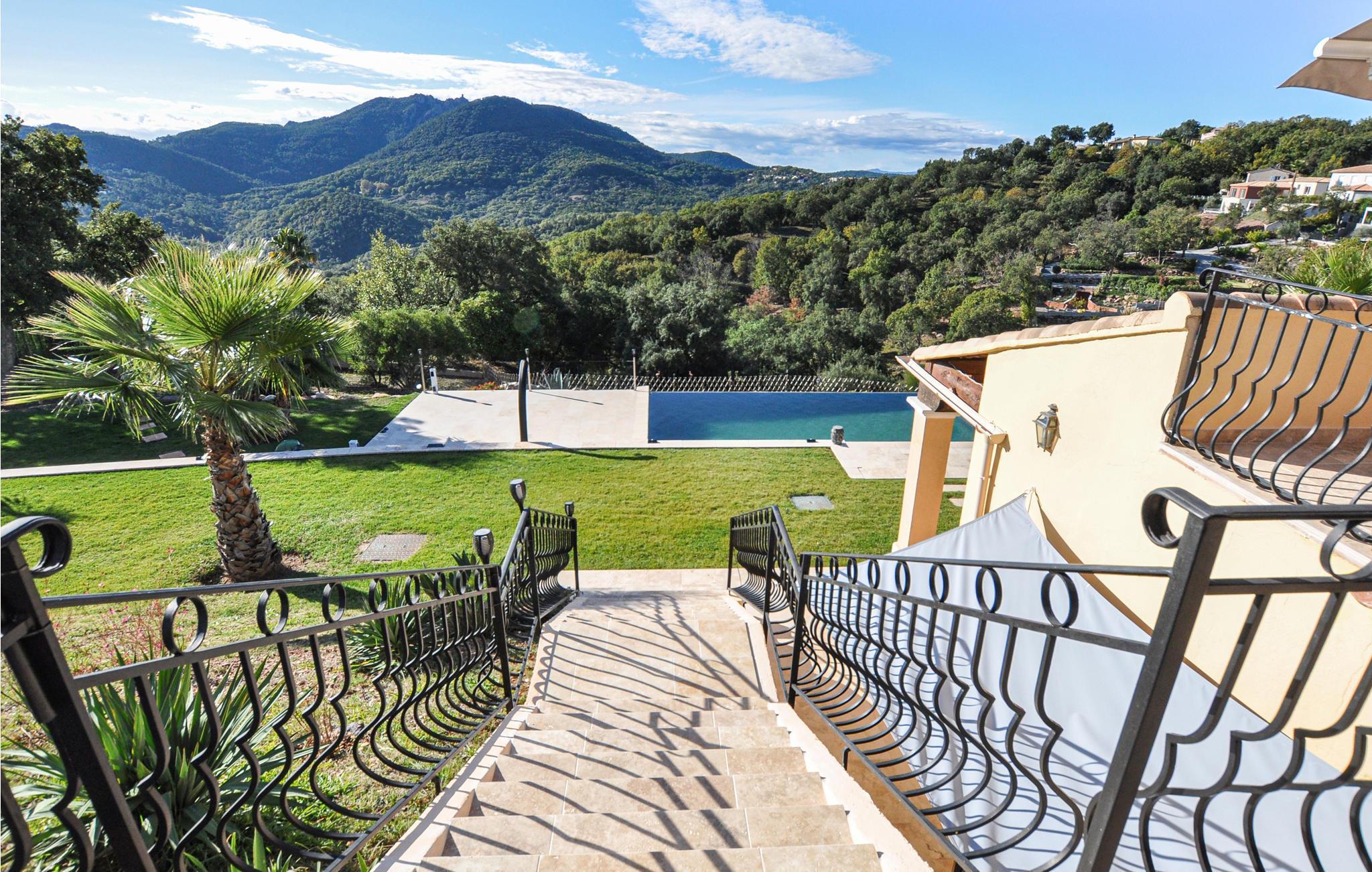 Hervorragende individuelle Ferienunterkunft mit Panoramablick und privatem Pool, auf einem wunderschönen eingezäunten Grundstück in einer herrlichen Wohngegend auf den Höhen des Dorfes Adrets gelegen, sehr ruhig, nur 13 km von Mandelieu la Napoule und seinen Sandstränden entfernt. Cannes, die Stadt des Kinos, ist nur 25 km entfernt. Mit einer Tischtennisplatte, Billard und Zugang zu zwei Tennisplätzen (900 m), nur 13 km vom Strand entfernt, ist diese schöne Villa der perfekte Ort für einen Urlaub mit der Familie oder mit Freunden unter der Sonne der Côte d'Azur.