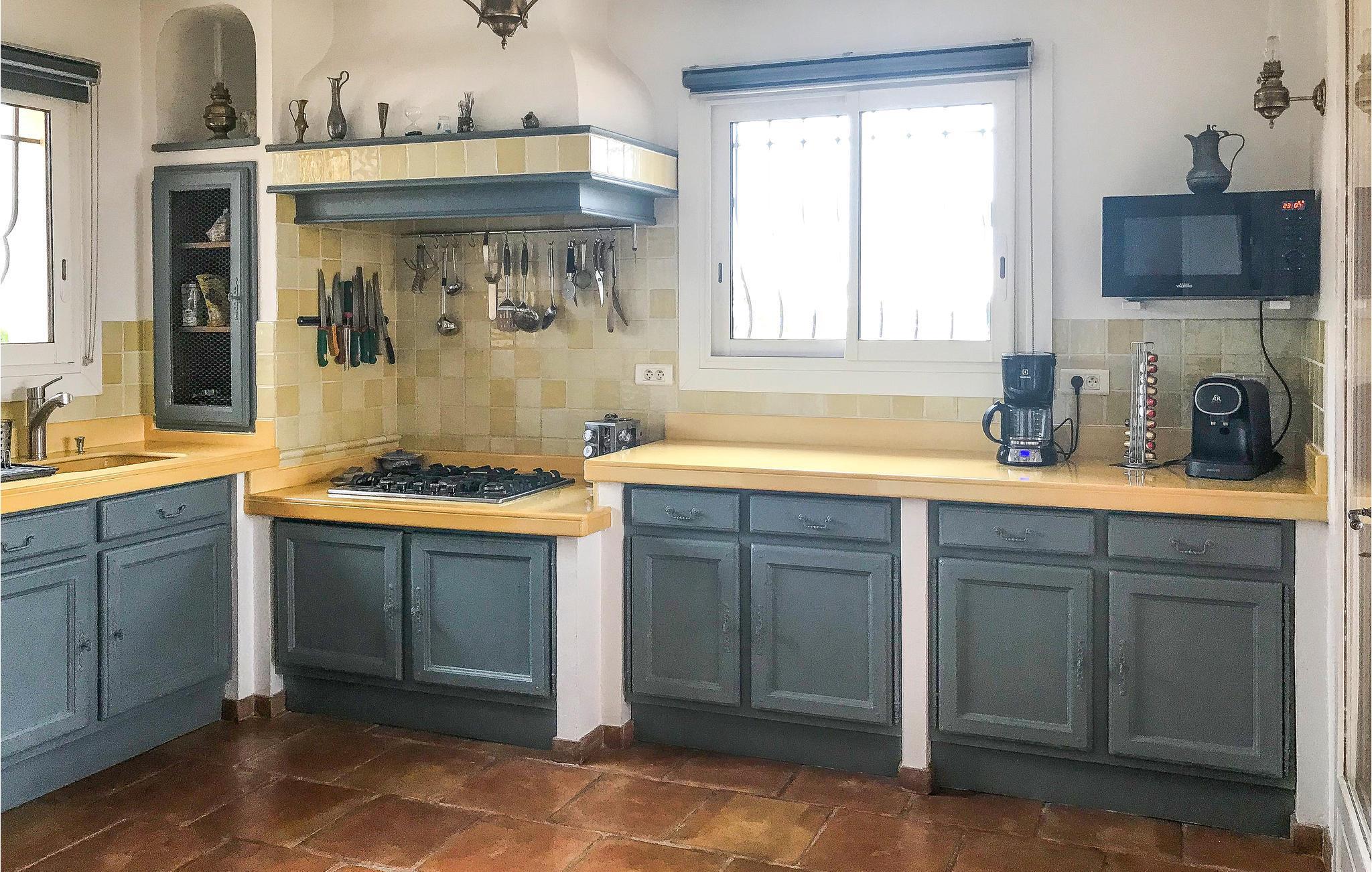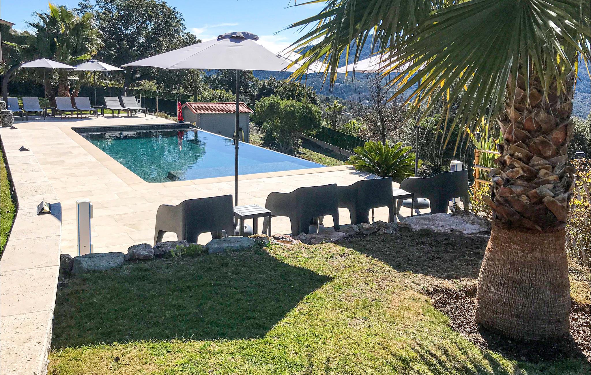 Das Haus ist geräumig, komfortabel und charmant sowie authentisch und modern eingerichtet. Es verfügt über große Innenräume im Erdgeschoss, einen Billardraum, ein Wohnzimmer mit Ess- und Wohnbereich, eine große separate Küche mit einer Arbeitsfläche aus Lavastein. Eines der Zimmer verfügt über eine grosse private Terrasse mit Liegestühlen. Alle Zimmer (mit Ausnahme eines der Schlafzimmer im Obergeschoss) haben einen direkten Zugang zum Garten und haben einen spektakulären Blick auf die Hügel und den Pool.