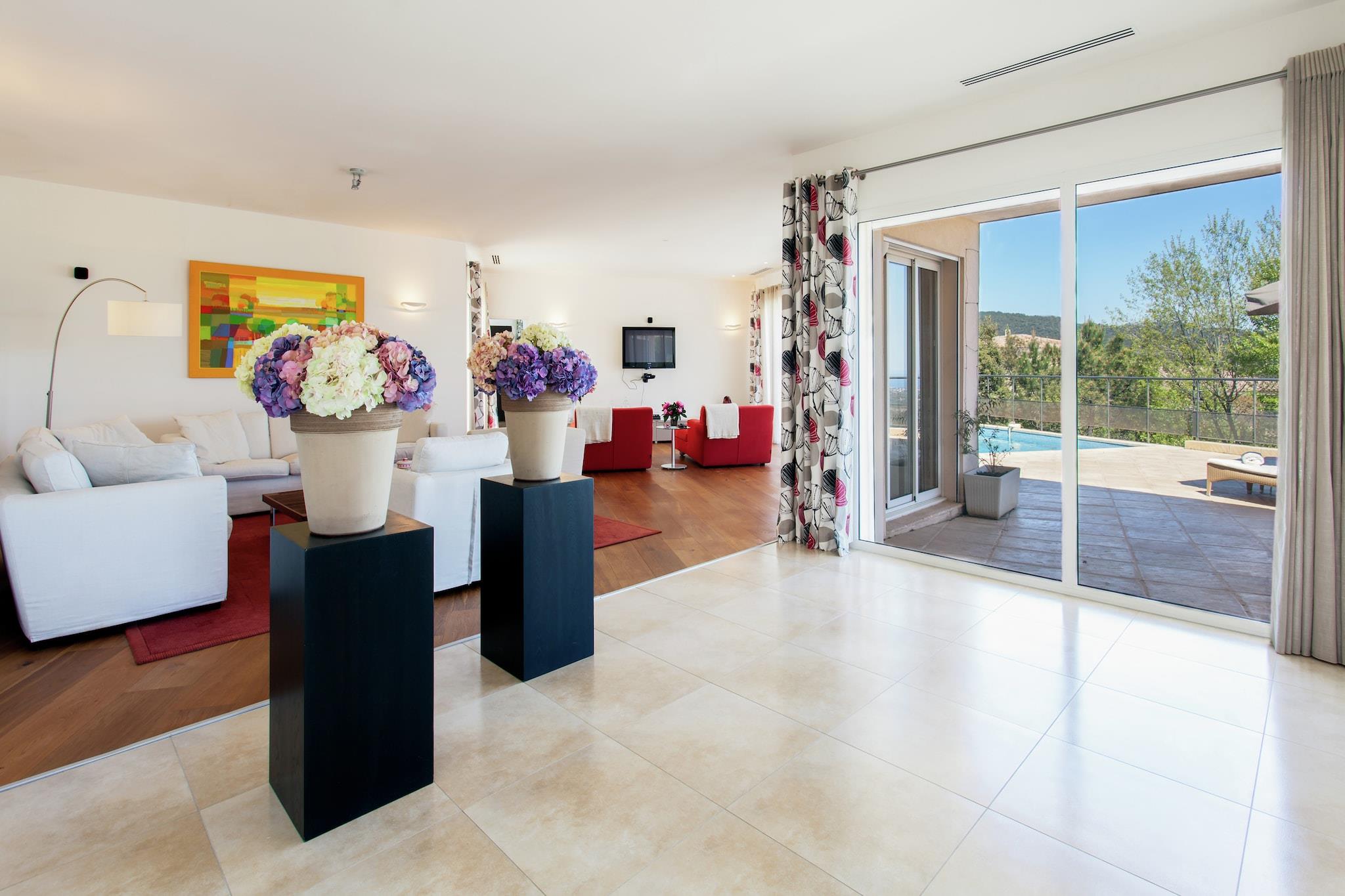 This luxurious 4-bedroom villa in Les Adrets-de-l'Estérel is ideal for large families or a group of 8 guests. The villa offers breathtaking views of the hills and proximity to the Bay of Cannes. The spacious terrace, private swimming pool, and relaxing loungers provide the perfect setting for sun-soaked holidays. The air-conditioned interiors ensure comfort, while the modern kitchen and Weber grill make mealtimes a joy. You're just 1 km from the vibrant town centre with supermarkets and shops. Tennis lovers will appreciate the nearby court only 500 m away, while water sports enthusiasts can head to the coast, 25 km away. Day trips to the artists' village of Mougins or the Picasso Museum in Antibes are highly recommended. The train station lies 19 km away, the motorway is 15 km, and the nearest airport is 45 km from the villa. The villa is family-friendly, offering a cot and high chair on request. Spend your evenings on the terrace, enjoying grilled meals while watching the sun dip below the hills. A table tennis table offers extra entertainment. Please note: a EURO100/week surcharge applies for bookings longer than 7 days, payable on-site.