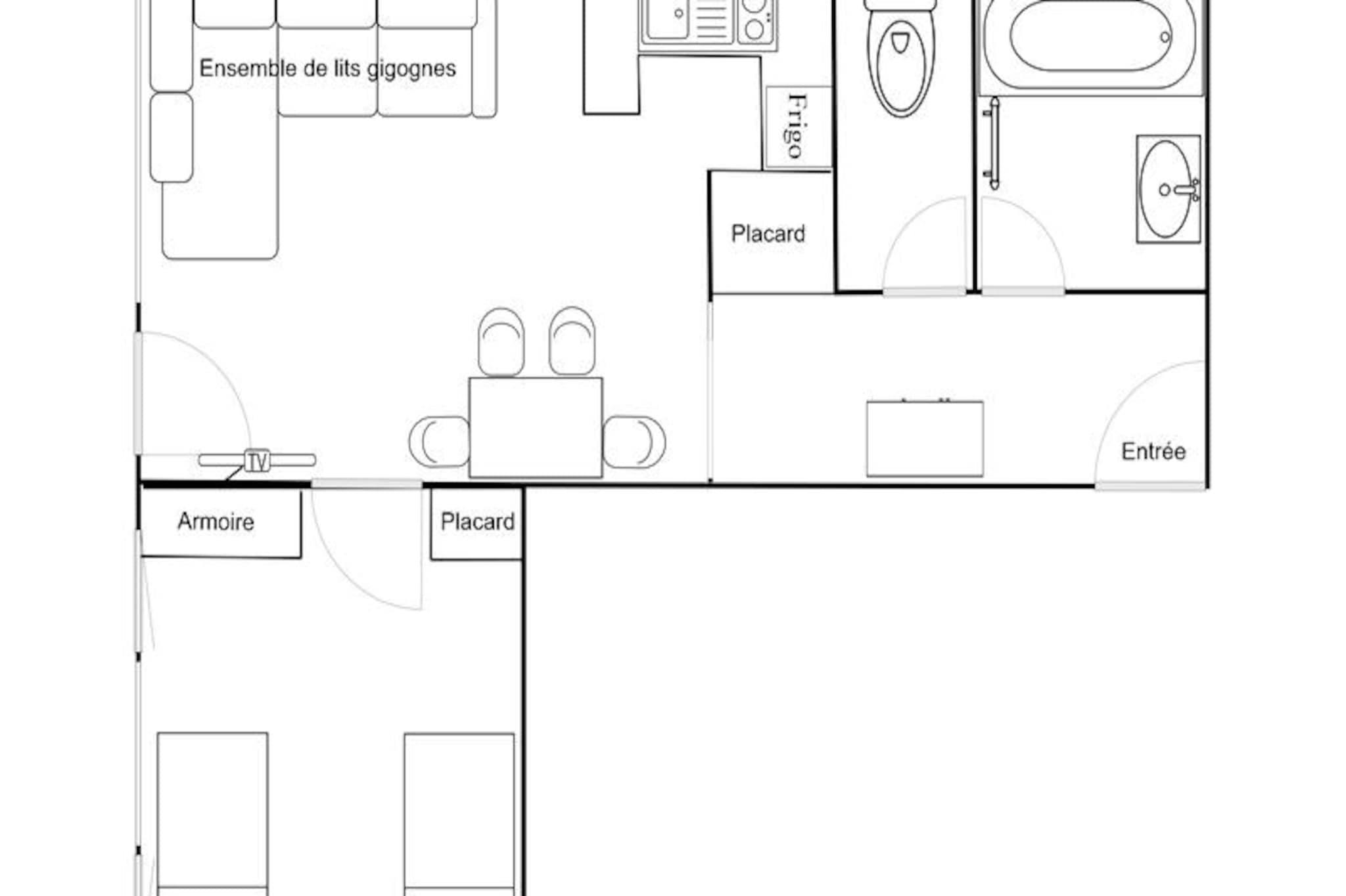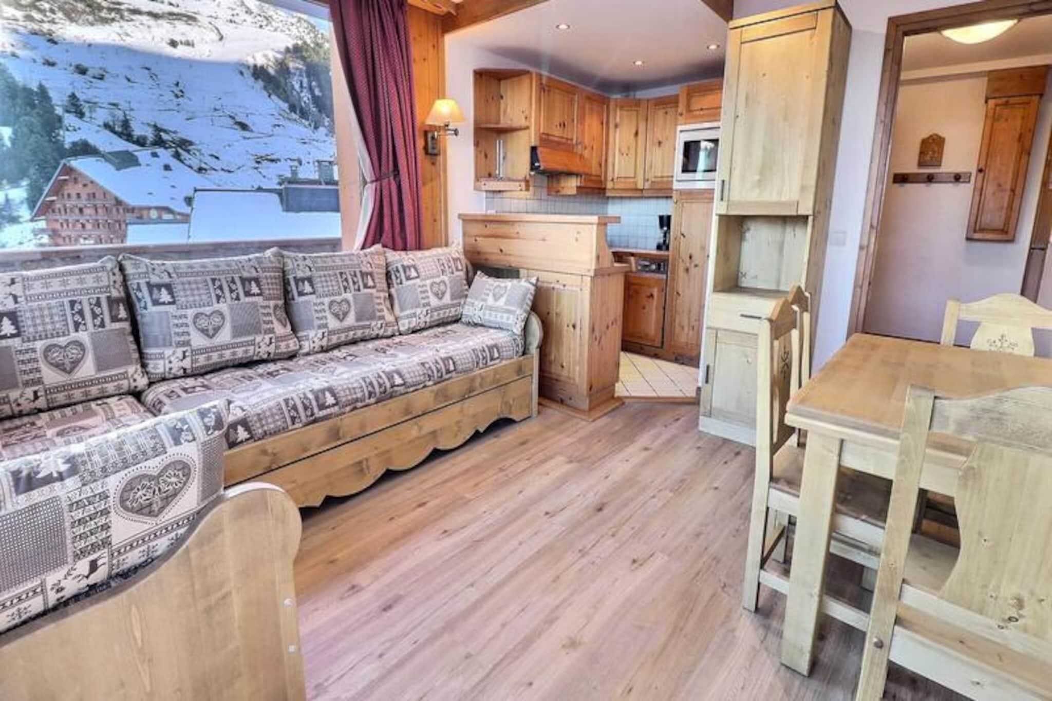 High above the enchanting valley of Méribel, this cozy apartment in the Plein Soleil residence offers a perfect alpine retreat for those seeking both adventure and relaxation. With its prime location directly on the slopes, you can step out of the ski lockers and glide straight into the pristine snow, making it an ideal choice for ski enthusiasts. The surrounding scenery, with its majestic peaks and serene forests, sets the tone for an unforgettable mountain escape. \n\nDesigned to accommodate up to four guests, the apartment features a thoughtfully arranged layout that balances comfort and practicality. The living room includes a set of trundle beds, while the bedroom offers two single beds, ensuring restful nights after active days. The kitchenette, equipped with modern appliances such as a combination microwave oven, ceramic hobs, and a dishwasher, is perfect for preparing hearty meals to enjoy in the cozy dining area. A north and east-facing balcony invites you to soak in the crisp alpine air and admire the stunning views. Additional amenities include a flat-screen TV and free Wi-Fi in the residence lounge, ensuring convenience and entertainment throughout your stay. \n\nThe Plein Soleil residence is ideally situated near the shops in the center of Mottaret, providing easy access to local dining and après-ski options. The Chalets cable car, operating from early morning until late evening, offers free access to the Hameau and Laitelet areas, making exploration effortless. Whether you’re skiing, hiking, or simply enjoying the charm of Méribel, everything you need is just steps away. \n\nThis delightful apartment combines the best of alpine living with modern comforts, creating a welcoming haven for your next mountain getaway. Experience the magic of Méribel and make memories that will last a lifetime.