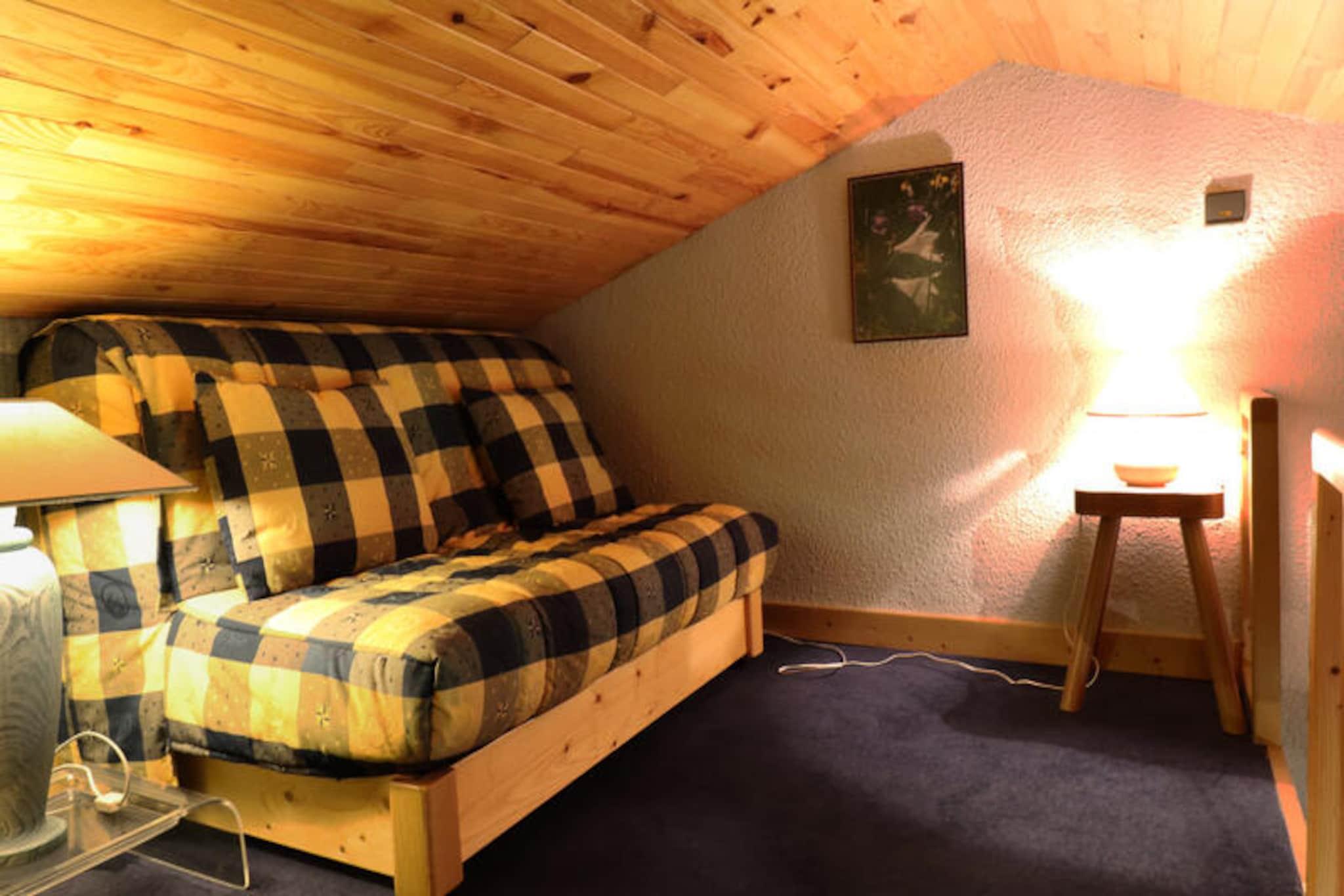 In the heart of the charming Le Hameau district in Le Laitelet, this delightful studio apartment offers a cozy alpine retreat with direct access to the slopes. Imagine starting your day by stepping out of the residence, crossing a quaint square, and gliding onto the gentle Perdrix green run that leads you to the main ski lifts. With the Chalets cable car operating from early morning until late at night, exploring the area is effortless and free of charge, making it an ideal base for your mountain adventures. \n\nThis 3-star rated studio, designed for up to four guests, combines comfort and functionality within its 27m² space (35m² weighted). The living area features a double sofa bed, while the mezzanine offers two single beds or an additional double sofa bed, ensuring flexibility for families or friends. A sliding door separates the dining area, creating a sense of privacy. The kitchenette is fully equipped with modern appliances, including a dishwasher, ceramic hobs, and a coffee maker, making it easy to prepare meals after a day on the slopes. The south-facing balcony, complete with outdoor seating, provides stunning views and a perfect spot to unwind in the crisp mountain air. \n\nThe residence is conveniently located at the foot of the slopes and close to shops, ensuring everything you need is within reach. Whether you're skiing in winter or hiking in summer, the picturesque surroundings of Le Laitelet offer endless opportunities for outdoor activities. With free Wi-Fi, a flat-screen TV, and a washer-dryer, this apartment ensures a comfortable and hassle-free stay. \n\nChoose this welcoming retreat for your next alpine getaway and create unforgettable memories in the heart of the French Alps. Whether you're seeking adventure or relaxation, the Creux de l'Ours residence offers the perfect balance of convenience, charm, and breathtaking scenery.