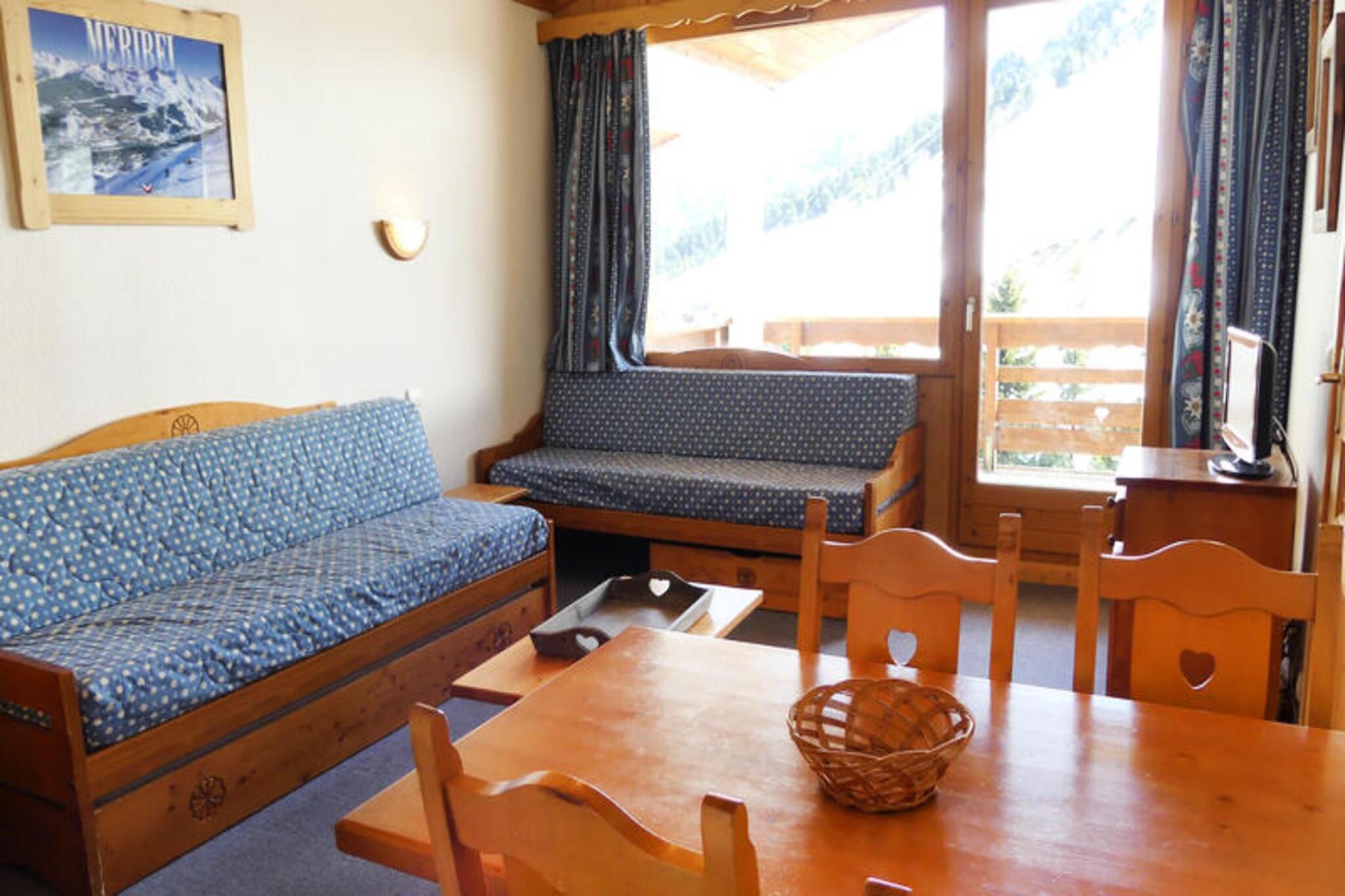 High above the enchanting valley of Méribel, this charming apartment in the Plein Soleil residence offers a ski-in, ski-out experience that places you at the heart of alpine adventure. Imagine waking up to the sunlit slopes of Mottaret, stepping out onto your south-facing balcony, and breathing in the crisp mountain air before heading straight to the pistes. With direct access to the Chalets cable car, operating from early morning until late evening, exploring the Hameau and Laitelet areas has never been easier. Whether you're here for winter sports or summer hikes, this location is a gateway to the best of the French Alps. \n\nDesigned for comfort and convenience, the apartment accommodates up to five guests across two thoughtfully arranged rooms. The living room features a cozy sofa bed and trundle beds, while the bedroom offers two single beds, ensuring restful nights after active days. The kitchen, equipped with modern appliances including a microwave oven, refrigerator, dishwasher, and electric hobs, invites you to prepare hearty meals to enjoy with loved ones. A flat-screen TV and free Wi-Fi in the residence’s common areas add to the home-like atmosphere, while the south-facing balcony provides a serene spot to unwind with panoramic views of the surrounding peaks. \n\nThe Plein Soleil residence is perfectly situated near the slopes and the vibrant center of Mottaret, where you'll find shops, restaurants, and après-ski activities to complete your alpine experience. The free Chalets cable car ensures seamless access to nearby areas, making it ideal for exploring the region’s breathtaking trails and landscapes. Whether you're skiing down powdery slopes or hiking through flower-filled meadows, every moment here is steeped in the beauty of the mountains. \n\nFor those seeking a blend of adventure and relaxation, this apartment is your perfect retreat. With its unbeatable location, cozy amenities, and stunning views, it promises a holiday filled with unforgettable memories in the heart of Méribel.