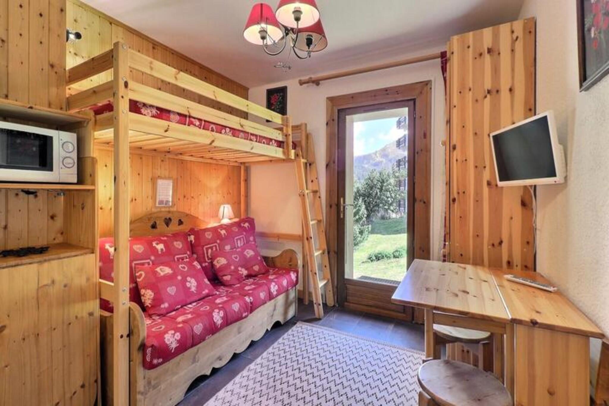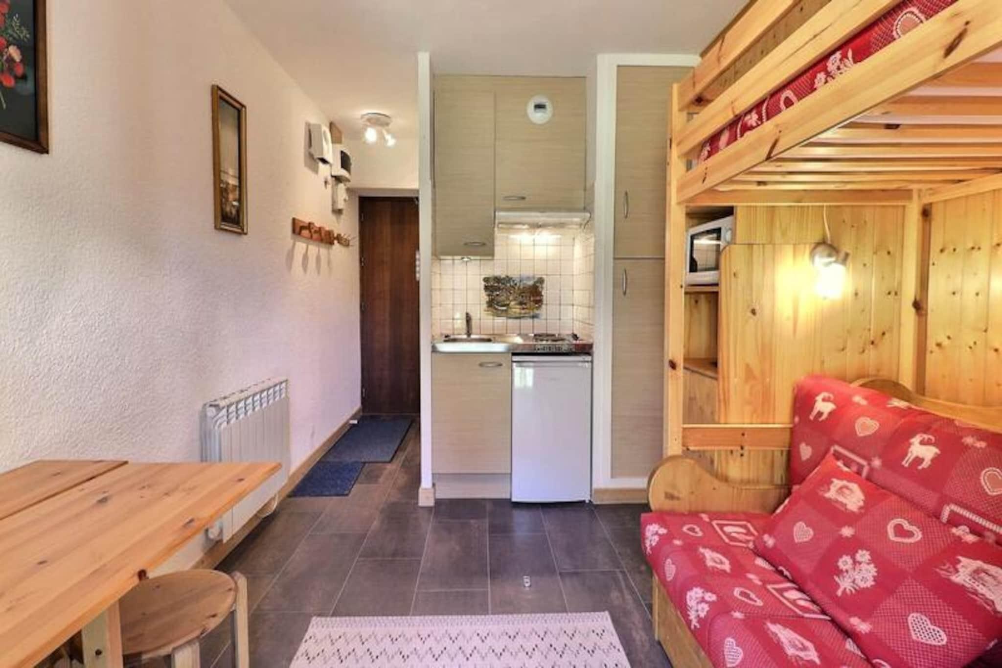 In the heart of Méribel-Mottaret, where the snow-dusted peaks meet the vibrant alpine lifestyle, this charming studio offers a cozy retreat for two. Located on the ground floor of the Erines residence, it provides direct ski-in access, making it a perfect choice for ski enthusiasts eager to hit the slopes right from their doorstep. Imagine waking up to the crisp mountain air, stepping outside, and gliding onto the green Perdrix run that leads you to the main ski lift departure point. The convenience of this location ensures every moment of your holiday is spent enjoying the beauty of the French Alps. Despite its compact size of 14m², the studio is thoughtfully designed to maximize comfort and functionality. The living area features a double sofa bed and a single mezzanine bed, offering a snug and inviting space to relax after a day of alpine adventures. The kitchenette is equipped with essential appliances, including a refrigerator, microwave, and coffee makers, allowing you to prepare simple meals and savor warm drinks. A flat-screen TV adds a touch of modern comfort, while the south-facing orientation fills the space with natural light. The Erines residence is ideally situated between two shopping centers, with the Mottaret center just 500 meters away, accessible via stairs or a convenient cable car. Nearby, you’ll find a variety of restaurants, shops, and après-ski options to enhance your stay. Whether you’re exploring the slopes, indulging in local cuisine, or simply soaking in the serene alpine atmosphere, this studio offers a base that combines practicality with charm. Perfect for couples seeking an intimate mountain getaway, this studio invites you to experience the magic of Méribel-Mottaret, where every day is an adventure and every evening is a chance to unwind in the heart of the Alps.