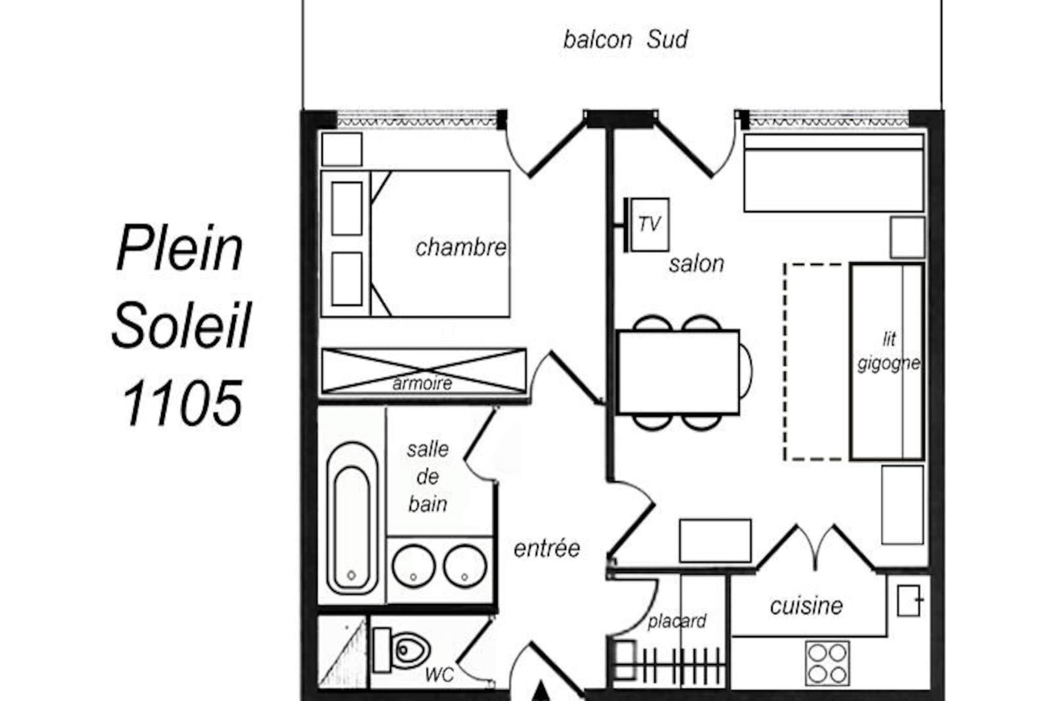 High above the picturesque slopes of Méribel, this charming apartment in the Plein Soleil residence offers a perfect blend of alpine elegance and modern comfort. Wake up to the sunlit beauty of the French Alps from your south-facing balcony, where the crisp mountain air and breathtaking views set the tone for a day of adventure. Whether you're here for the thrill of skiing or the serenity of nature, this residence places you in the heart of it all. \n\nDesigned to accommodate up to five guests, the apartment boasts a cozy living room with trundle beds and a sofa bed, along with a separate bedroom featuring a comfortable double bed. The well-equipped kitchenette includes everything you need to prepare hearty meals after a day on the slopes, from a combination microwave oven to a dishwasher and coffee maker. Modern amenities such as free Wi-Fi and a flat-screen TV ensure a relaxing stay, while the charming decor reflects the warm ambiance of Méribel's alpine heritage. \n\nStep outside and find yourself directly on the slopes, with ski lockers providing seamless access to your winter adventures. The Chalets cable car, just moments away, offers free transport to the Hameau and Laitelet areas, making it easy to explore the expansive ski domain. Nearby, you'll discover a variety of shops, restaurants, and après-ski options to complete your alpine experience. \n\nWhether you're seeking thrilling descents, peaceful hikes, or simply a cozy retreat in the mountains, this Méribel apartment is your gateway to unforgettable memories in the French Alps.