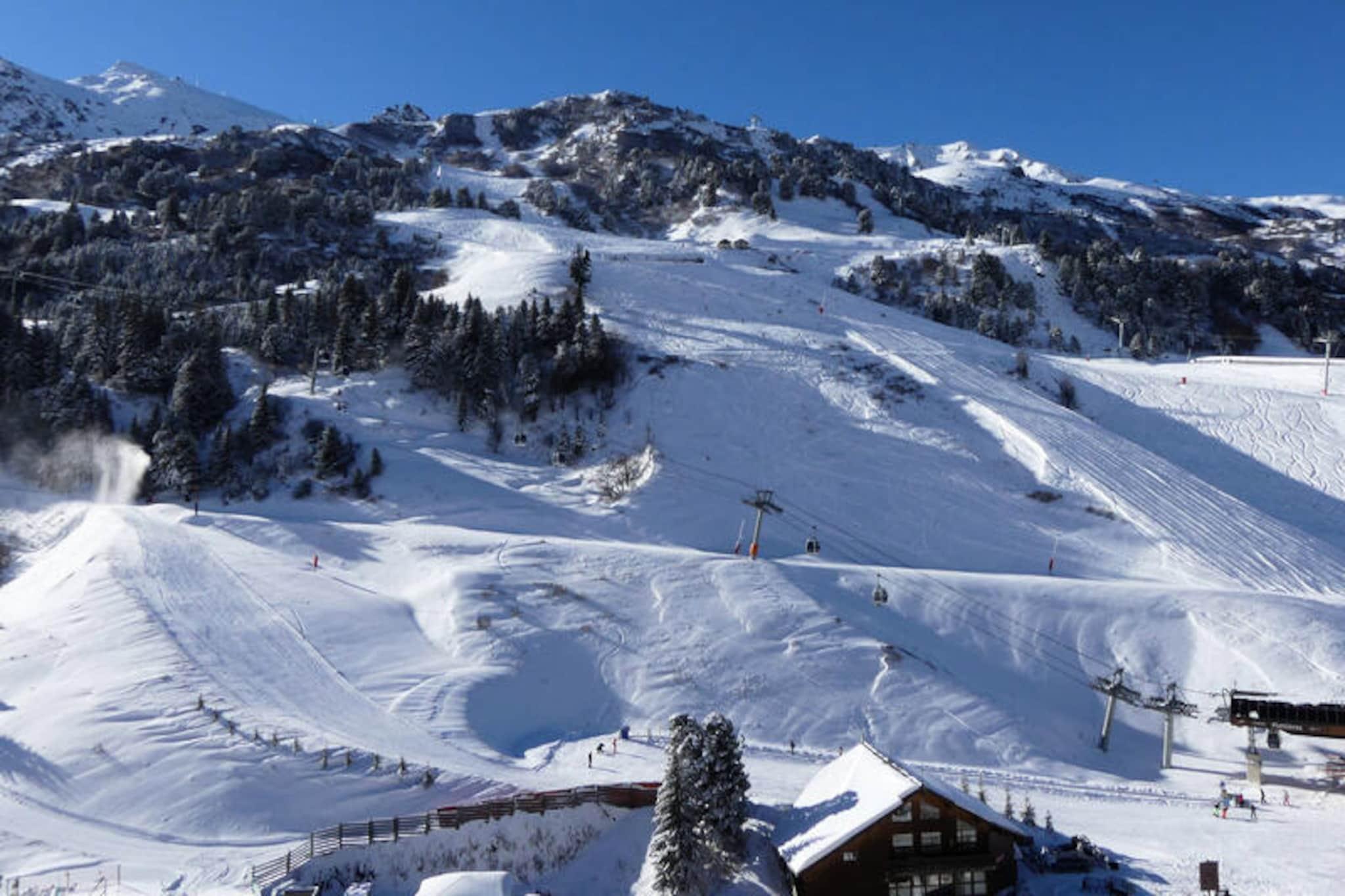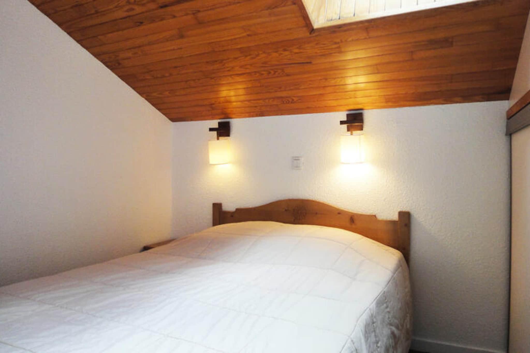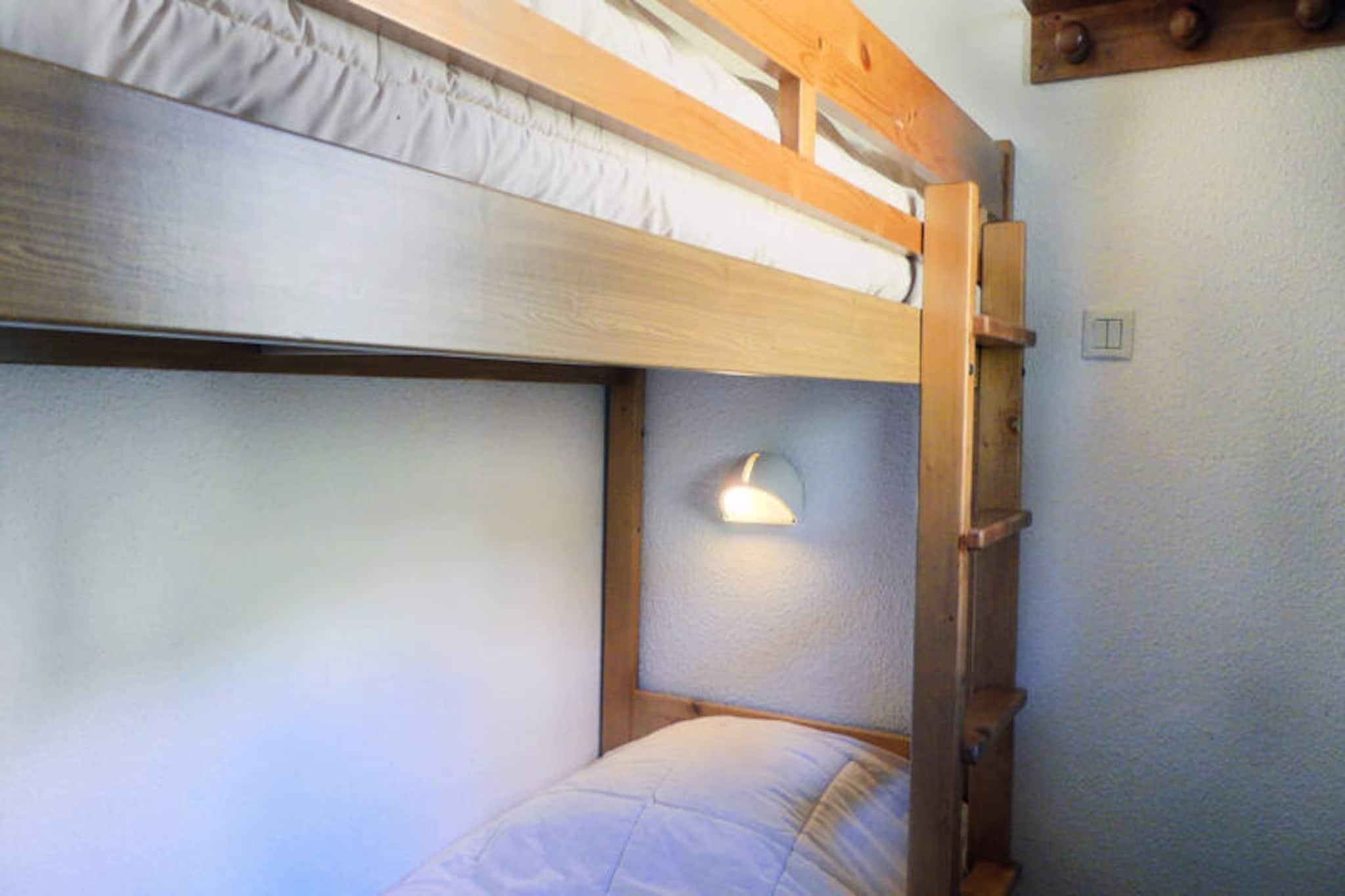 High above the bustling Chatelet shopping center, this charming alpine duplex invites you to experience the magic of Méribel in the heart of the French Alps. With its prime location at the foot of the slopes, your winter adventure begins just steps away. Whether you're a seasoned skier or a family seeking snowy fun, the nearby ESF meeting point and Piou-Piou kindergarten make this residence ideal for all ages. As the sun sets, the west-facing balcony offers a serene retreat to soak in the mountain views and reflect on the day's adventures. \n\nDesigned to comfortably host up to six guests, this cozy two-room duplex features a thoughtful layout that blends practicality with alpine charm. The living room includes a sofa bed and trundle beds, while a separate cabin provides bunk beds for younger guests. Upstairs, a private bedroom with a double bed ensures restful nights. The kitchenette is equipped with modern appliances, including a microwave with grill, refrigerator, dishwasher, and ceramic hobs, making meal preparation a breeze. A flat-screen TV adds to the comfort, while the steep staircase leading to the upper floor adds a touch of rustic character. \n\nBeyond the residence, the vibrant Chatelet area offers convenient access to shops, restaurants, and a shuttle bus stop just 100 meters away. In winter, the slopes are your playground, while summer transforms the region into a haven for hikers and nature enthusiasts. Explore the breathtaking trails, discover local wildlife, or simply relax in the alpine air. \n\nWhether you're seeking thrilling descents or tranquil moments, this residence is your gateway to unforgettable memories in Méribel. Let the charm of the French Alps captivate your heart and create a holiday experience you'll cherish forever.