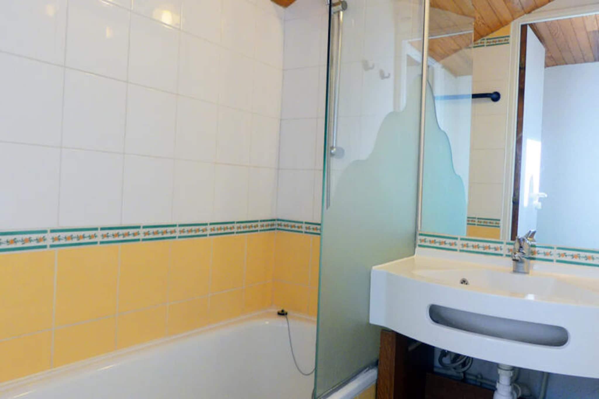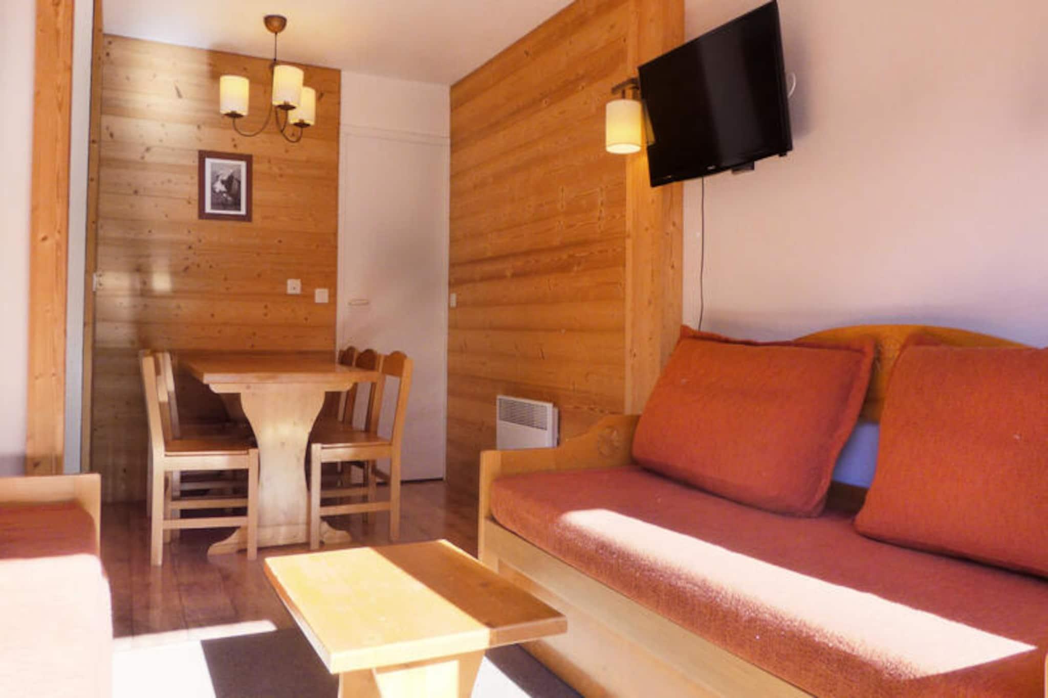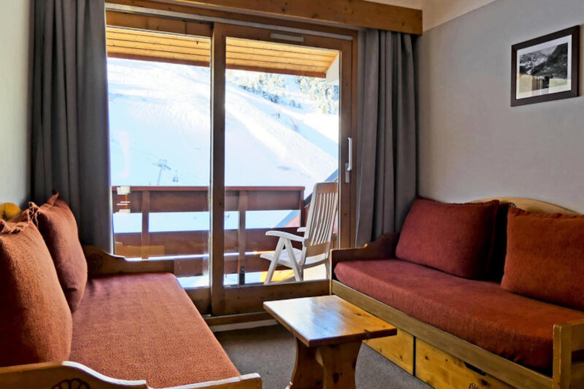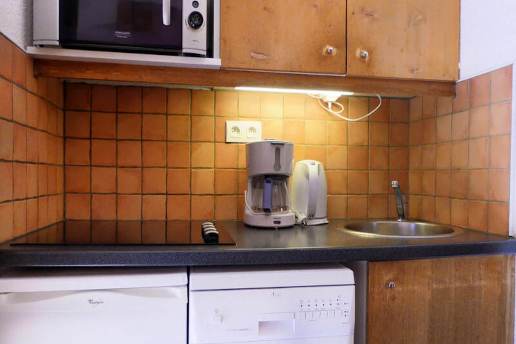 High above the bustling Chatelet shopping center, this charming alpine duplex invites you to experience the magic of Méribel in the heart of the French Alps. With its prime location at the foot of the slopes, your winter adventure begins just steps away. Whether you're a seasoned skier or a family seeking snowy fun, the nearby ESF meeting point and Piou-Piou kindergarten make this residence ideal for all ages. As the sun sets, the west-facing balcony offers a serene retreat to soak in the mountain views and reflect on the day's adventures. \n\nDesigned to comfortably host up to six guests, this cozy two-room duplex features a thoughtful layout that blends practicality with alpine charm. The living room includes a sofa bed and trundle beds, while a separate cabin provides bunk beds for younger guests. Upstairs, a private bedroom with a double bed ensures restful nights. The kitchenette is equipped with modern appliances, including a microwave with grill, refrigerator, dishwasher, and ceramic hobs, making meal preparation a breeze. A flat-screen TV adds to the comfort, while the steep staircase leading to the upper floor adds a touch of rustic character. \n\nBeyond the residence, the vibrant Chatelet area offers convenient access to shops, restaurants, and a shuttle bus stop just 100 meters away. In winter, the slopes are your playground, while summer transforms the region into a haven for hikers and nature enthusiasts. Explore the breathtaking trails, discover local wildlife, or simply relax in the alpine air. \n\nWhether you're seeking thrilling descents or tranquil moments, this residence is your gateway to unforgettable memories in Méribel. Let the charm of the French Alps captivate your heart and create a holiday experience you'll cherish forever.