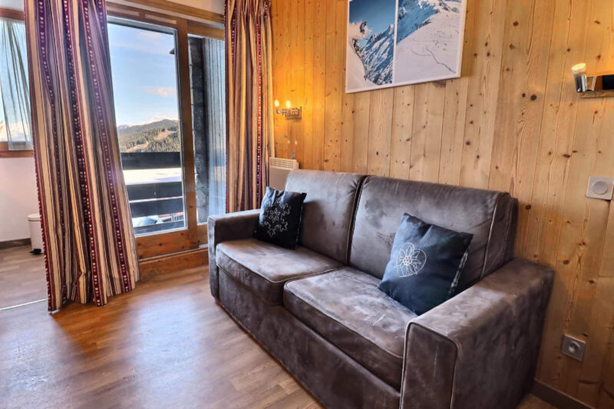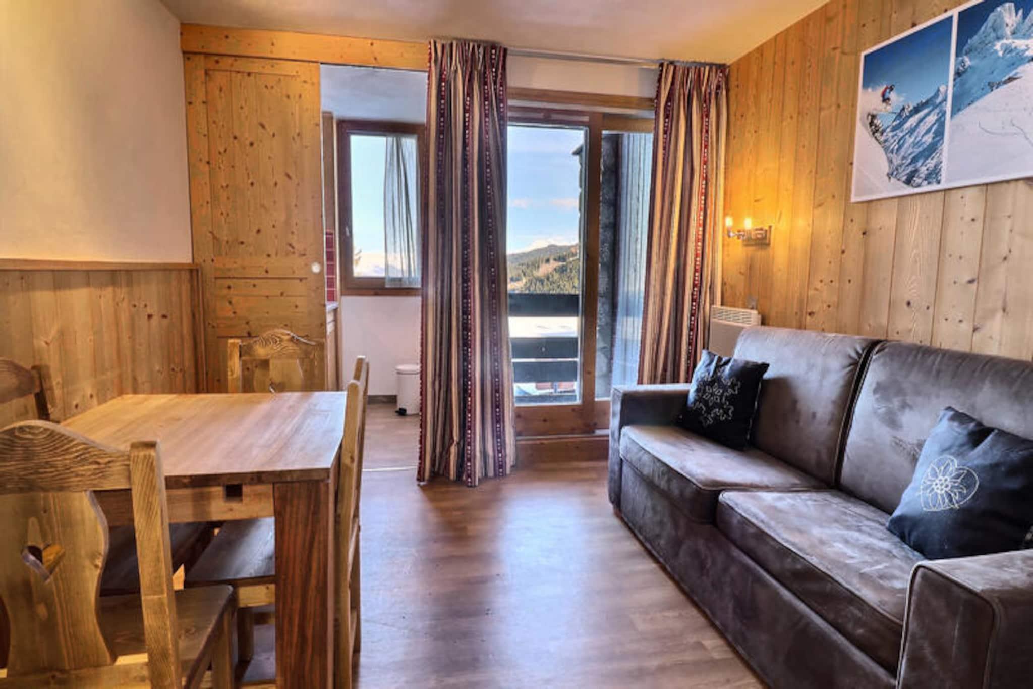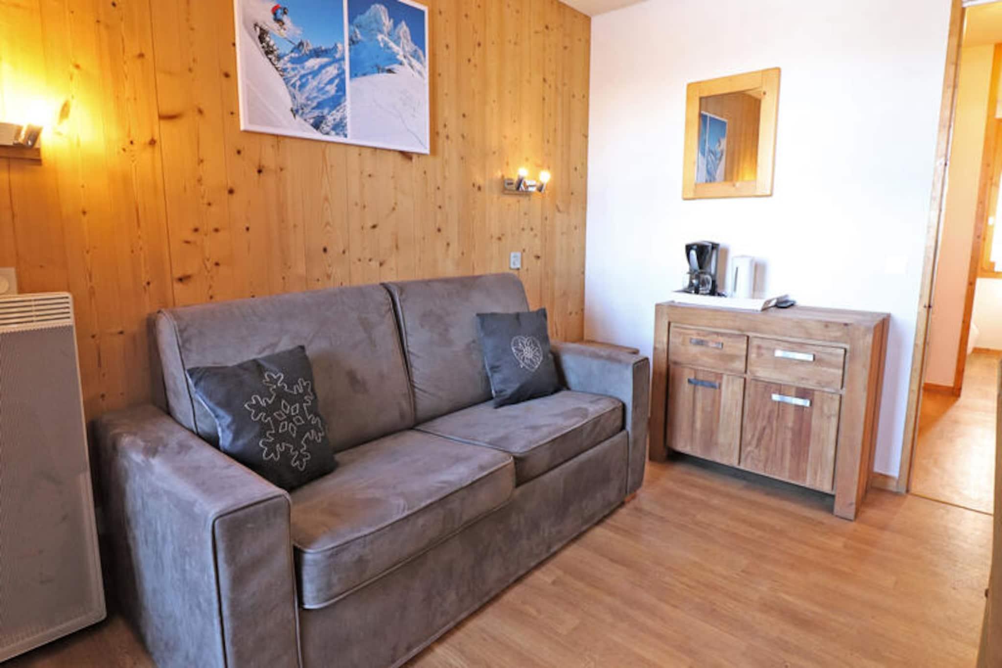 In the serene heart of Le Hameau, Laitelet, this charming apartment offers a cozy alpine retreat with unparalleled ski-in, ski-out convenience. Just steps from the slopes, the Creux de l'Ours residence ensures that your mountain adventures begin the moment you leave the ski lockers. With the green run leading directly to the main ski lift departure point, you’ll enjoy seamless access to the snowy wonders of the French Alps. The Chalets cable car, operating from early morning to late evening, provides effortless connectivity to the surrounding areas, adding to the ease of your stay. This thoughtfully designed 27m² apartment is perfect for up to four guests, offering a warm and inviting atmosphere. The living room features a comfortable sofa bed for two, while the separate bedroom is equipped with two single beds, ensuring restful nights after active days. The kitchenette, cleverly separated by a sliding door, is fully equipped with modern appliances, including a combination microwave/oven, refrigerator, ceramic hobs, and a dishwasher, making it easy to prepare hearty meals. A north-facing balcony invites you to unwind and take in the crisp mountain air. Additional amenities include a flat-screen TV, free Wi-Fi (subject to availability), and a separate bathroom and toilet for added convenience. Beyond the apartment, the location is a skier’s paradise. With shops and essential facilities just a short walk away, you’ll have everything you need at your fingertips. Whether you’re exploring the slopes, enjoying après-ski activities, or simply soaking in the tranquil alpine ambiance, this residence offers the perfect base for your mountain escape. Pets are welcome, making it an ideal choice for families or small groups seeking a home-away-from-home in the French Alps. Experience the magic of Le Hameau and create unforgettable memories in this delightful alpine haven, where every detail is designed to enhance your stay.