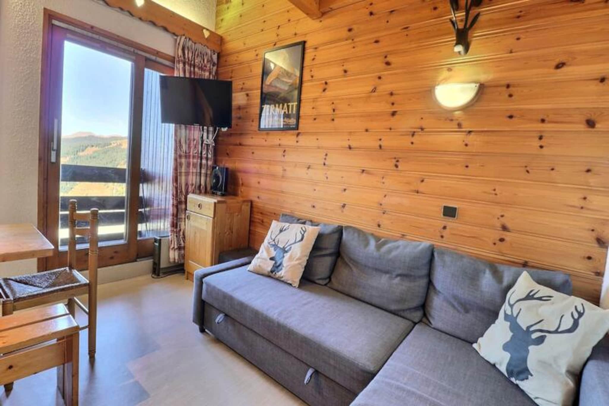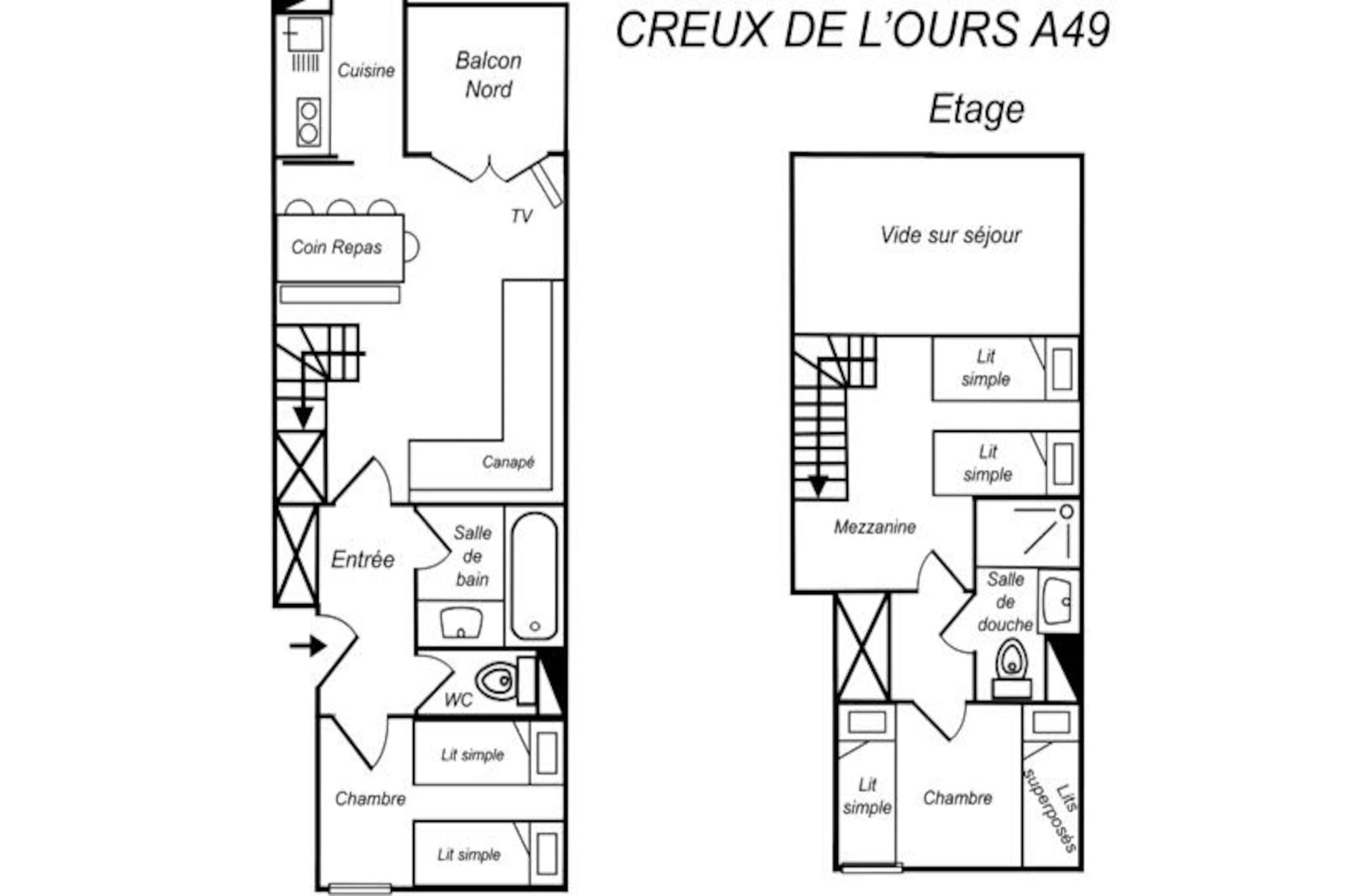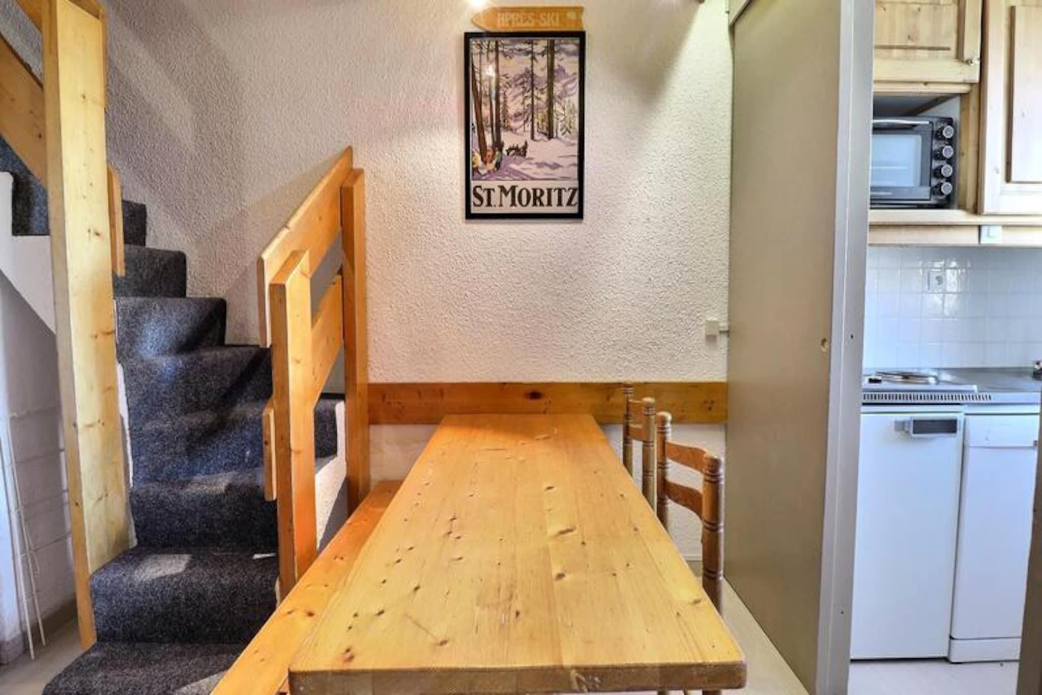 High in the serene alpine village of Le Laitelet, this charming duplex apartment offers a cozy retreat for those seeking the perfect mountain getaway. With breathtaking views of snow-dusted peaks and direct access to the slopes, it’s an ideal haven for skiers and nature enthusiasts alike. The Creux de l'Ours residence is nestled in the heart of Le Hameau, providing a peaceful yet convenient location for your next adventure. Imagine stepping out of the ski locker room, crossing a quaint square, and gliding onto the green run that leads to the main ski lift departure point. The Chalets cable car, operating from early morning until late evening, ensures seamless access to the surrounding areas. Inside, the apartment is thoughtfully designed to accommodate up to six guests across its two levels. The living room features a comfortable corner sofa bed, perfect for relaxing after a day on the slopes. The separate kitchenette is fully equipped with modern appliances, including an oven, refrigerator, dishwasher, and coffee makers, making it easy to prepare hearty meals. Upstairs, the mezzanine and additional bedroom provide flexible sleeping arrangements, including single beds and a cozy bunk bed setup. A flat-screen TV and free Wi-Fi (subject to availability) add to the convenience, while the north-facing balcony offers a tranquil spot to take in the crisp mountain air. Beyond the residence, Le Laitelet boasts a variety of shops and amenities within walking distance. Whether you’re exploring the charming village, enjoying après-ski activities, or venturing into the wider Méribel ski area, everything you need is close at hand. In the summer months, the region transforms into a haven for hikers and mountain bikers, with trails that wind through lush alpine meadows and forests. Whether you’re here for the thrill of the slopes or the tranquility of the mountains, this delightful apartment in Creux de l'Ours promises an unforgettable alpine escape.