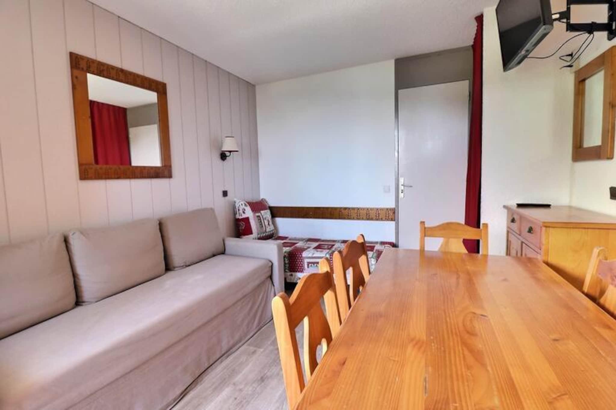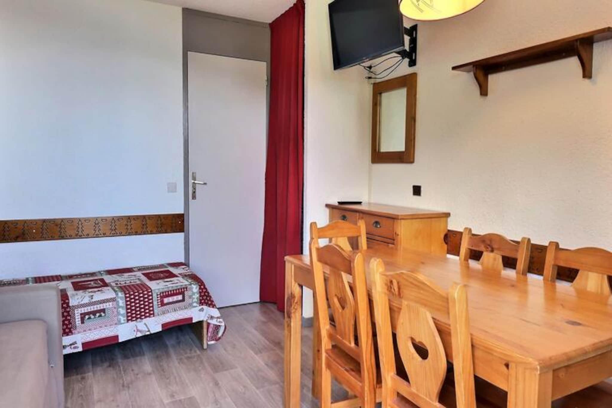 In the charming alpine village of Laitelet, the Creux de l'Ours residence offers a cozy retreat for those seeking the perfect ski getaway. Imagine waking up to the crisp mountain air, stepping out onto your private north-facing balcony, and gazing at the serene snow-covered slopes. With its unbeatable location at the foot of the pistes, this residence ensures you can start your skiing adventure in moments. Simply head to the ski lockers, cross the square, and glide onto the green run leading to the main ski lift departure point. Convenience meets tranquility in this idyllic setting. This thoughtfully designed apartment accommodates up to four guests across its 27m² space. The living room features a set of trundle beds and a single bed, while the separate bedroom offers two comfortable single beds, making it ideal for families or small groups. The kitchenette, equipped with a microwave/grill, refrigerator, ceramic hobs, and essential appliances like a toaster and coffee maker, allows you to prepare hearty meals after a day on the slopes. A flat-screen TV and free Wi-Fi (subject to availability) add to the modern comforts, while the separate bathroom and toilet ensure practicality. Please note, this is a non-smoking, pet-free property. Laitelet is not just about skiing; the area boasts a vibrant atmosphere with shops and amenities just steps away. The Chalets cable car, operating from early morning to late evening, provides free and easy access to explore the surrounding Hameau and Laitelet areas. Whether you're here for the thrill of skiing, the charm of the alpine village, or the convenience of doorstep amenities, the Creux de l'Ours residence promises a memorable mountain escape. Let the magic of the French Alps captivate you as you create unforgettable memories in this serene retreat.