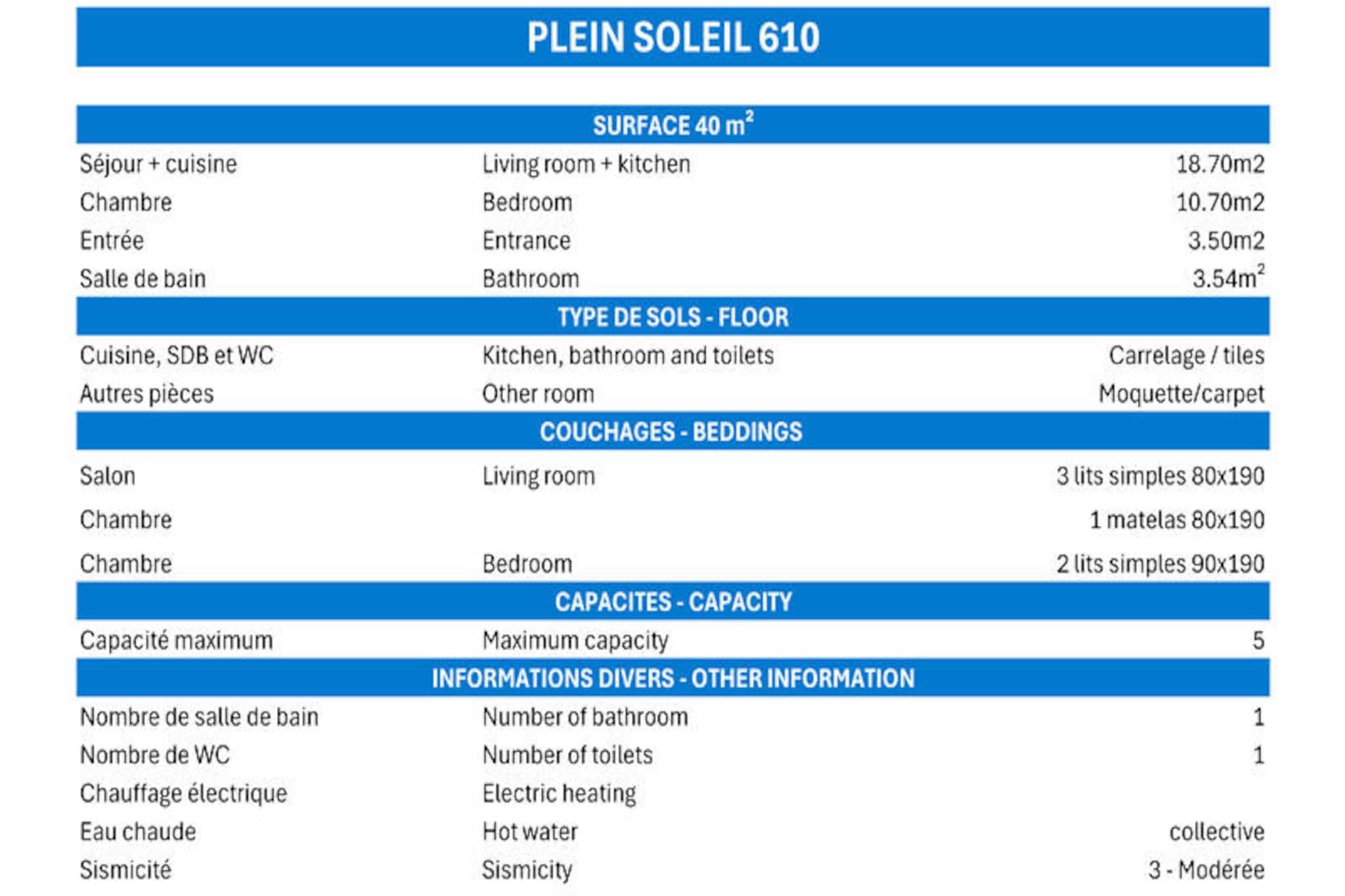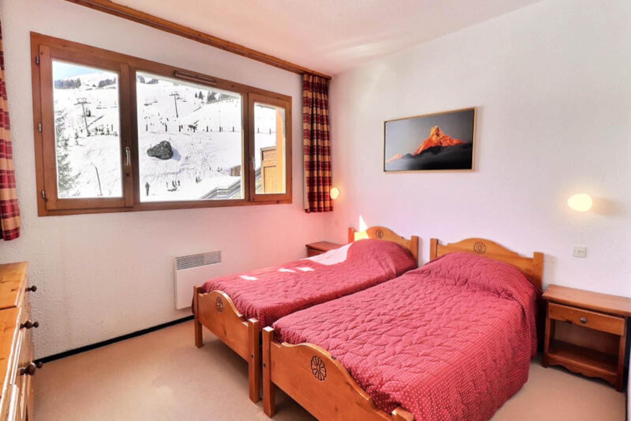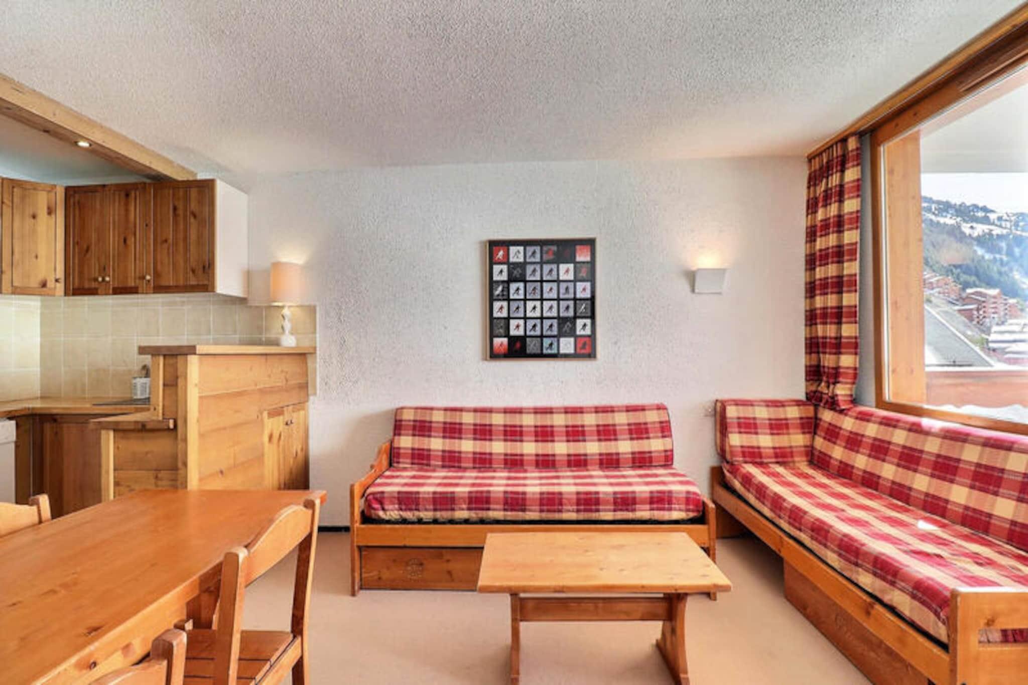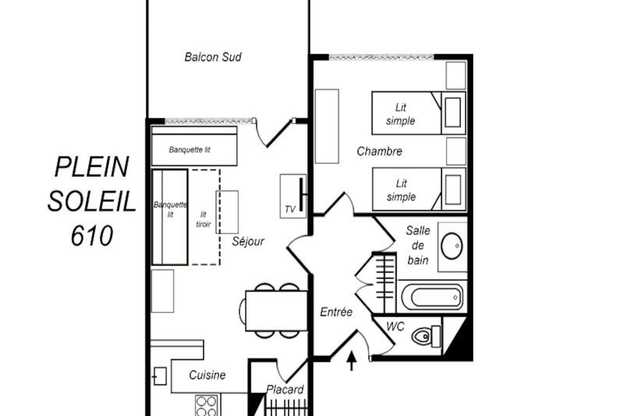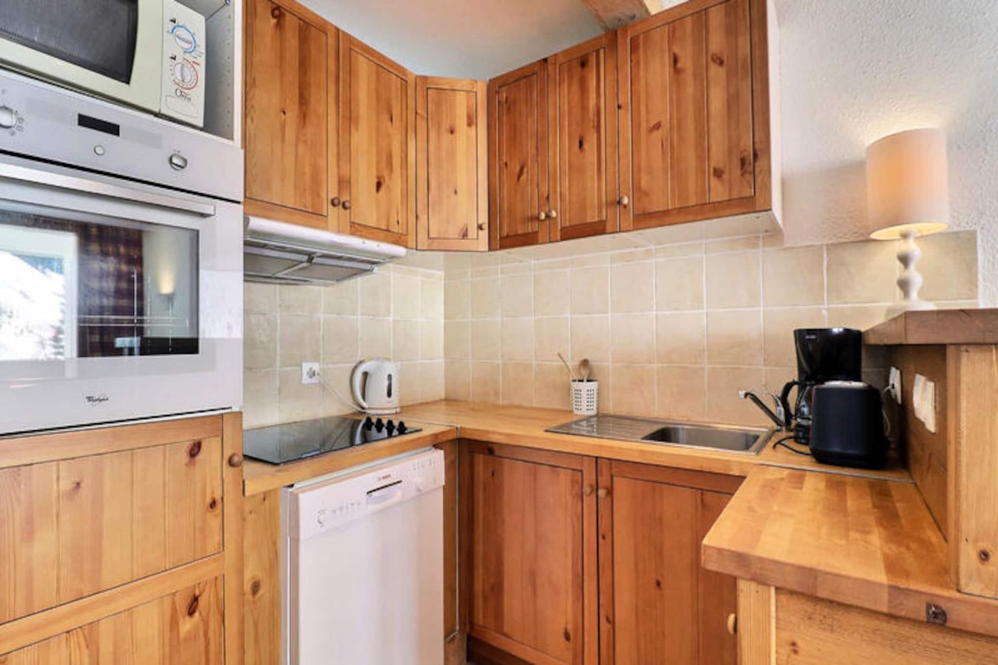 High above the serene slopes of Mottaret, the Plein Soleil residence invites you to experience the magic of the French Alps in a setting that blends convenience with breathtaking views. Imagine stepping out onto your south-facing balcony, the sun warming your face as you gaze at the snowy peaks that stretch endlessly before you. This charming retreat is perfect for those seeking both adventure and relaxation, with ski lockers allowing you to hit the slopes directly from your doorstep. Whether you're here to carve through fresh powder or simply soak in the alpine atmosphere, this residence offers the ideal base for your mountain escape. \n\nInside, the apartment is thoughtfully designed to accommodate up to five guests. The living room features two cozy sofa beds and a trundle bed, while the separate bedroom offers two comfortable single beds. The kitchenette is fully equipped with modern appliances, including a ceramic hob, oven, microwave, and dishwasher, ensuring you have everything you need to prepare hearty meals after a day on the slopes. A flat-screen TV and free Wi-Fi in the residence lounge provide entertainment and connectivity, while the washing machine adds convenience to your stay. The apartment is non-smoking and pet-free, ensuring a clean and welcoming environment for all. \n\nLocated in the heart of Mottaret, the Plein Soleil residence is just steps away from shops and dining options, making it easy to explore the local village charm. The Chalets cable car, offering free access from early morning to late evening, connects you effortlessly to the Hameau and Laitelet areas, opening up endless possibilities for skiing and exploration. With its prime location and thoughtful amenities, this residence is a gateway to the best of the Three Valleys region. \n\nChoose Plein Soleil for your next alpine getaway and create unforgettable memories in one of the most iconic ski destinations in the world.