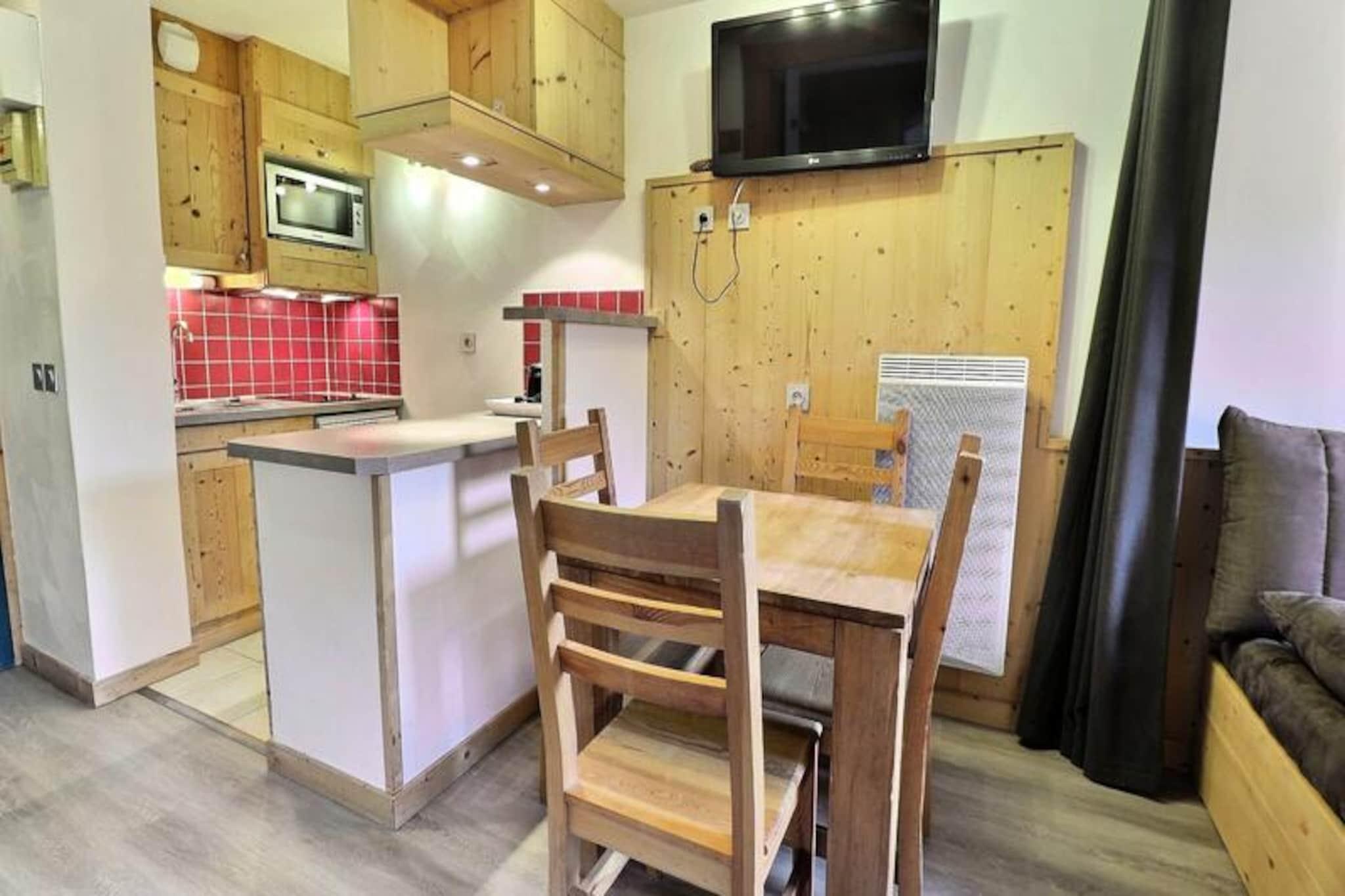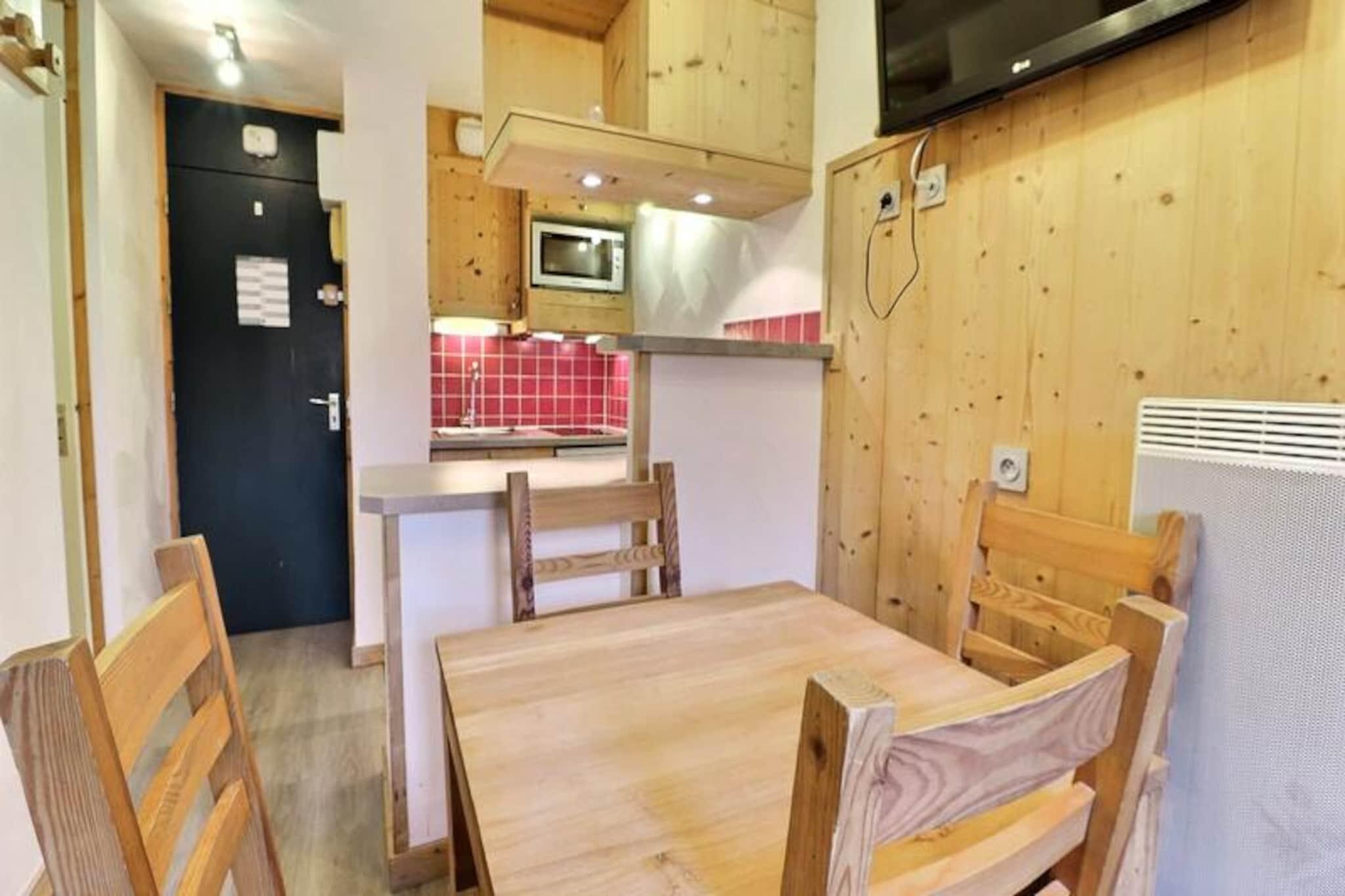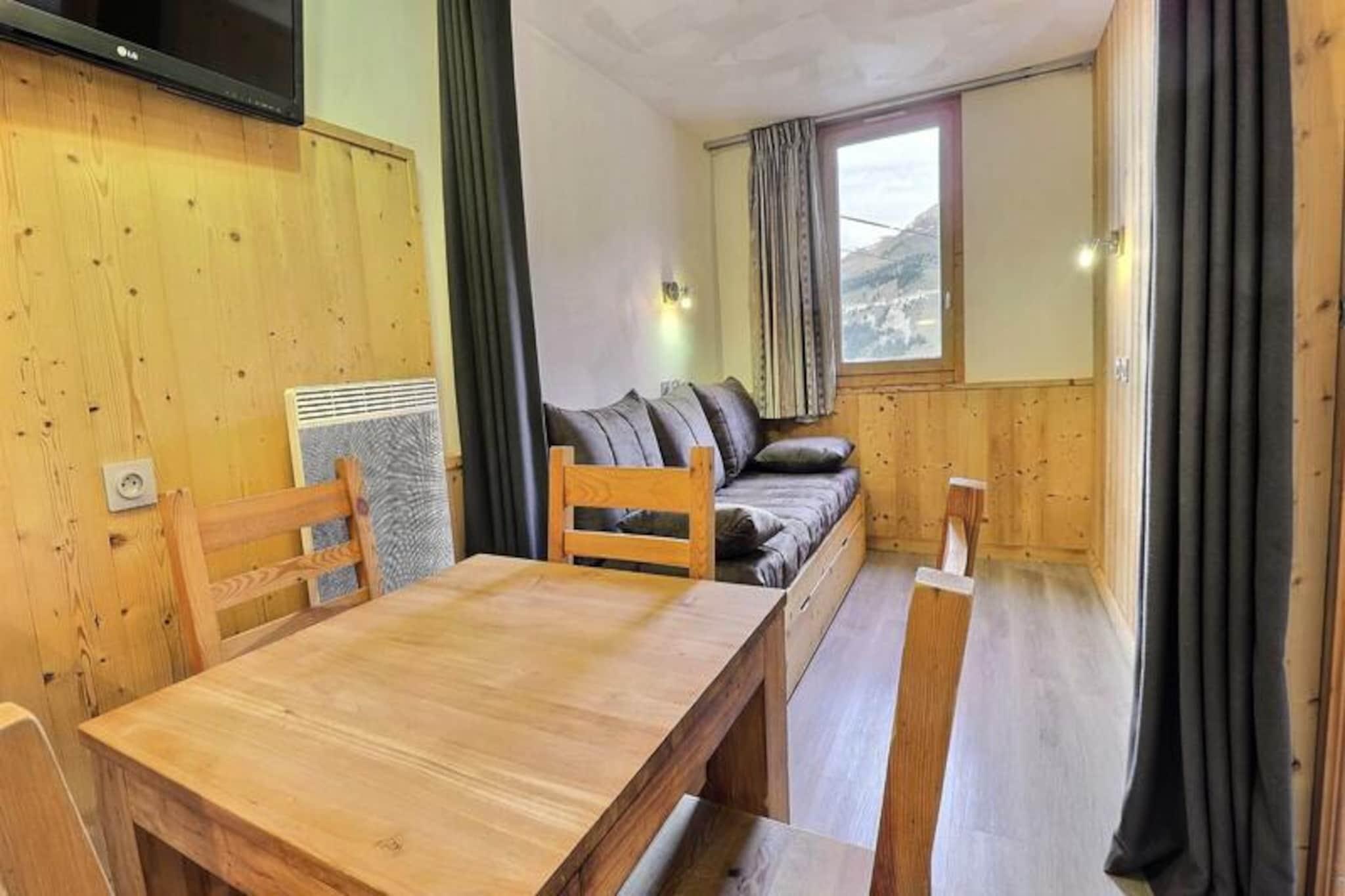 In the serene Hameau district of Le Laitelet, this charming studio apartment offers an idyllic alpine retreat for those seeking both adventure and relaxation. Imagine waking up to the crisp mountain air, stepping out onto the slopes just moments from your door, and beginning your day with the gentle glide down the Perdrix green slope. The Dandy residence is perfectly situated at the foot of the slopes, combining convenience with the beauty of the French Alps. Shops and amenities are just steps away, ensuring everything you need is within easy reach. Access to the wider area is seamless with the Chalets cable car operating from early morning until late evening, free of charge. This makes exploring the picturesque surroundings effortless and enjoyable. The studio, rated 3 stars and designed for up to four guests, offers a cozy and functional layout. The living area features a set of trundle beds, while a sliding wall separates a sleeping area with a comfortable double sofa bed. The kitchenette is fully equipped with modern appliances, including a combination microwave, ceramic hobs, a dishwasher, and more, making it easy to prepare delicious meals after a day on the slopes. The flat-screen TV and thoughtful amenities ensure a comfortable stay, while the east-facing orientation fills the space with natural light. Whether you're here for skiing, snowboarding, or simply to soak in the alpine charm, the Dandy residence provides the perfect base. With its pet-friendly policy and non-smoking environment, it caters to a variety of travelers. From the convenience of ski lockers to the proximity of local shops and the ease of access to the slopes, this property promises a memorable mountain getaway. Embrace the magic of the French Alps and create lasting memories in this delightful retreat.