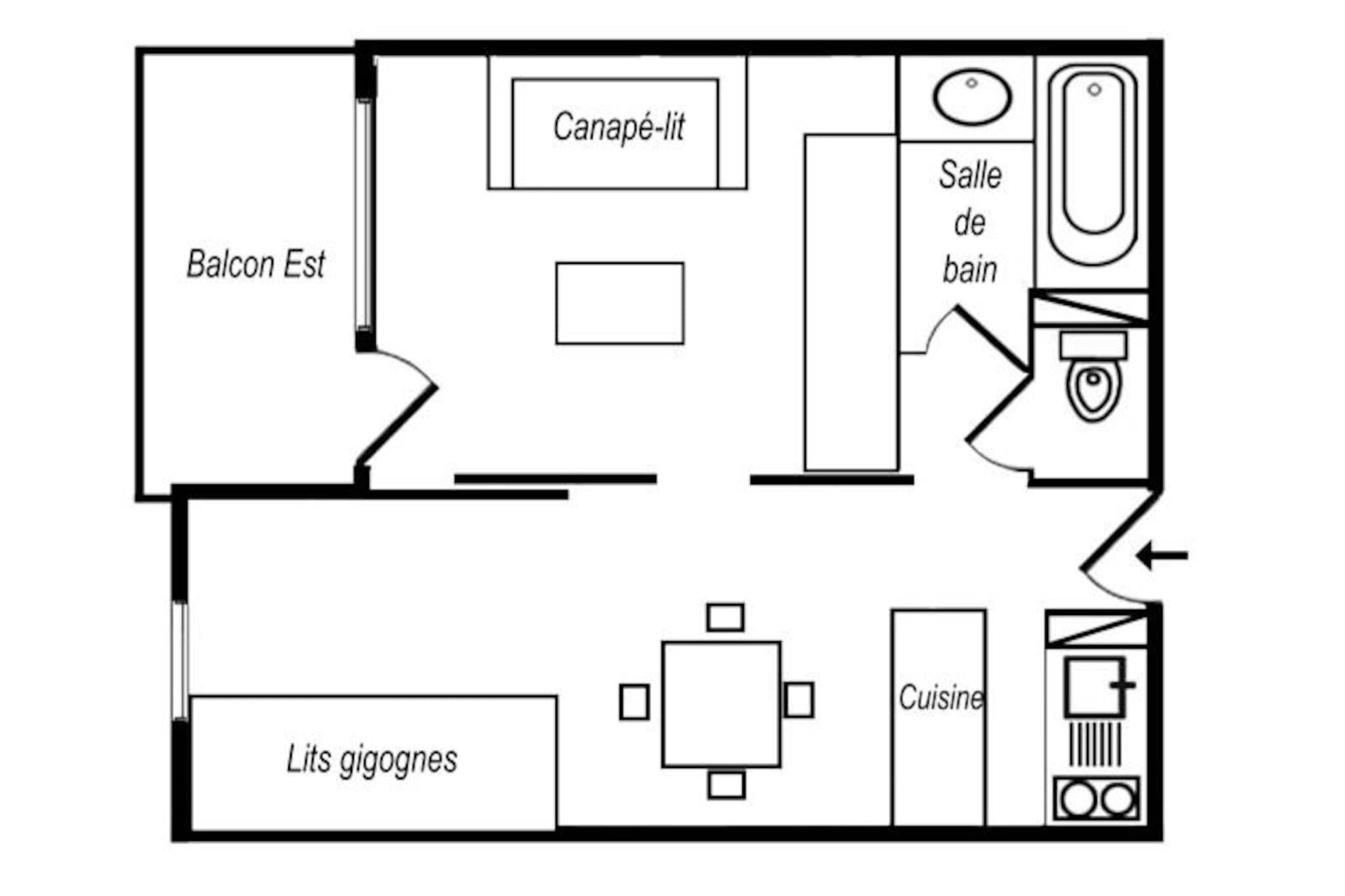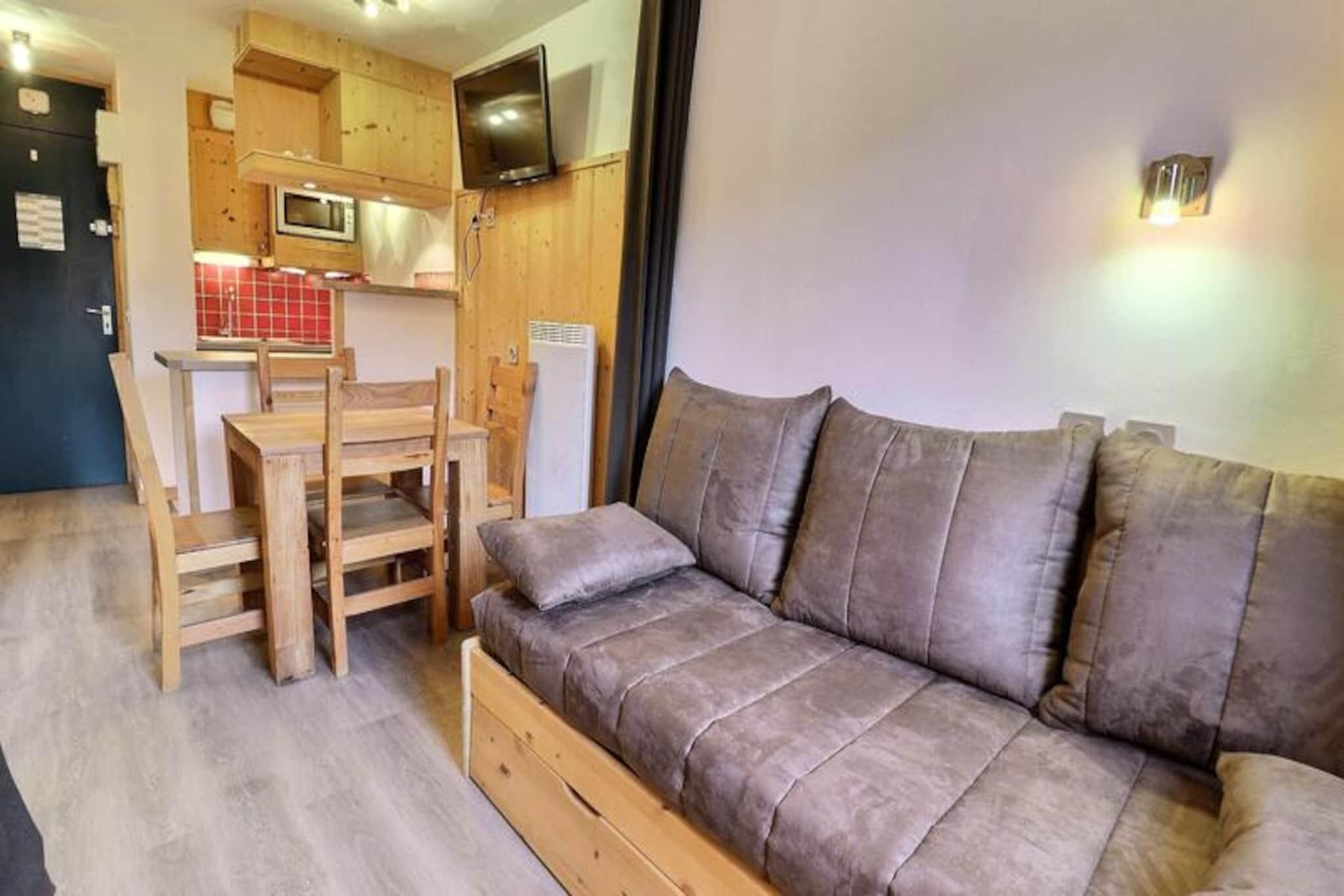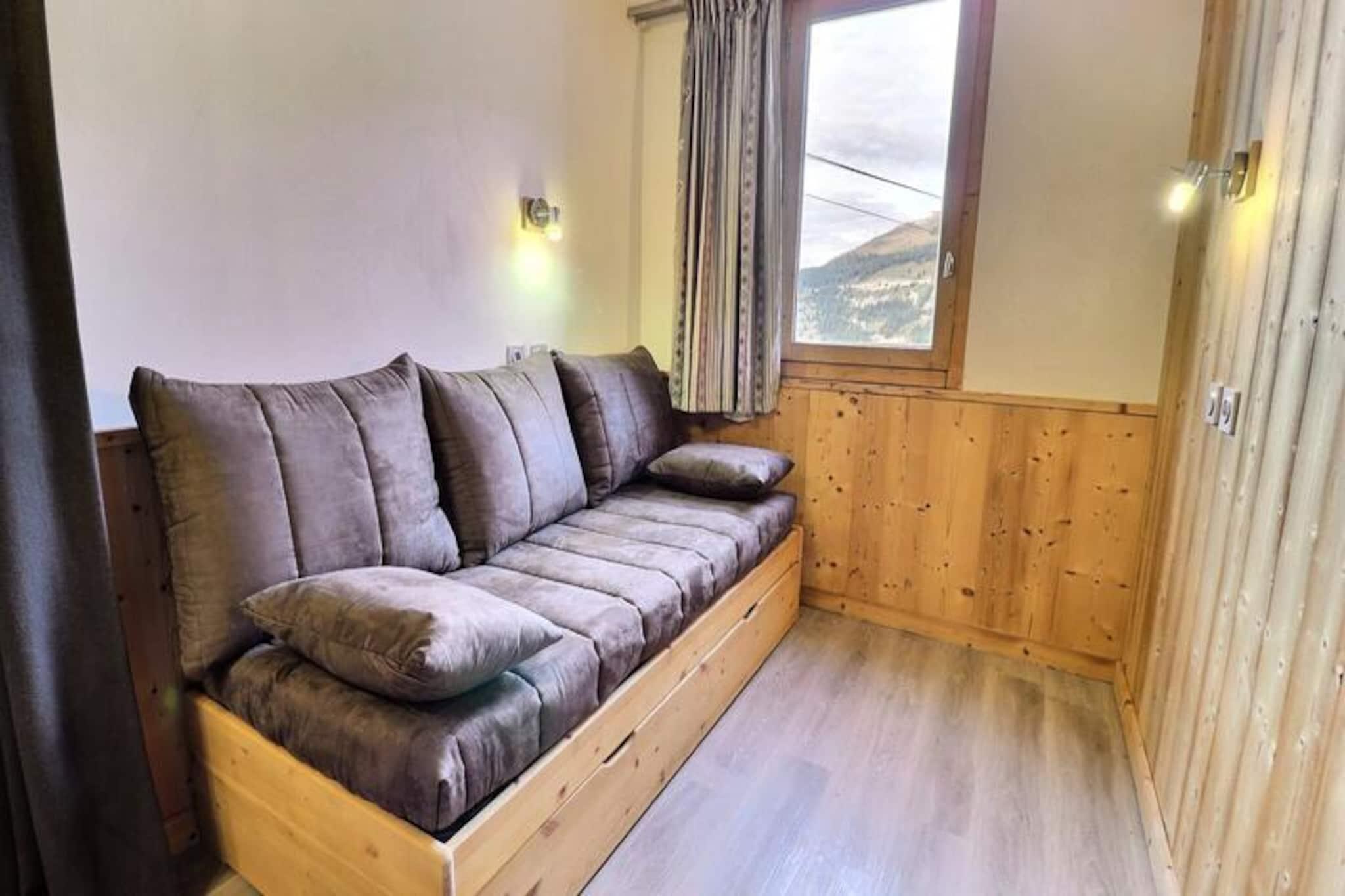 In the serene Hameau district of Le Laitelet, this charming studio apartment offers an idyllic alpine retreat for those seeking both adventure and relaxation. Imagine waking up to the crisp mountain air, stepping out onto the slopes just moments from your door, and beginning your day with the gentle glide down the Perdrix green slope. The Dandy residence is perfectly situated at the foot of the slopes, combining convenience with the beauty of the French Alps. Shops and amenities are just steps away, ensuring everything you need is within easy reach. Access to the wider area is seamless with the Chalets cable car operating from early morning until late evening, free of charge. This makes exploring the picturesque surroundings effortless and enjoyable. The studio, rated 3 stars and designed for up to four guests, offers a cozy and functional layout. The living area features a set of trundle beds, while a sliding wall separates a sleeping area with a comfortable double sofa bed. The kitchenette is fully equipped with modern appliances, including a combination microwave, ceramic hobs, a dishwasher, and more, making it easy to prepare delicious meals after a day on the slopes. The flat-screen TV and thoughtful amenities ensure a comfortable stay, while the east-facing orientation fills the space with natural light. Whether you're here for skiing, snowboarding, or simply to soak in the alpine charm, the Dandy residence provides the perfect base. With its pet-friendly policy and non-smoking environment, it caters to a variety of travelers. From the convenience of ski lockers to the proximity of local shops and the ease of access to the slopes, this property promises a memorable mountain getaway. Embrace the magic of the French Alps and create lasting memories in this delightful retreat.