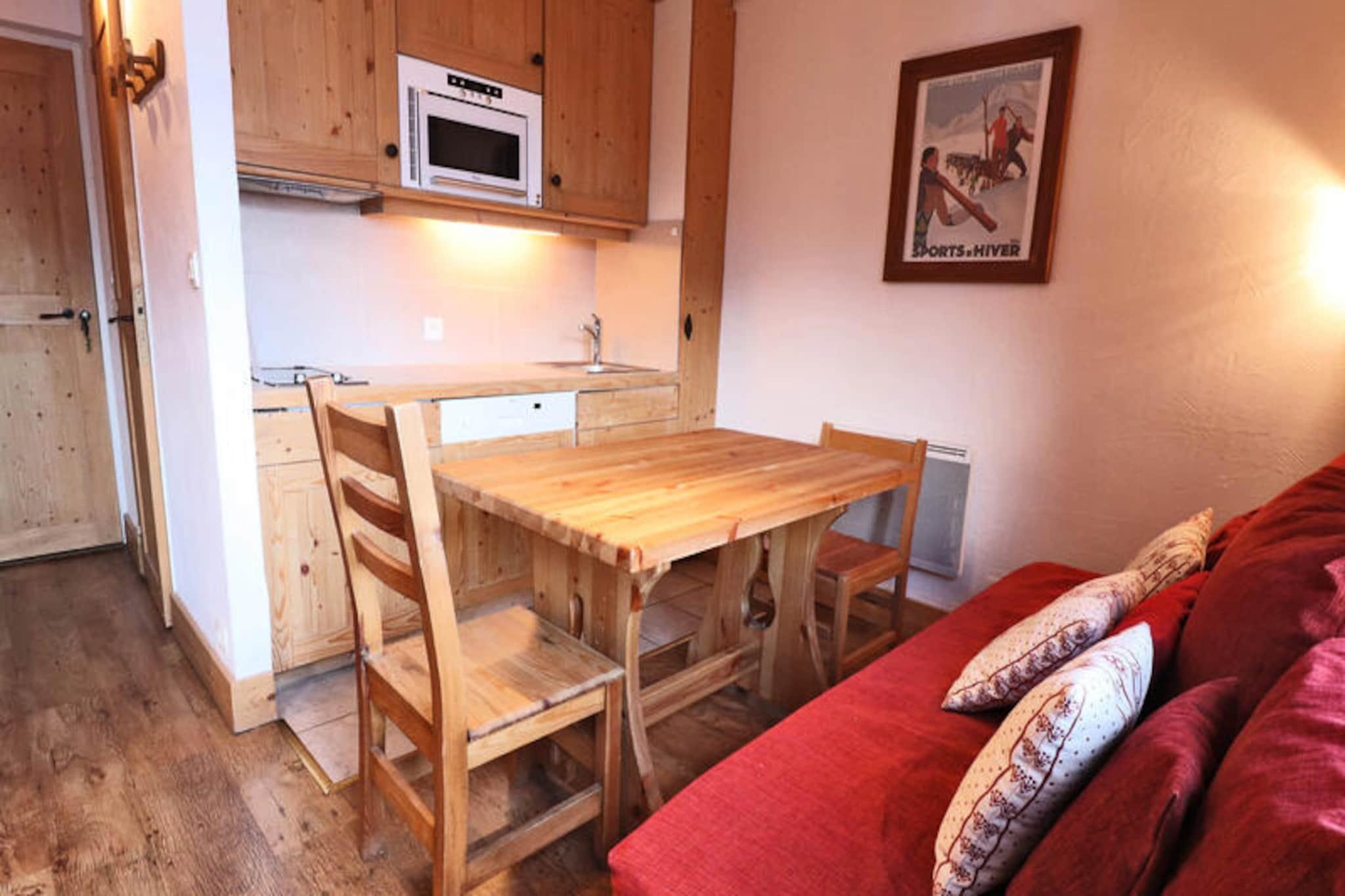 High above the enchanting valley of Méribel, this cozy studio apartment offers an authentic alpine escape with direct access to the slopes. Imagine stepping out of your ski locker and gliding onto the gentle Little Himalaya green run, leading you effortlessly to the main ski lifts. Perfectly situated just 100 meters from the Mottaret shopping center via stairs, this residence combines convenience with the charm of mountain living. Whether you're here for the thrill of skiing or the serene beauty of the French Alps, this retreat is your gateway to unforgettable moments. The apartment, rated 2 stars and bearing the Méribel Label for its charm, is designed to comfortably host 2 to 3 guests. Its divisible layout creates a sense of privacy, with a double sofa bed in the living room and a single sofa bed in the dining area. The open kitchenette is fully equipped with ceramic hobs, a refrigerator, microwave with grill, dishwasher, and essential appliances like a coffee maker and toaster. After a day on the slopes, unwind in the cozy living space or step onto the north-facing balcony to soak in the crisp alpine air. Modern touches like a flat-screen TV and free Wi-Fi (subject to availability) ensure a comfortable stay. Beyond the apartment, the Grande Rosière residence places you at the heart of Méribel-Mottaret. Explore nearby shops, savor local Savoyard cuisine, or simply revel in the breathtaking mountain vistas. With its ski-in, ski-out convenience and proximity to key amenities, this charming studio is the perfect base for couples or small groups seeking a memorable alpine adventure. Pets are welcome, making it an ideal choice for those traveling with furry companions. Embrace the magic of Méribel and create memories that will last a lifetime.