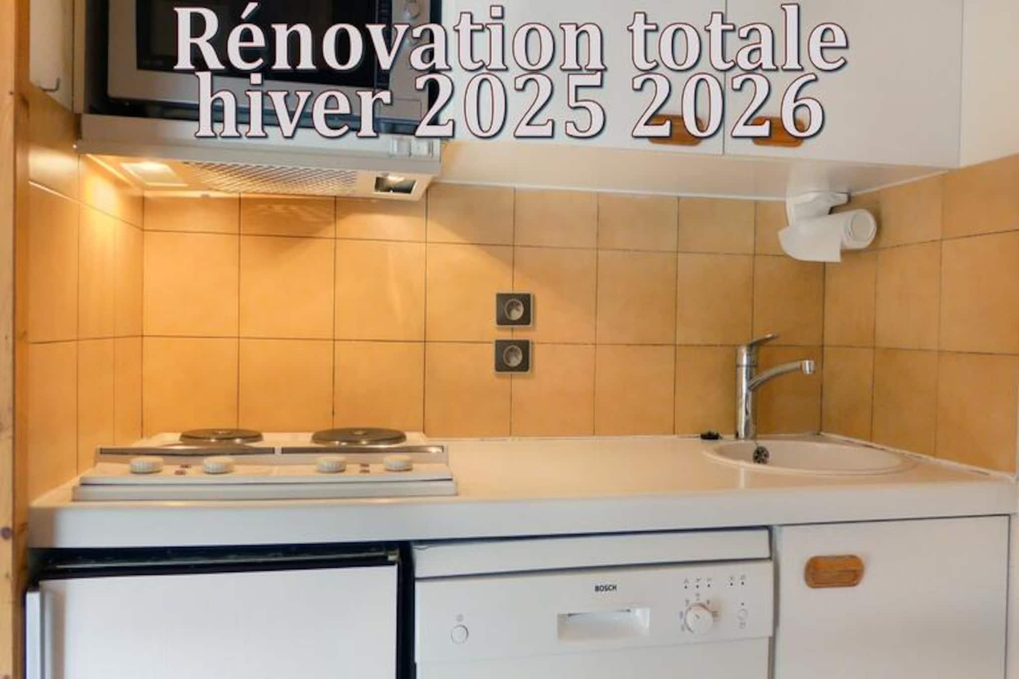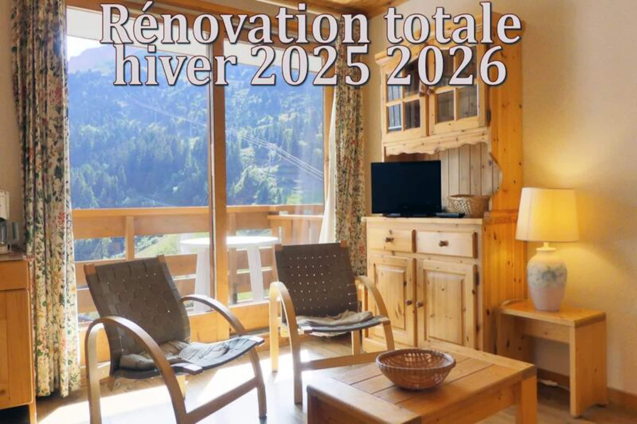 High above the serene slopes of Méribel-Mottaret, this charming alpine apartment invites you to experience the magic of the French Alps in every season. With breathtaking views of Mont Vallon and the shimmering Lake Tueda from your private south-facing balcony, this cozy retreat is a haven for nature lovers and adventure seekers alike. Whether you're sipping coffee in the morning sun or unwinding after a day on the pistes, the tranquil atmosphere will leave you feeling refreshed and inspired. \n\nInside, the apartment offers a thoughtfully designed layout perfect for up to four guests. The living room features a dining area and a comfortable lounge space, while the bedroom boasts a plush double bed for restful nights. The cabin room, complete with a window, provides cozy bunk beds ideal for children or friends. The open-plan kitchenette is fully equipped with modern appliances, including a combination oven/microwave, dishwasher, and coffee maker, ensuring you have everything needed to prepare delicious meals. A flat-screen TV adds a touch of entertainment, while the separate bathroom and toilet enhance convenience. \n\nSituated directly on the slopes, the residence offers unparalleled ski-in/ski-out access via the red Aigle run, leading to the main ski lift departure point. For shopping and dining, the nearby center is easily reachable via an inclined elevator or a short walk. The Châtelet shuttle stop provides excellent connectivity to explore the wider Méribel area. In summer, the region transforms into a paradise for hikers and cyclists, with trails winding through lush alpine meadows and forests. \n\nWhether you're here for the thrill of skiing, the beauty of nature, or simply to relax in the crisp mountain air, this apartment is your gateway to unforgettable moments in the heart of the Alps.