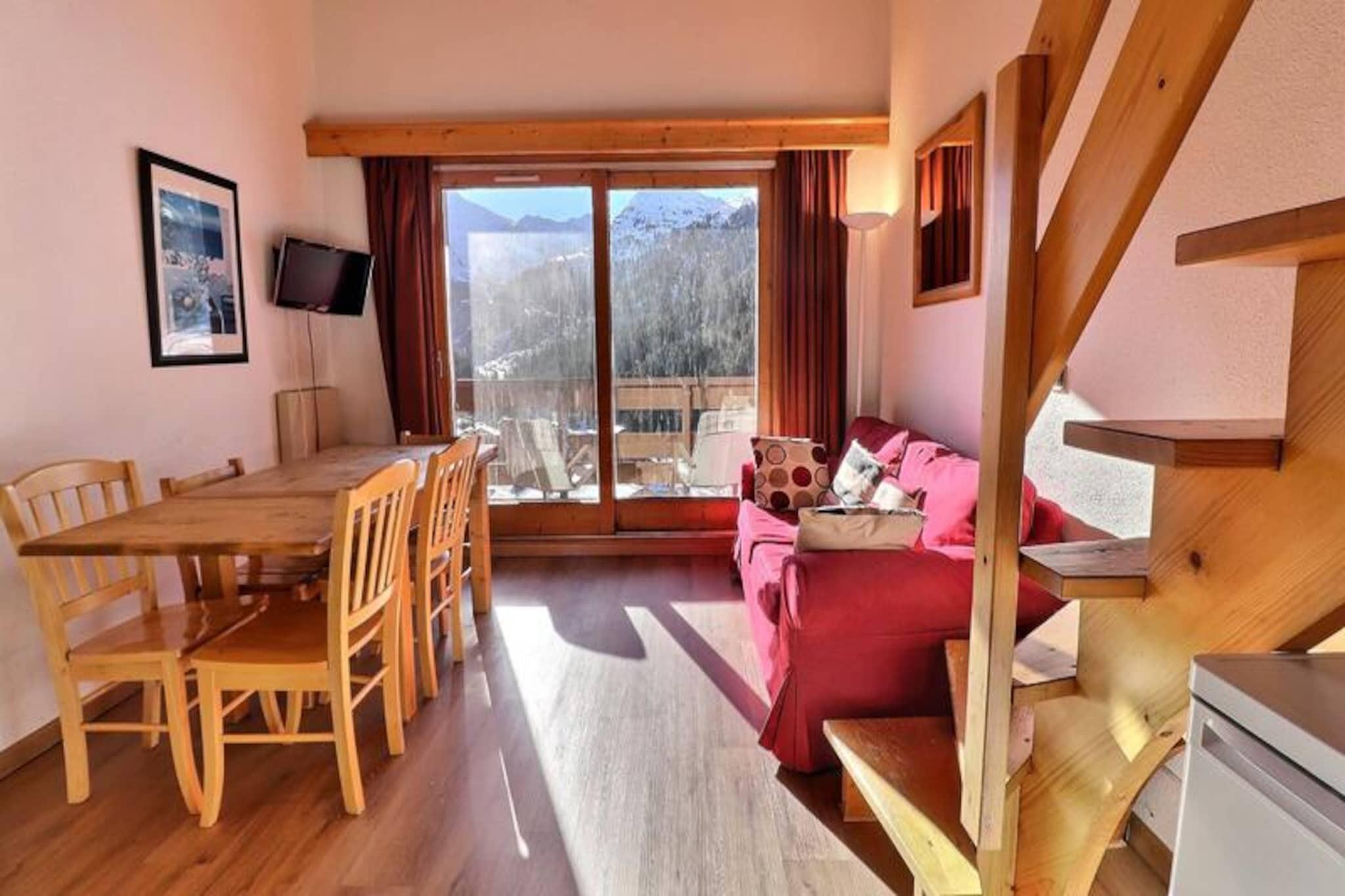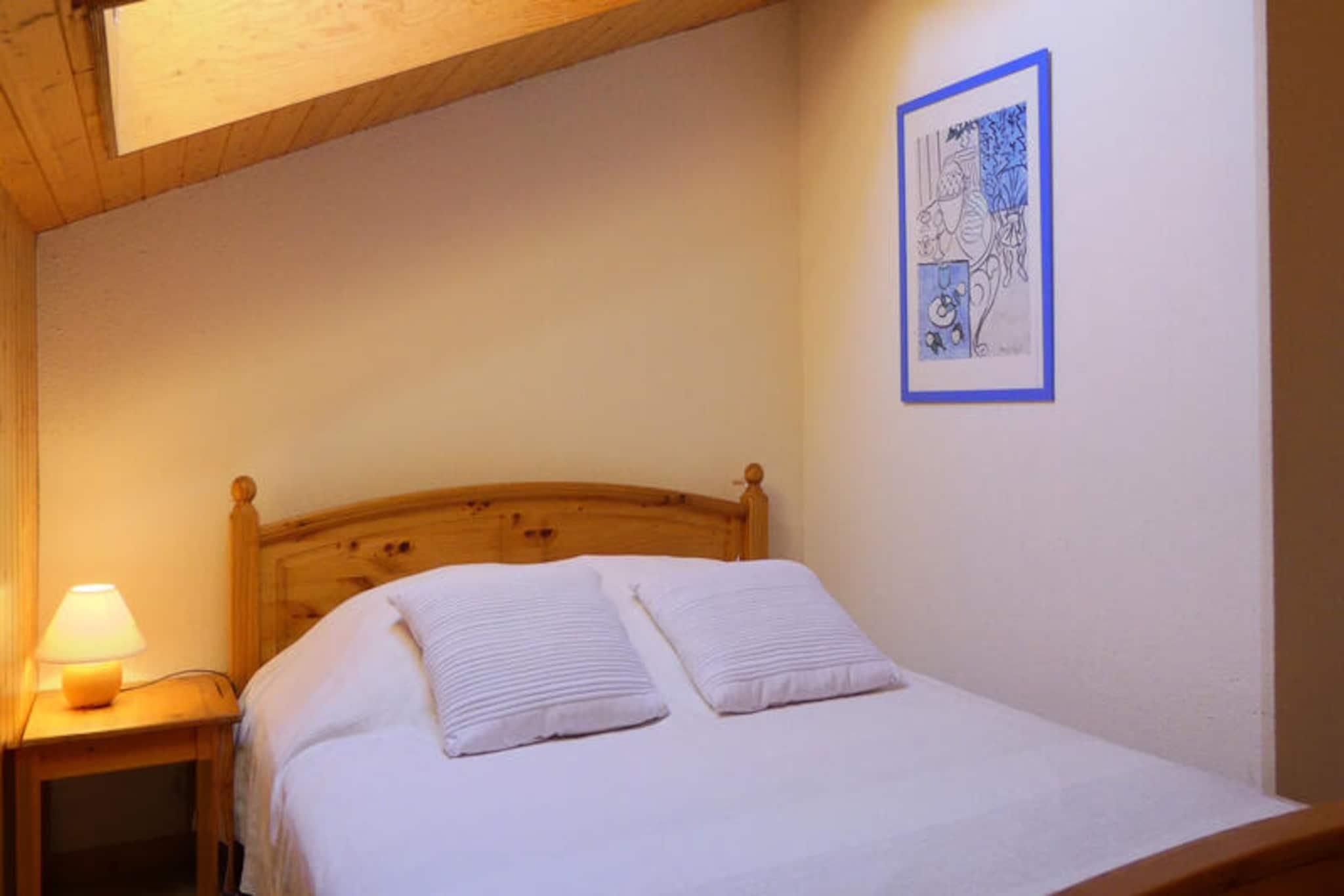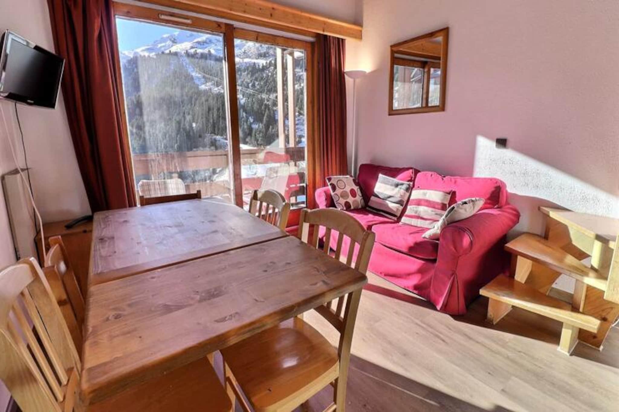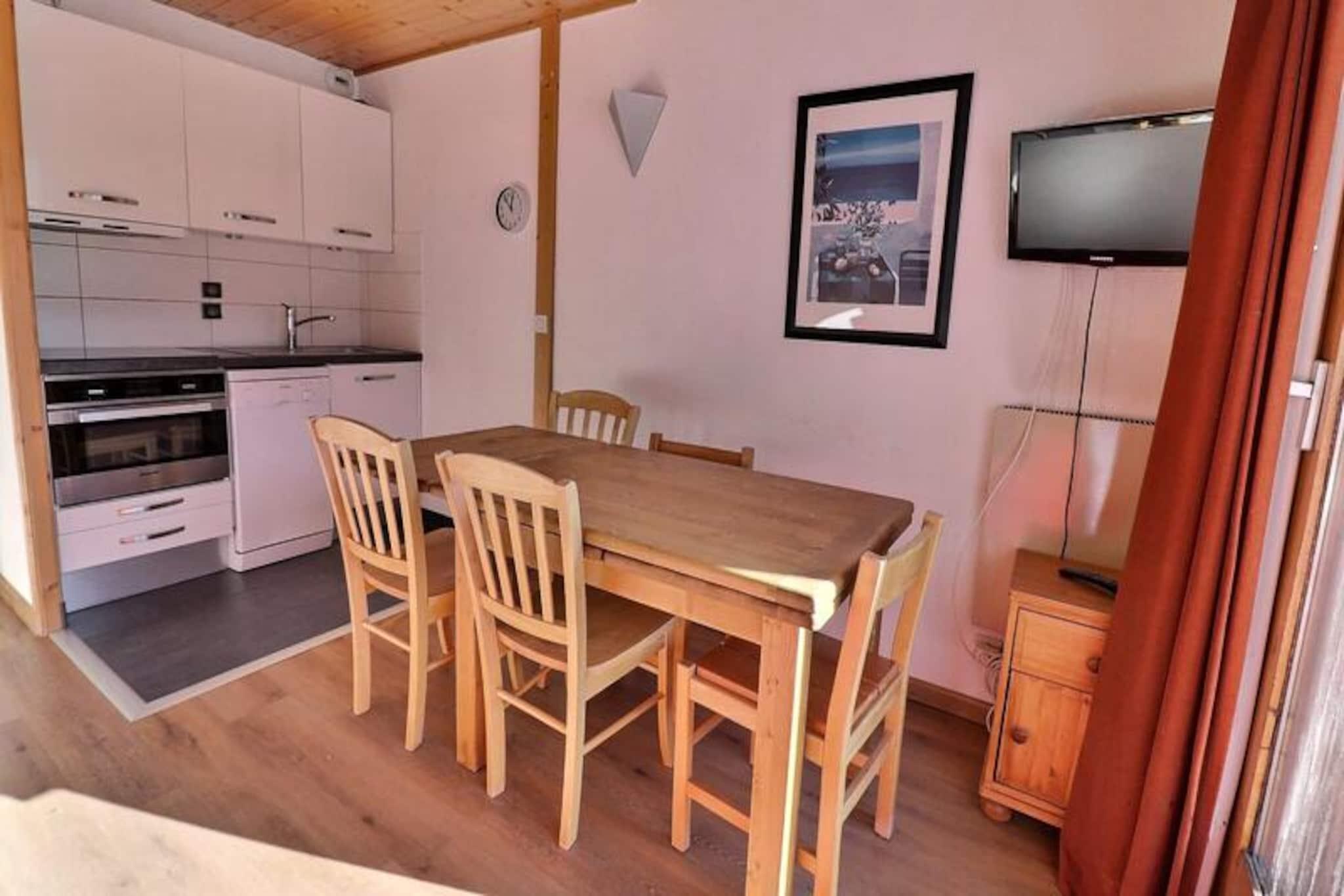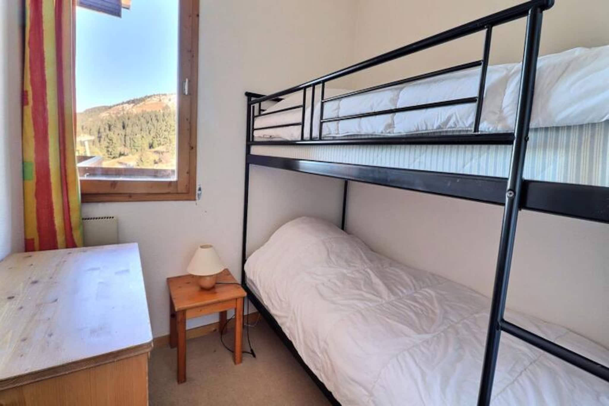 High above the shimmering slopes of Méribel-Mottaret, this charming alpine retreat offers a cozy haven for ski enthusiasts and nature lovers alike. With its south-facing balcony, you’ll wake up to breathtaking views of the snow-dusted peaks, ready to embrace the crisp mountain air and endless adventures that await. Whether you’re here to carve through pristine powder or simply soak in the serene beauty of the French Alps, this residence is your gateway to unforgettable moments. \n\nDesigned for up to six guests, the apartment spans two levels and features a warm, inviting ambiance. The living room is perfect for relaxing after a day on the slopes, while the kitchenette comes fully equipped with modern amenities, including a dishwasher, ceramic hobs, and a coffee maker. The mezzanine offers a cozy double sofa bed, while the attic-style bedroom provides a tranquil retreat with a double bed. A separate cabin with bunk beds ensures comfort for families or groups of friends. With two bathrooms, a flat-screen TV, and thoughtful touches throughout, this space combines convenience with alpine charm. \n\nLocated directly on the slopes, you can ski straight onto the red Aigle run, leading to the main ski lift departure point. For shopping and dining, the nearby center is easily accessible via an inclined elevator or a short walk. The Châtelet shuttle stop provides additional connectivity, making it simple to explore the vibrant Méribel area. \n\nWhether you’re chasing powder in winter or hiking through lush trails in summer, this residence invites you to experience the magic of the Alps in every season. Let the majestic peaks and tranquil atmosphere inspire your next adventure.