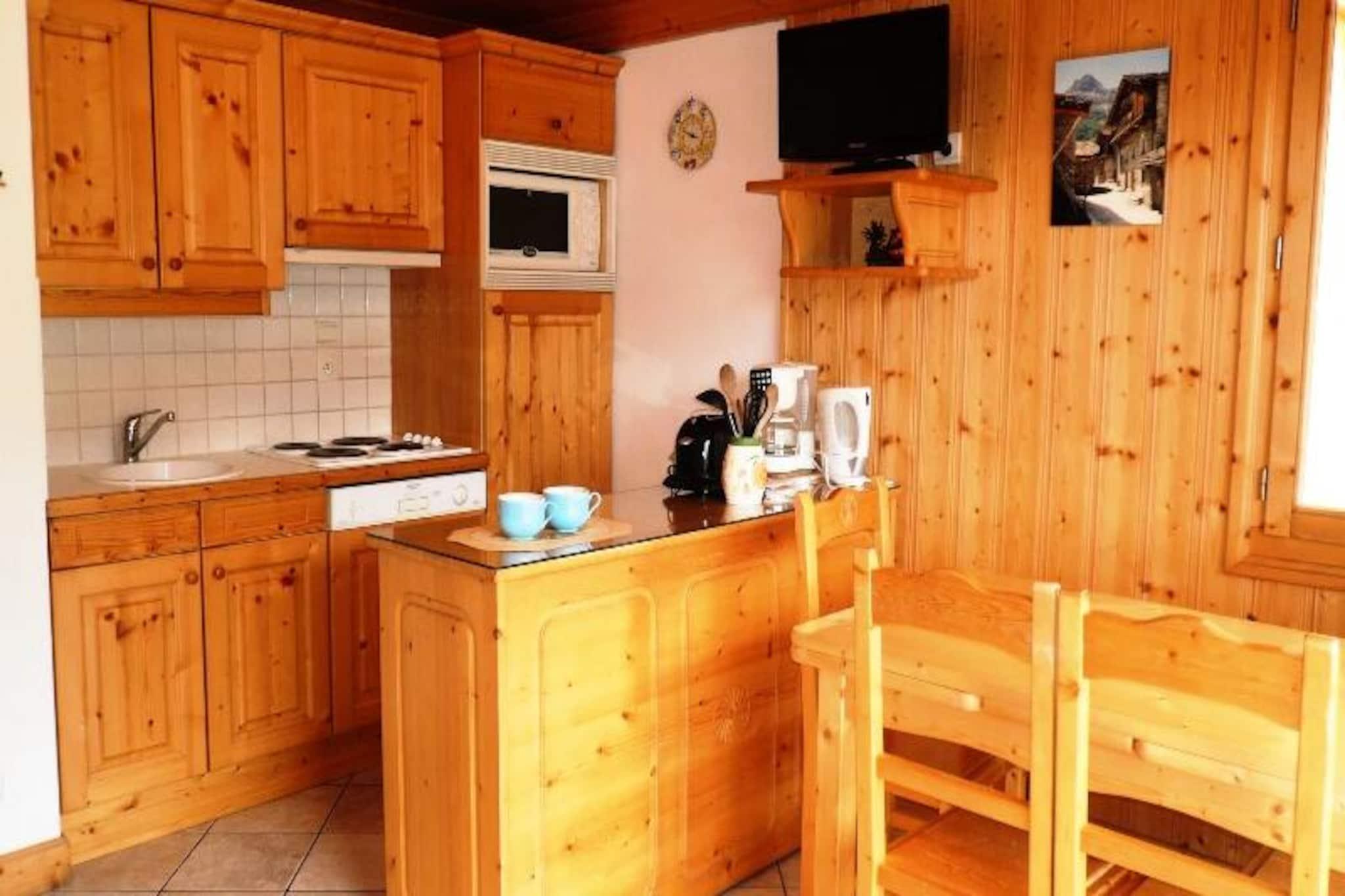 Surrounded by the enchanting beauty of the French Alps, this charming apartment in Méribel offers a tranquil retreat just a short walk from the lively resort center. With breathtaking views of the surrounding mountains and the picturesque village, your stay here promises a perfect blend of serenity and convenience. Whether you’re visiting for a winter ski adventure or a summer escape, the peaceful ambiance of this residence sets the tone for an unforgettable holiday. A nearby shuttle stop ensures easy access to the slopes and local attractions, making it an ideal base for exploring the region. \n\nStep inside this cozy 3-room apartment, awarded the prestigious 3-star Méribel Label, and discover a thoughtfully designed space that comfortably accommodates up to five guests. The west-facing balcony invites you to relax and soak in the alpine vistas, while the well-equipped kitchen, complete with electric hobs, oven, dishwasher, and refrigerator, makes preparing meals effortless. Sleeping arrangements include a double sofa bed in the living room, a double bed in one bedroom, and a bunk bed in the second bedroom, ensuring restful nights for everyone. Additional amenities such as a washing machine, television, ski locker, and garage add to the convenience and comfort of your stay. \n\nMéribel’s vibrant center, just a 10-minute walk away, offers an array of shops, restaurants, and après-ski activities to enhance your holiday experience. In winter, enjoy world-class skiing in the renowned Three Valleys ski area, while summer brings opportunities for hiking, mountain biking, and exploring the lush alpine landscapes. With discounted ski passes available and a Wi-Fi router rental option, every detail has been considered to make your stay seamless and enjoyable. \n\nChoose this delightful apartment for your next Méribel getaway and create lasting memories in the heart of the French Alps. Whether you’re seeking adventure or relaxation, this residence offers the perfect balance of comfort, convenience, and natural beauty.