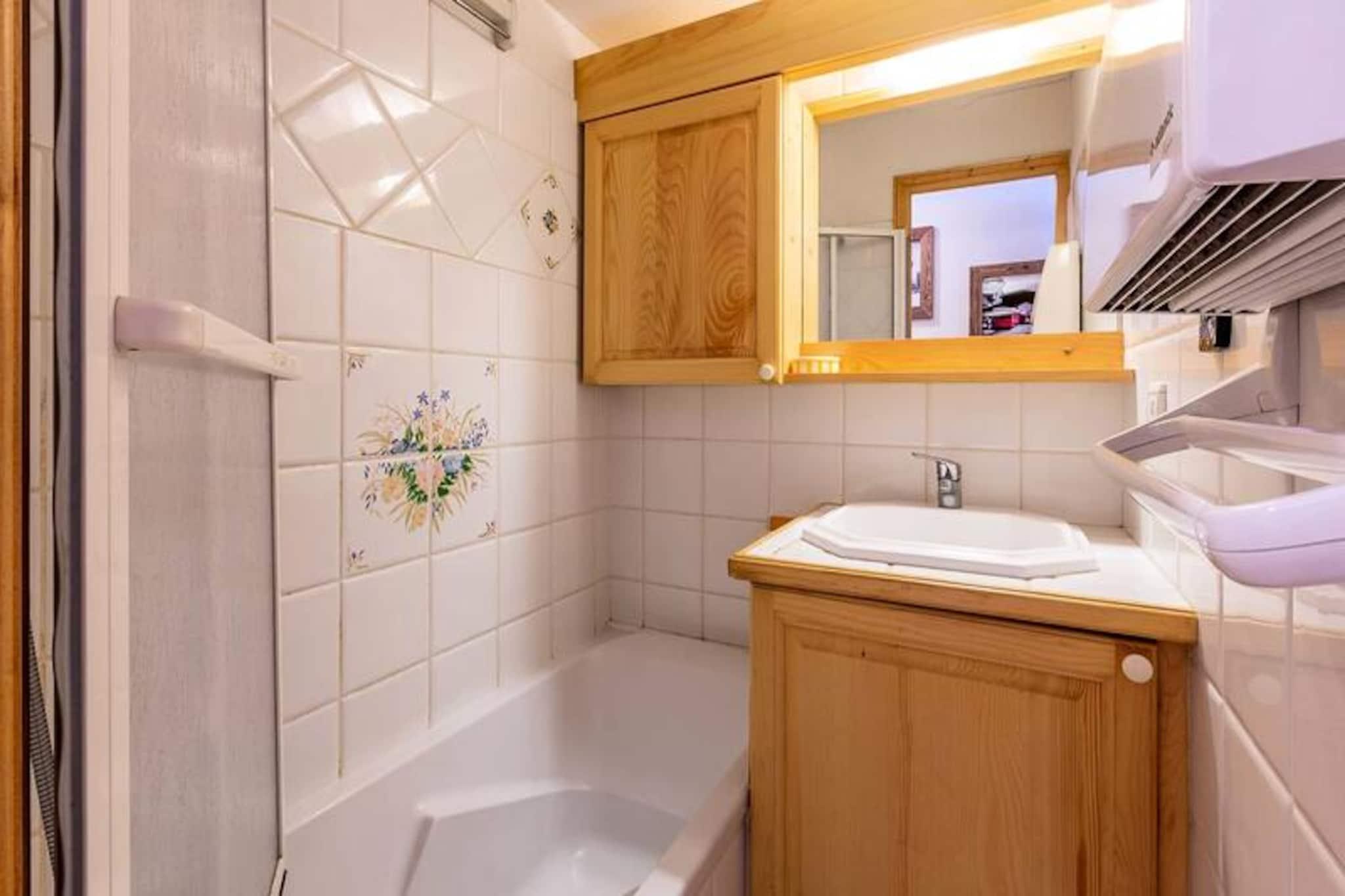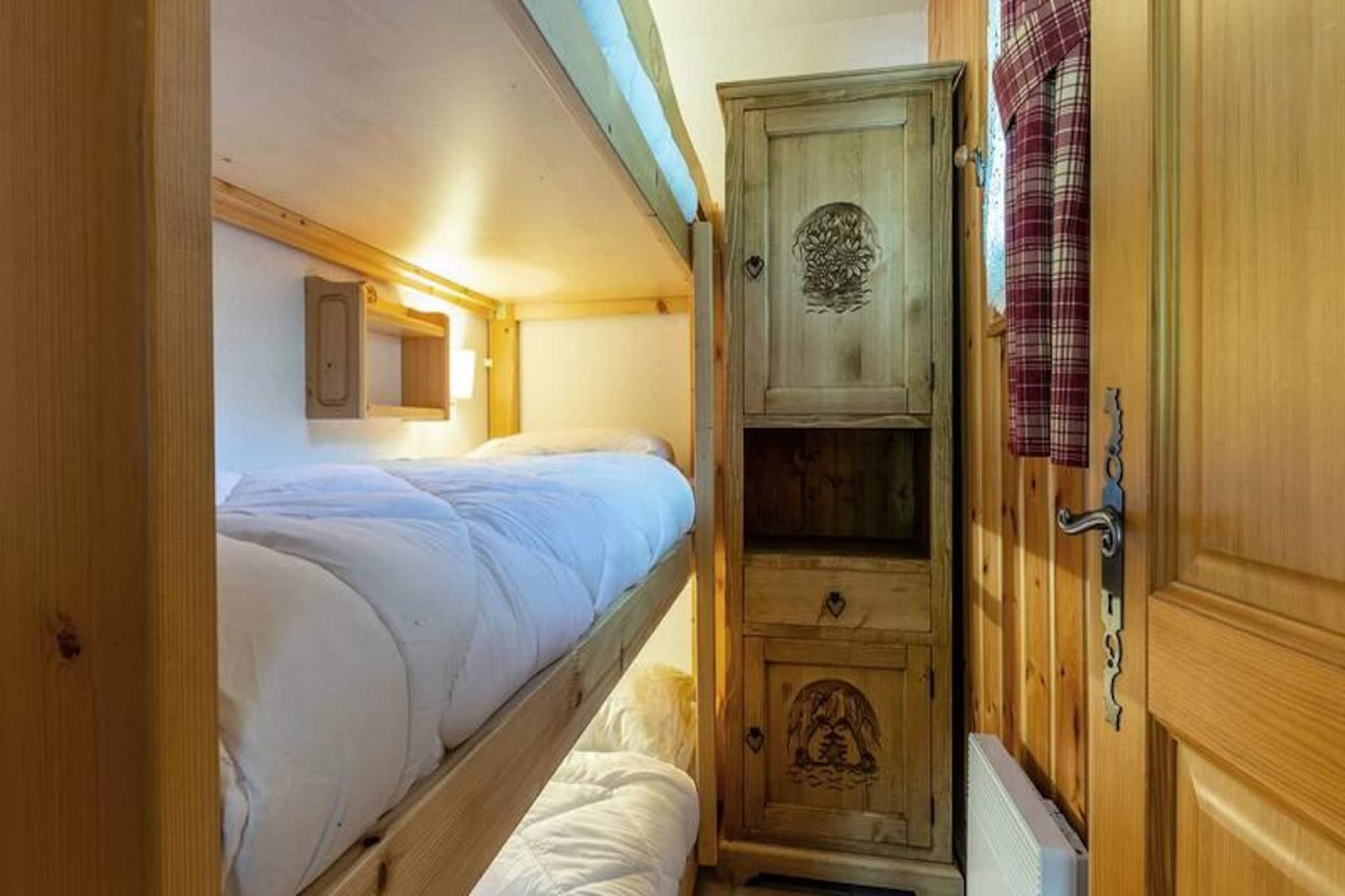In the serene and picturesque neighborhood of Le Chatelet in Méribel Mottaret, this charming apartment offers a perfect retreat for mountain lovers. Surrounded by the breathtaking beauty of the French Alps and just a short walk from the tranquil Lake Tueda, this property is ideal for those seeking both adventure and relaxation in a peaceful alpine setting. Whether you're planning a winter escape to the slopes or a summer getaway to explore the trails, this residence is your gateway to nature's wonders. \n\nThe apartment is thoughtfully designed to accommodate up to six guests comfortably. The living room features a cozy sofa bed, a trundle bed, and a television, creating a welcoming space for relaxation after a day of activities. The bedroom with a double bed and a sleeping alcove with bunk beds ensure restful nights for everyone. The fully equipped kitchen, complete with a ceramic hob, dishwasher, microwave, oven, and coffee maker, makes meal preparation a breeze. A private balcony invites you to soak in the fresh mountain air, while the bathroom with a bathtub and separate toilet adds convenience. Additional amenities include a ski locker and optional services such as linens, towels, and end-of-stay cleaning.\n\nThe residence, Les Alpages, is a modern complex of five independent chalets, offering easy access to the ski slopes and lifts on foot. Shops are conveniently located within 150 to 400 meters, and the quiet surroundings make it a haven for walkers, snowshoers, and cross-country skiers. With its proximity to Lake Tueda and the charm of Méribel Mottaret, this apartment is an excellent choice for a memorable alpine holiday. Book your stay now and immerse yourself in the magic of the French Alps.