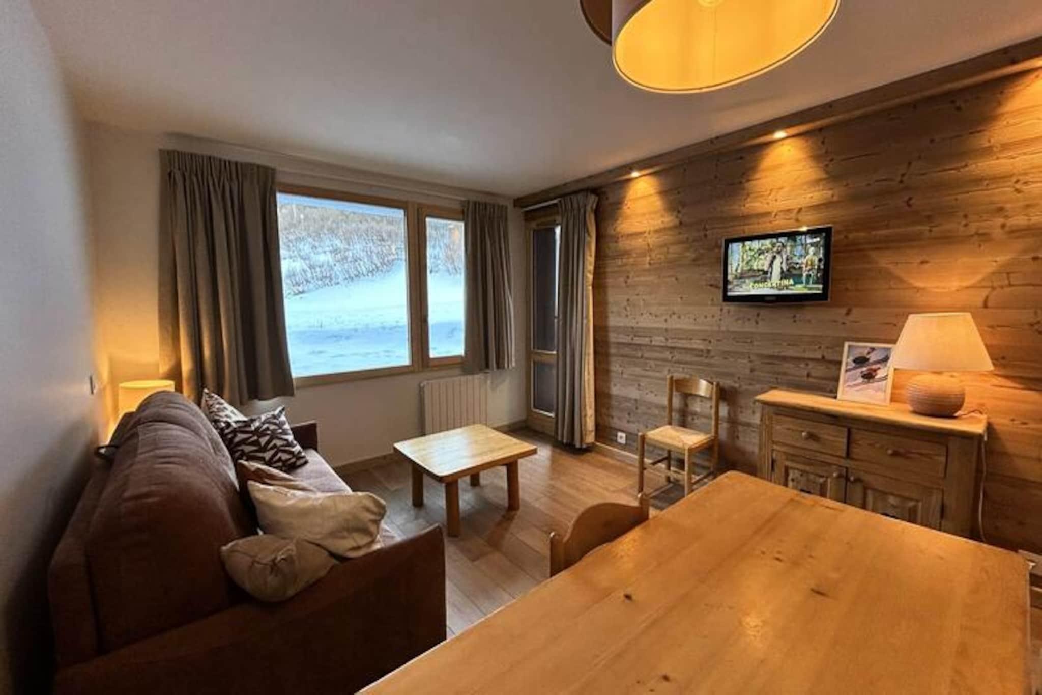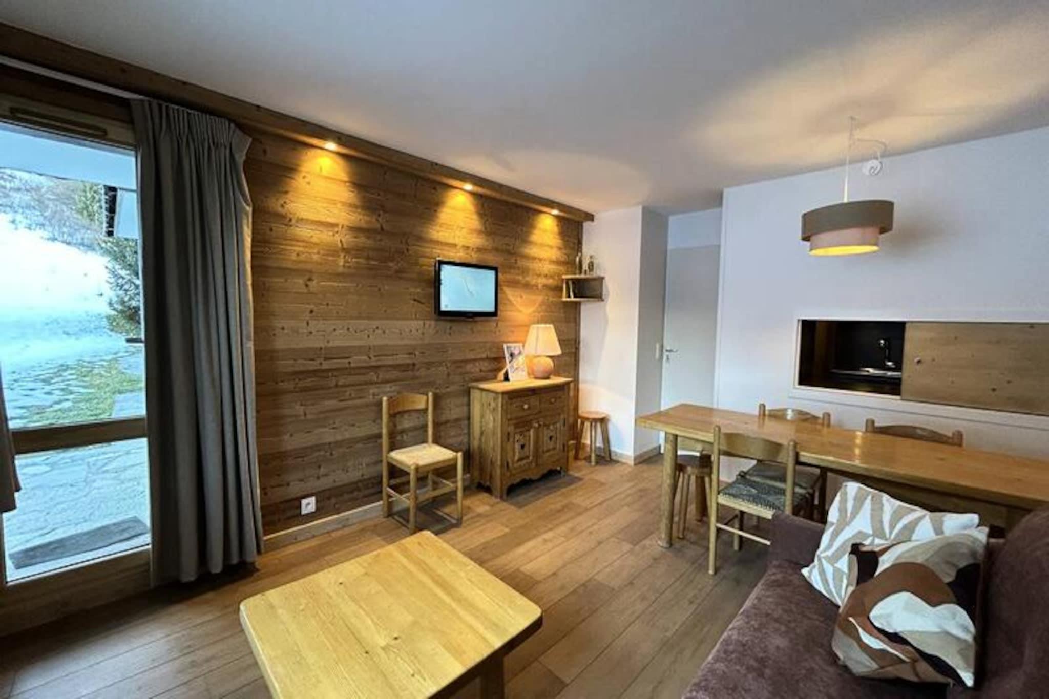 High above the picturesque Méribel Mottaret, this charming alpine apartment offers a cozy retreat for those seeking the perfect ski getaway. Imagine mornings filled with crisp mountain air and evenings spent gazing at the snow-covered peaks from your private terrace. Located in the heart of the Laitelet district, this residence combines the tranquility of the mountains with the convenience of being just steps from the slopes and local amenities. \n\nThe apartment is thoughtfully designed to accommodate up to six guests. The living room features a comfortable double sofa bed and a TV for relaxing after a day on the slopes. The bedroom includes two single beds that can be joined together and a bunk bed, making it ideal for families or small groups. The fully equipped kitchen boasts a ceramic hob, microwave, dishwasher, oven, refrigerator, kettle, toaster, and a Nespresso Essenza coffee maker, ensuring you have everything needed to prepare hearty meals. A bathroom with a separate toilet adds to the convenience, while a ski locker in the residence keeps your gear secure. Please note, this is a non-smoking property, and pets are not allowed.\n\nLe Nantchu residence is perfectly situated for ski enthusiasts, offering direct access to the slopes and proximity to shops, restaurants, and bars. The free Méribus shuttle or the Les Chalets cable car provides easy access to the center of Mottaret, where you can explore more of what this vibrant resort has to offer. \n\nWhether you're here to carve through pristine snow or simply soak in the serene alpine atmosphere, this apartment is your gateway to unforgettable mountain adventures. Book your stay and experience the magic of Méribel Mottaret firsthand.