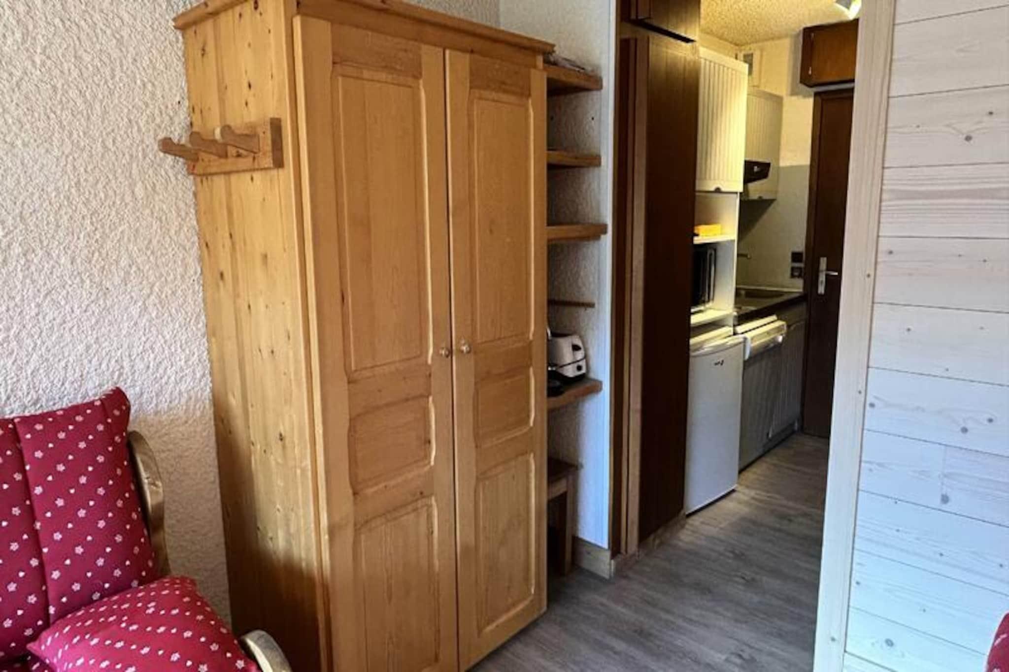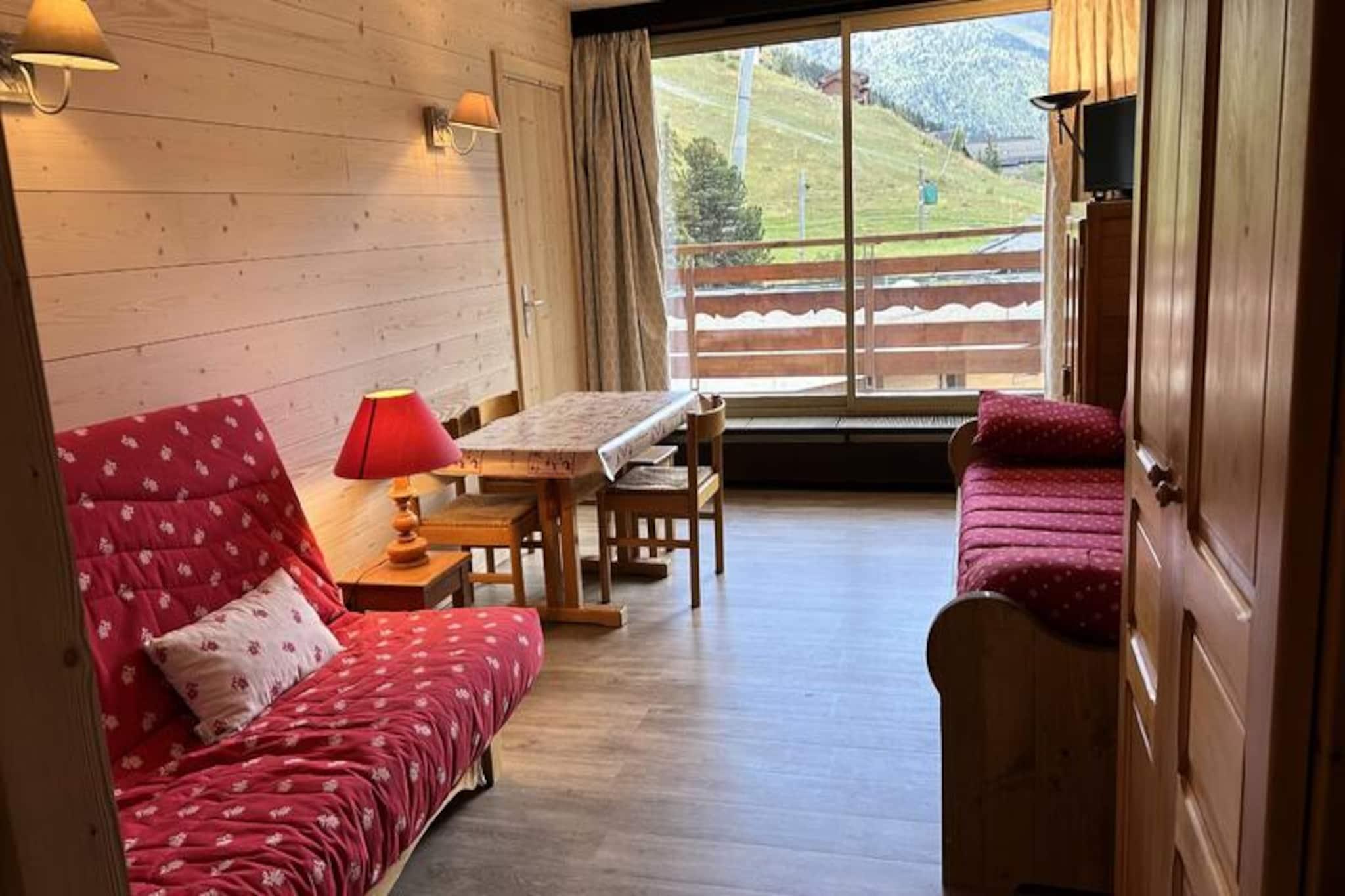 At the heart of the picturesque Méribel Mottaret, this charming studio invites you to experience the perfect alpine getaway. With its south-facing balcony offering stunning views of the surrounding peaks, you’ll wake up to the crisp mountain air and the promise of adventure. Whether you’re here to carve through pristine slopes or simply soak in the tranquil beauty of the French Alps, this residence is your gateway to an unforgettable holiday. \n\nThe studio is thoughtfully designed to accommodate up to four guests, featuring a cozy living room with a sofa bed, trundle bed, and additional sleeping arrangements. The kitchenette is fully equipped with a stovetop, microwave, dishwasher, refrigerator, toaster, and coffee maker, ensuring you have everything needed to prepare hearty meals after a day on the slopes. A modern bathroom with a toilet adds convenience, while the ski locker and elevator in the residence make your stay effortless. Please note that pets are not allowed, and the apartment is non-smoking. Additional services such as linens, towels, and baby equipment can be arranged in advance for your comfort. \n\nLe Ruitor residence boasts an unbeatable location, just steps from the slopes, shops, cinema, and ESF ski school departure points. Whether you’re seeking thrilling ski adventures or leisurely strolls through the resort center, everything is within easy reach. The vibrant heart of Méribel Mottaret offers a variety of bars, restaurants, and activities, ensuring there’s something for everyone. \n\nChoose this cozy retreat for its central location, modern amenities, and the promise of creating lasting memories in one of France’s most beloved alpine destinations.