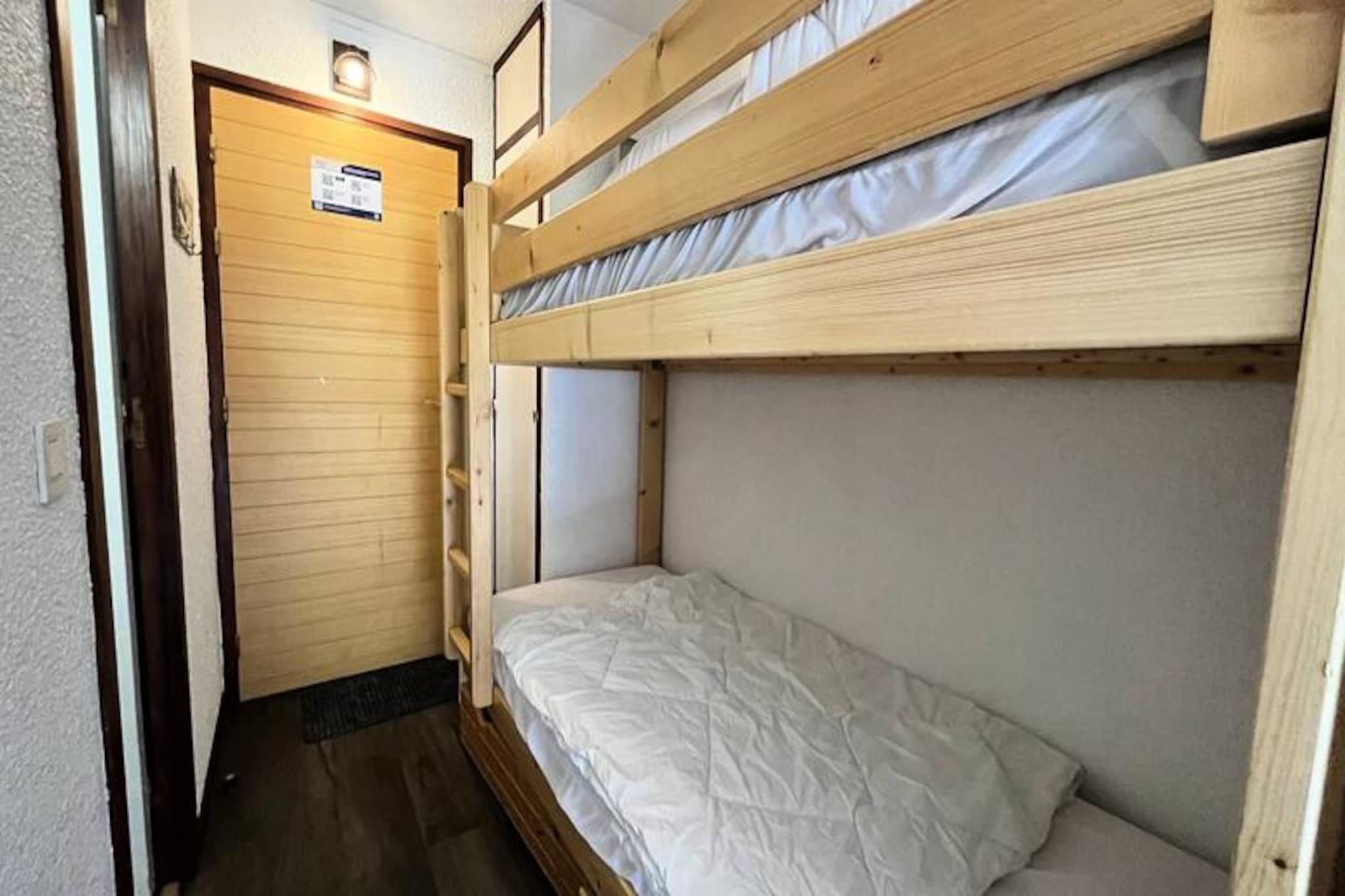 High above the serene slopes of Méribel Mottaret, this charming apartment in the Lac Blanc residence offers a perfect blend of convenience and alpine charm. Imagine waking up to the crisp mountain air and stepping onto your west-facing balcony, where the sun sets over the majestic peaks of the 3 Vallées ski area. Whether you're here for thrilling ski adventures or tranquil summer hikes, this cozy retreat is designed to make your stay unforgettable. \n\nInside, the apartment is bright and functional, featuring a living room with a sofa bed, trundle bed, and a television for relaxing evenings. The entrance hall includes a set of bunk beds, ideal for families or small groups. The kitchenette is fully equipped with a ceramic hob, oven, dishwasher, and refrigerator, making it easy to prepare meals after a day on the slopes. Additional amenities include a ski locker, elevator, and optional services such as linens, towels, and baby equipment for added convenience. \n\nThe Lac Blanc residence is perfectly situated directly on the slopes, offering ski-in/ski-out access to the renowned 3 Vallées domain. Nearby, you'll find the Hameau du Mottaret neighborhood with its mini-market, sports shops, restaurants, and bars. The free Chalets cable car connects you effortlessly to the heart of Méribel Mottaret, ensuring you’re never far from the action. \n\nWhether you’re seeking exhilarating winter sports or peaceful summer escapes, this apartment provides the ideal base for exploring the beauty of the French Alps. Let the magic of the mountains create memories that will last a lifetime.
