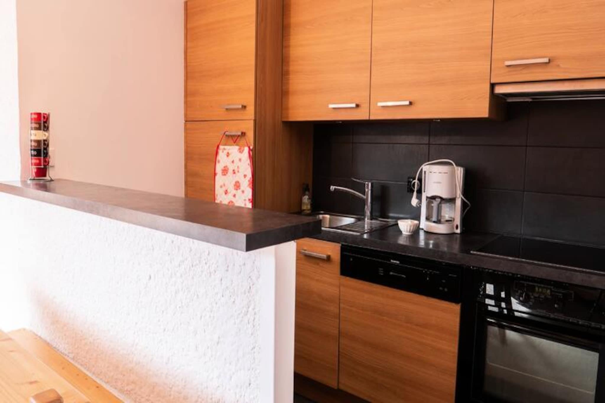 In the enchanting village of Méribel Mottaret, this charming apartment offers the perfect alpine retreat for families and groups seeking both comfort and convenience. Situated on the 4th floor of the centrally located Le Ruitor residence, this property boasts immediate access to the slopes, shops, and the ESF ski school, making it an ideal base for your mountain adventures. Imagine waking up to the crisp mountain air and stepping onto your south-facing balcony to take in the breathtaking views of the surrounding peaks. \n\nInside, the apartment is thoughtfully designed to accommodate up to six guests. The living room features a cozy sofa bed and a pull-out bed, while the bedroom offers a double bed and a set of bunk beds, ensuring a restful night's sleep for everyone. The open-plan kitchen is fully equipped with modern amenities, including a ceramic hob, oven, dishwasher, refrigerator, kettle, and coffee maker, making it easy to prepare hearty meals after a day on the slopes. Additional conveniences such as a separate bathroom and toilet, a ski locker, and an elevator in the building enhance your stay. Please note that the apartment is non-smoking and pets are not allowed.\n\nMéribel Mottaret's resort center is just steps away, offering a vibrant hub of activity with its array of shops, bars, restaurants, and the Tourist Office. Whether you're here to ski, explore the picturesque trails, or simply relax, the location ensures you'll have everything you need within easy reach. In the evenings, unwind with a warm drink and soak in the lively yet tranquil atmosphere of this alpine paradise.\n\nChoose this delightful apartment for your next holiday and create unforgettable memories in the heart of the French Alps. With its unbeatable location and cozy ambiance, it promises a stay filled with adventure, relaxation, and the magic of the mountains.