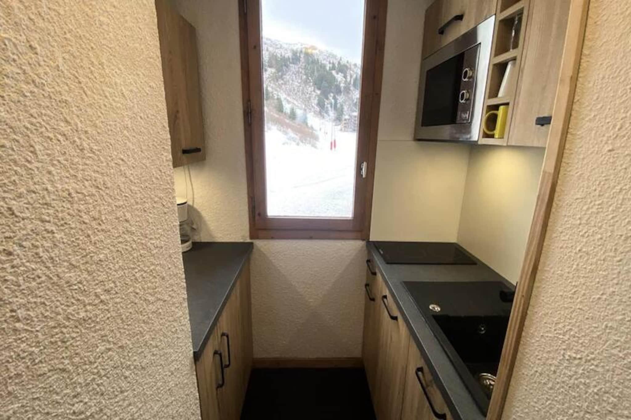 High above the picturesque slopes of Méribel Mottaret, this charming alpine apartment invites you to experience the perfect blend of comfort and convenience. Situated in the Arpasson residence in the Laitelet district, this ski-in/ski-out retreat offers unparalleled access to the pristine pistes of the Three Valleys, making it a dream destination for winter sports enthusiasts. From your private balcony, take in breathtaking views of the surrounding peaks and feel the crisp mountain air as you plan your next adventure. \n\nInside, the apartment is thoughtfully designed to accommodate up to five guests. The living room features two cozy sofa beds, a trundle bed, and a television, creating a welcoming space to relax after a day on the slopes. The separate bedroom offers a comfortable double bed, while the fully renovated kitchen (2024) is equipped with modern appliances, including electric hobs, a dishwasher, an oven, and a coffee maker, ensuring all the comforts of home. The updated bathroom and separate toilet add to the convenience, while the ski locker and elevator enhance the practicality of your stay.\n\nThe Laitelet district is a skier’s paradise, with direct access to the slopes and proximity to the Hameau shopping center for all your essentials. The free Méribus shuttle or Chalets cable car easily connects you to the vibrant center of Méribel Mottaret, where you can explore charming shops, après-ski spots, and local dining options. \n\nWhether you’re here to carve through fresh powder, explore scenic trails, or simply unwind in the serene alpine atmosphere, this apartment offers the ideal base for an unforgettable mountain getaway.
