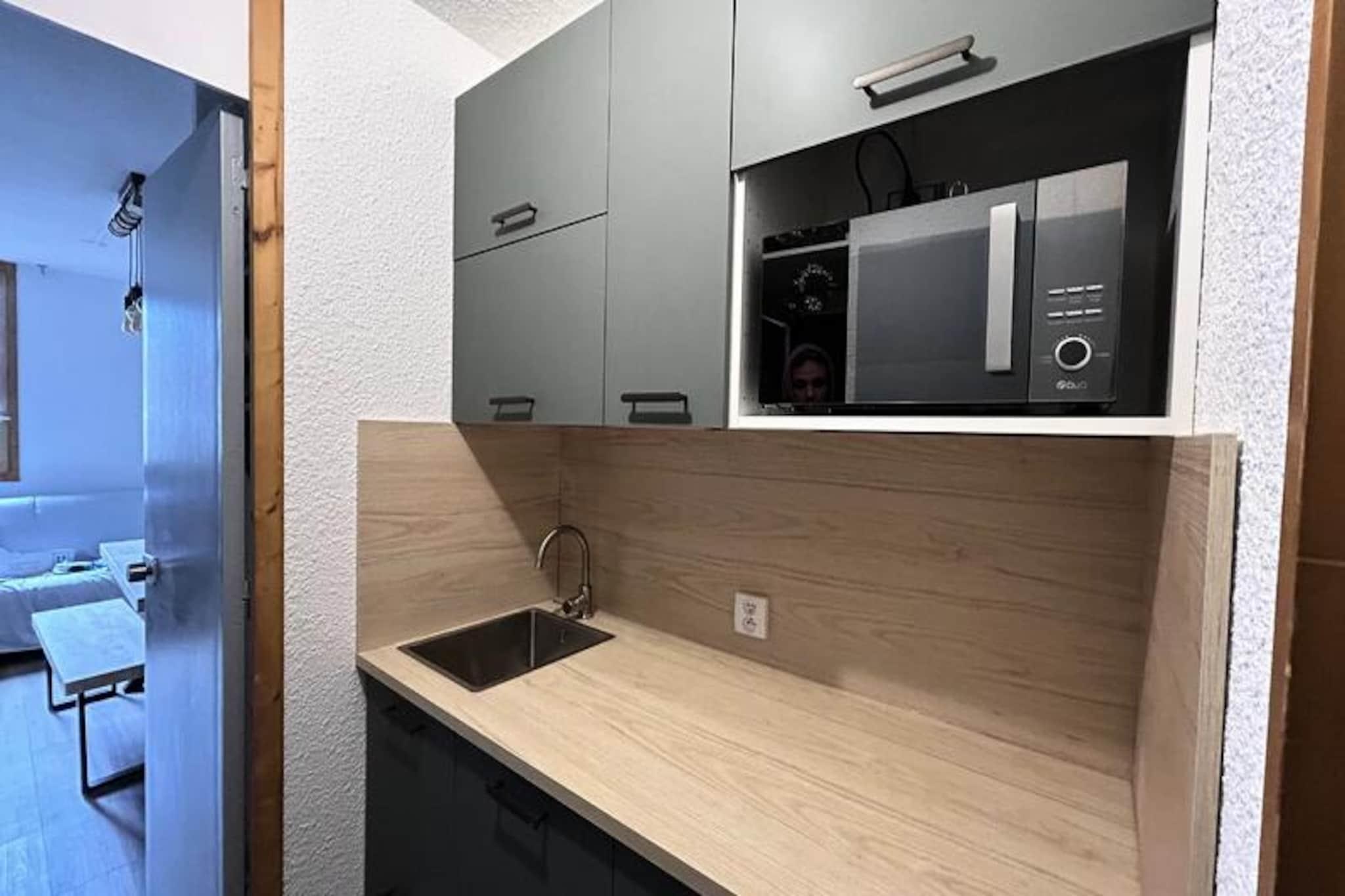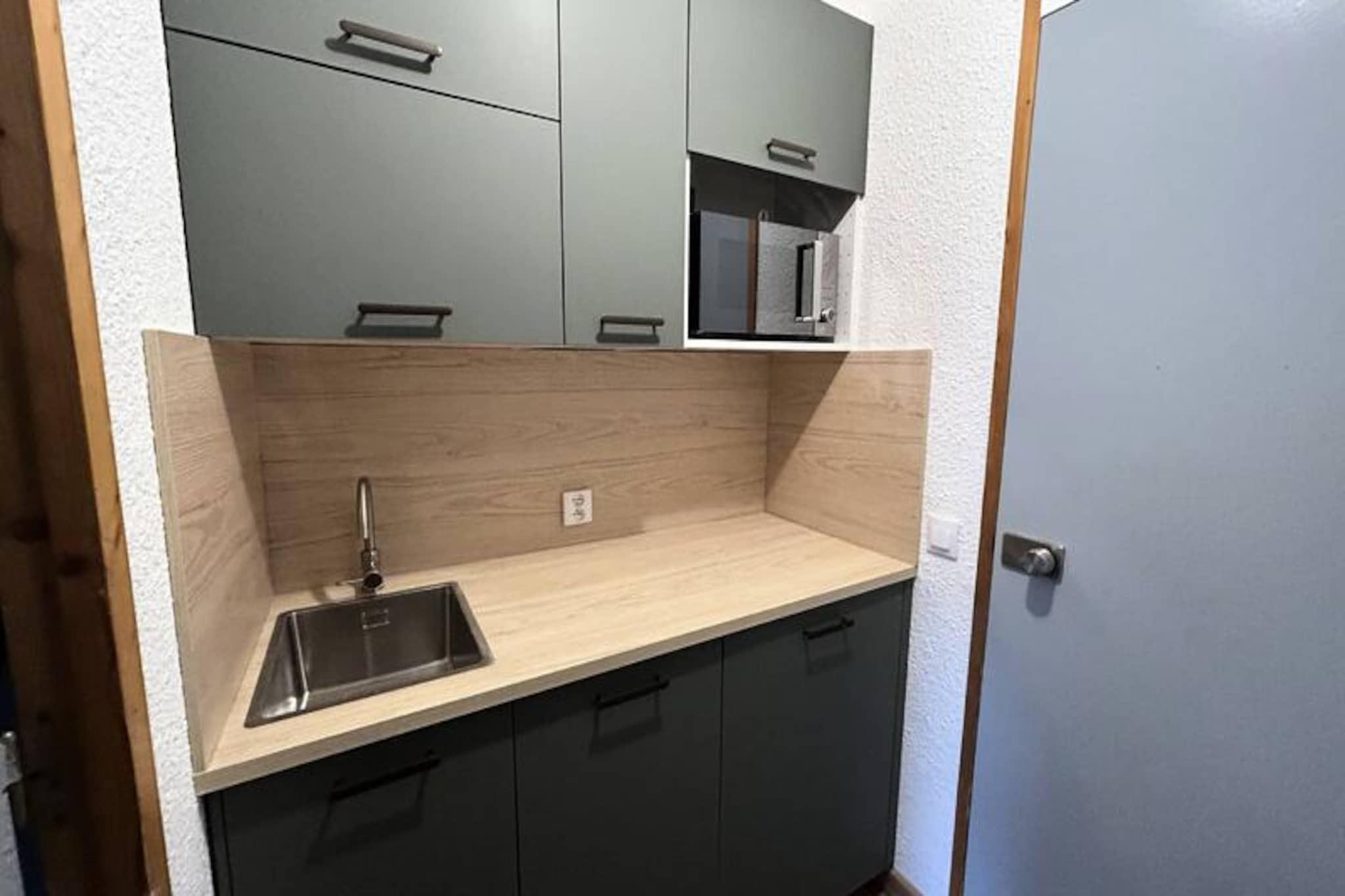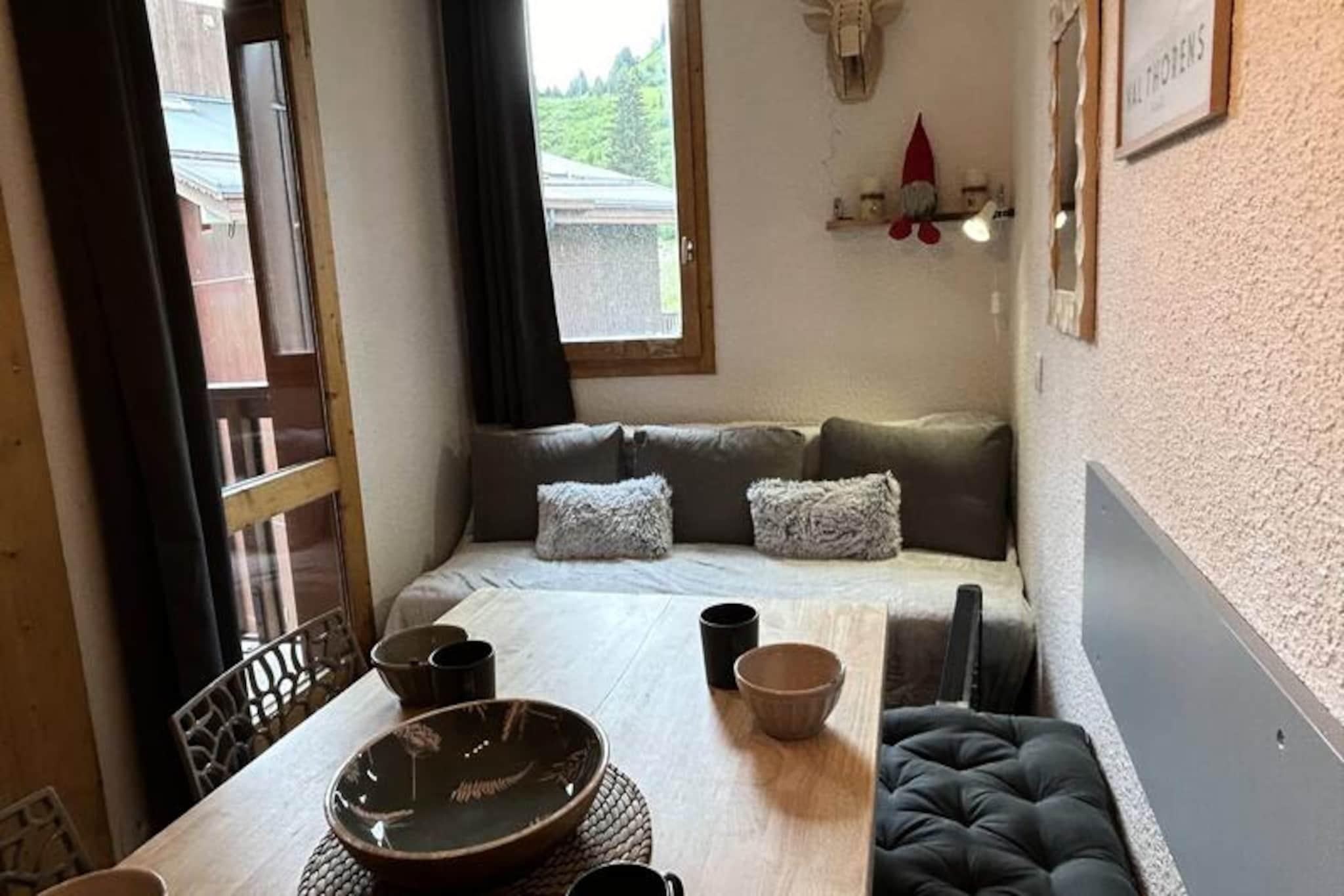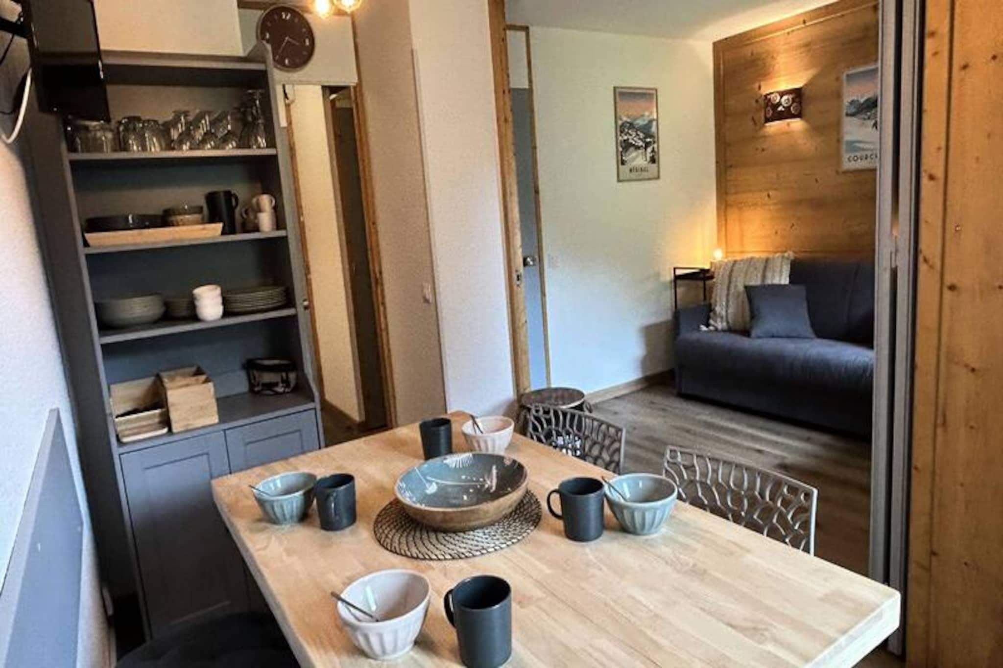 High above the picturesque slopes of Méribel Mottaret, this charming apartment invites you to experience the magic of the French Alps in every season. With its prime location in the Laitelet district, the residence offers direct access to the ski slopes and is just steps away from the Hameau shopping center, ensuring convenience and adventure at your fingertips. Imagine waking up to crisp alpine air, sipping your morning coffee on the balcony, and heading straight out to explore the snowy trails or vibrant summer landscapes. The Arpasson residence combines the thrill of mountain living with the comforts of home. \n\nInside, the apartment is thoughtfully designed to accommodate up to four guests. The entrance hall features cozy bunk beds, while the living room offers a comfortable sofa bed and a television for relaxing evenings. The fully equipped kitchen includes modern amenities such as a dishwasher, electric hob, microwave/grill, refrigerator, and coffee maker, making meal preparation a breeze. A separate bathroom and toilet ensure privacy and convenience. Additional features like a ski locker, elevator access, and optional services such as linens, towels, and baby equipment enhance your stay. This non-smoking apartment is perfect for couples, families, or small groups seeking a tranquil retreat. \n\nThe neighborhood of Hameau du Mottaret is a skier’s paradise, with residences offering easy slope access and a range of shops, restaurants, and bars nearby. The free Chalets cable car and Méribus shuttle connect you effortlessly to the resort center, where you can enjoy après-ski activities or explore local attractions. Whether you’re gliding down pristine pistes in winter or hiking through lush trails in summer, this location offers endless possibilities for adventure. \n\nChoose this alpine haven for your next getaway and create unforgettable memories surrounded by the beauty of Méribel Mottaret’s majestic peaks.